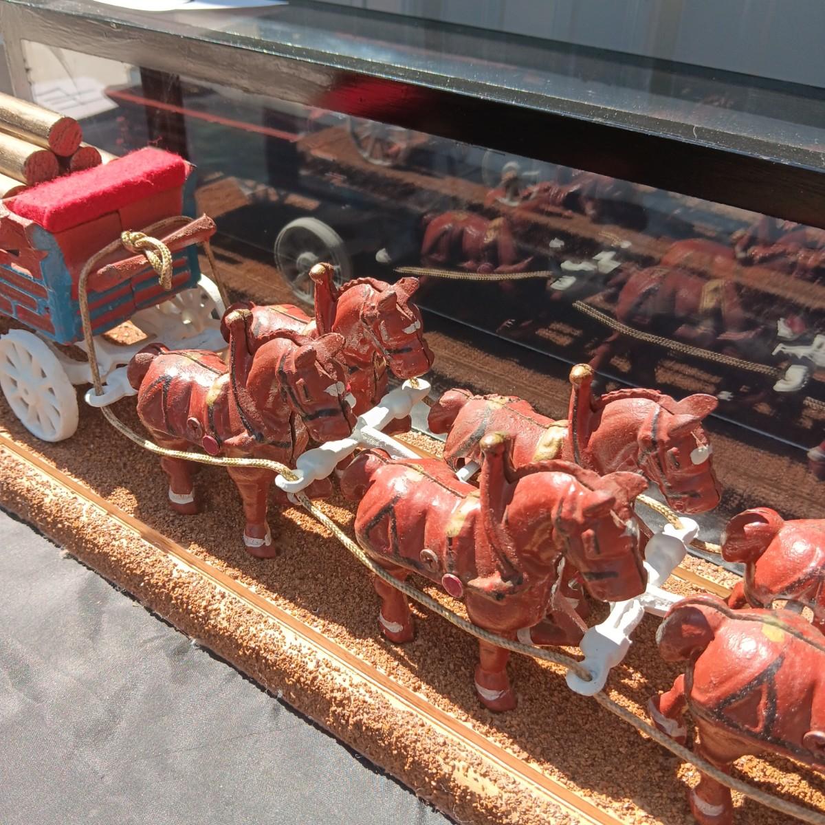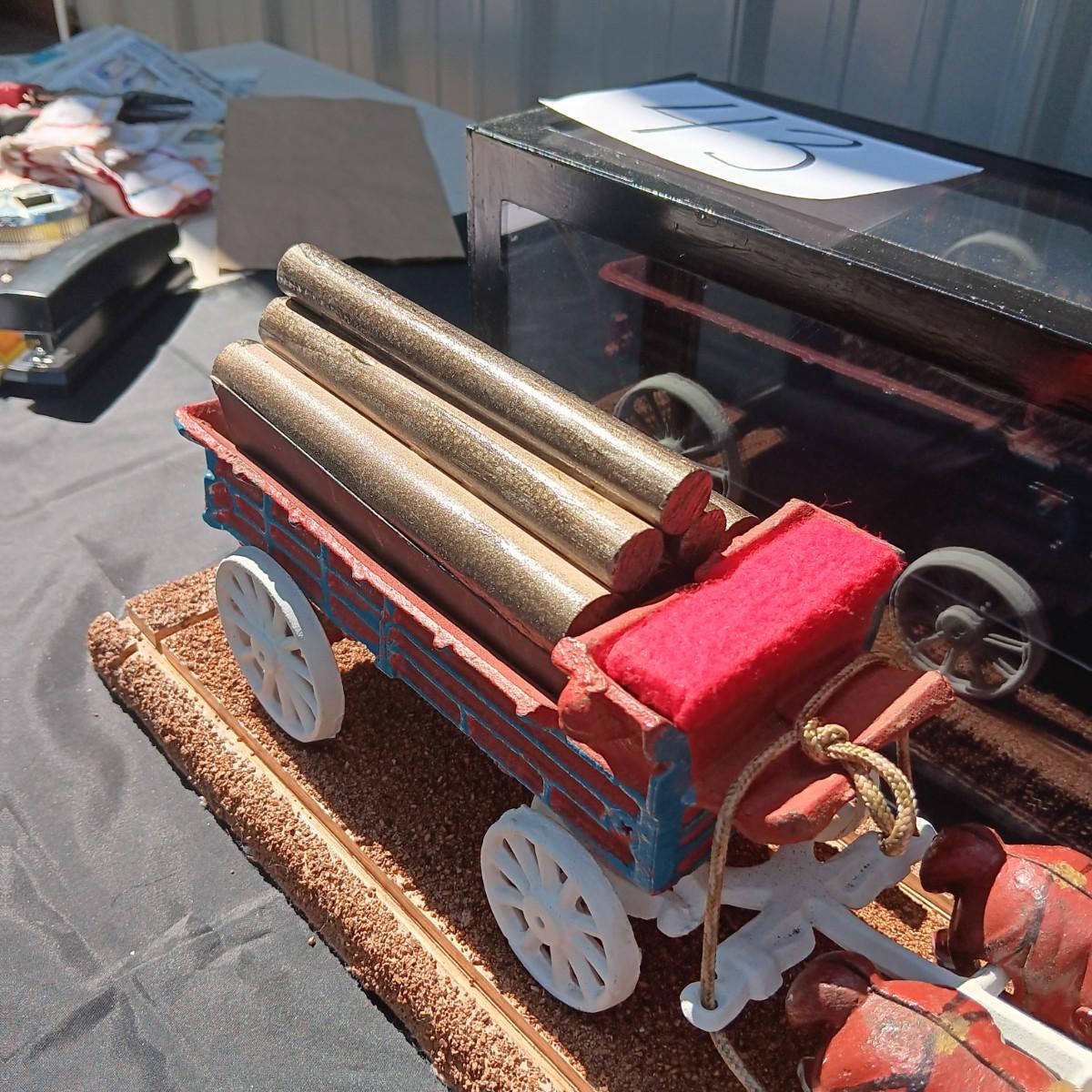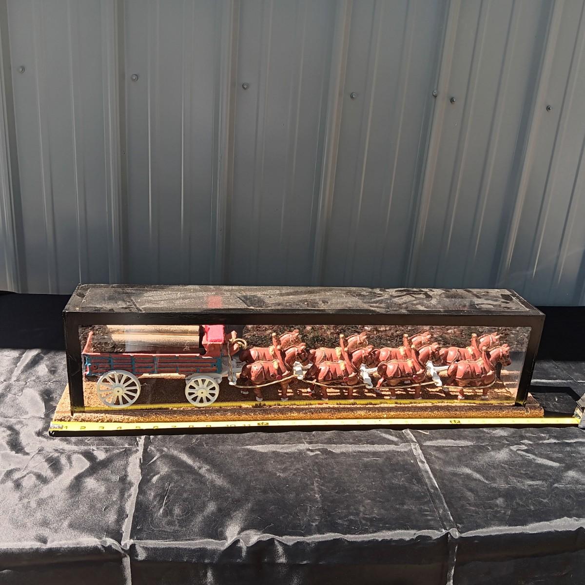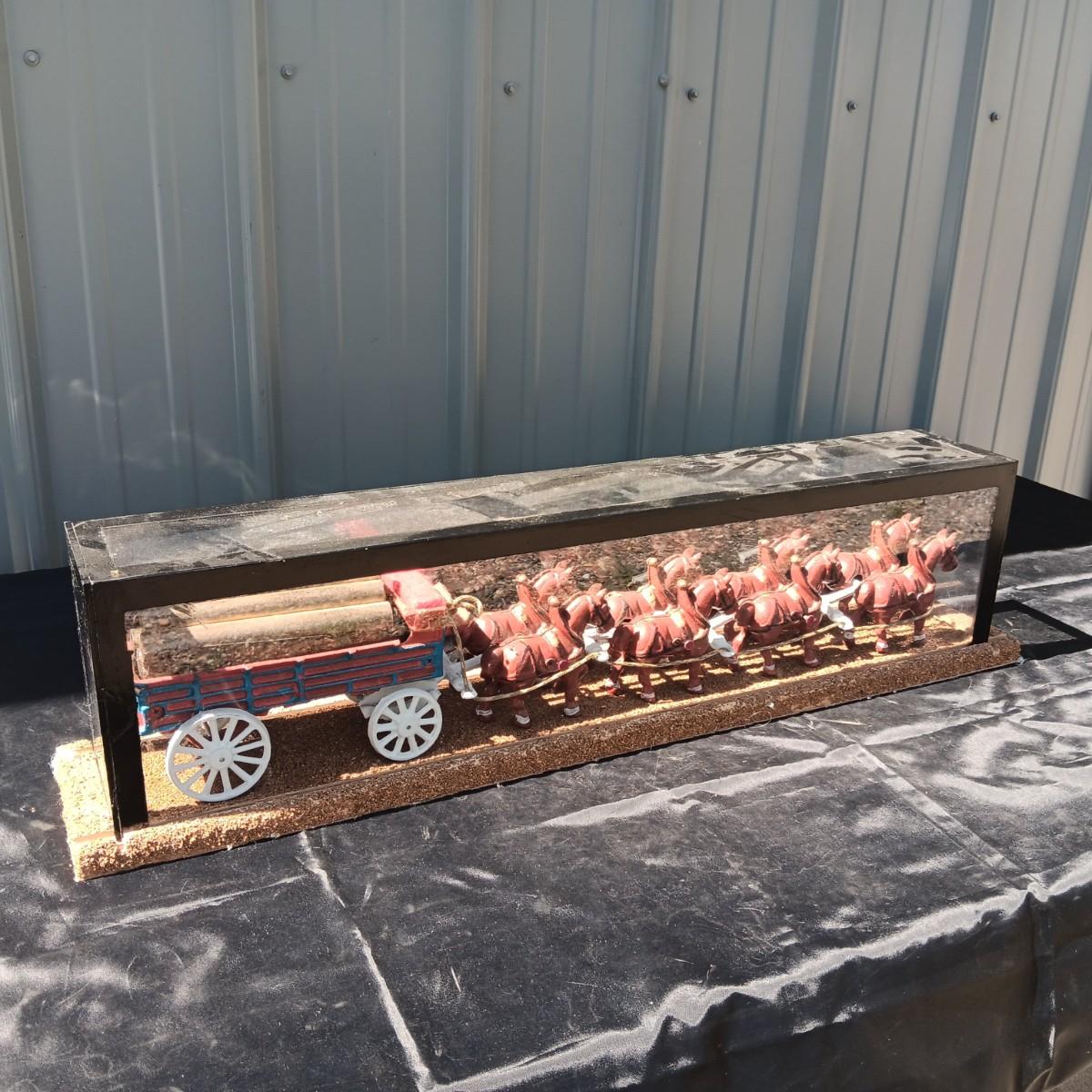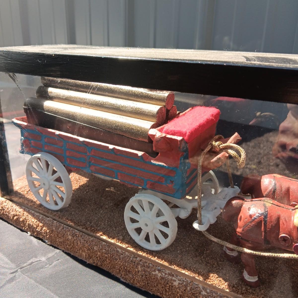 CAST IRON HORSE DRAWN WAGON IN DISPLAY CASE