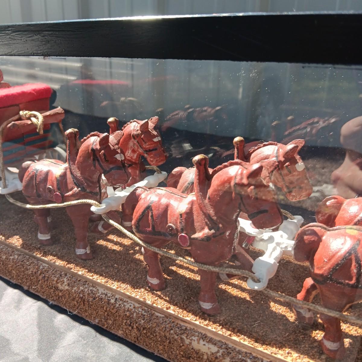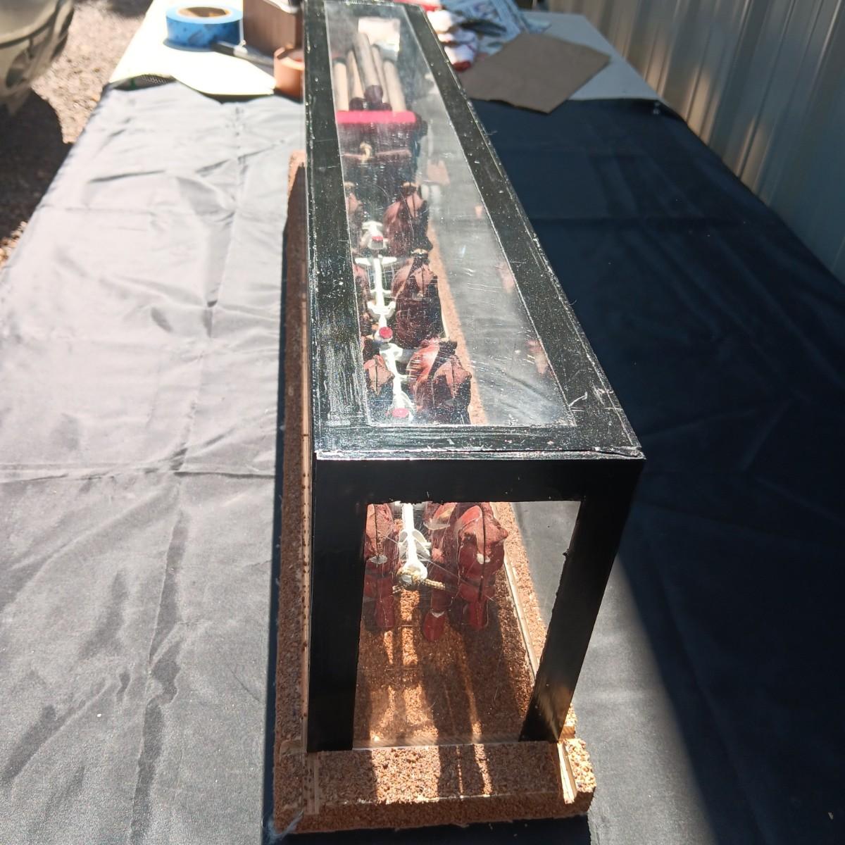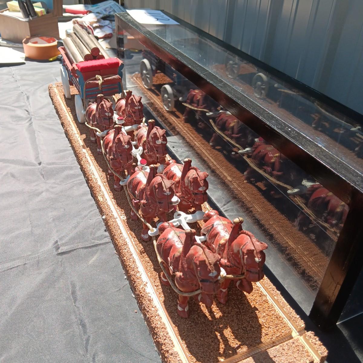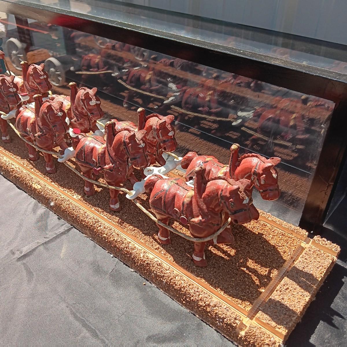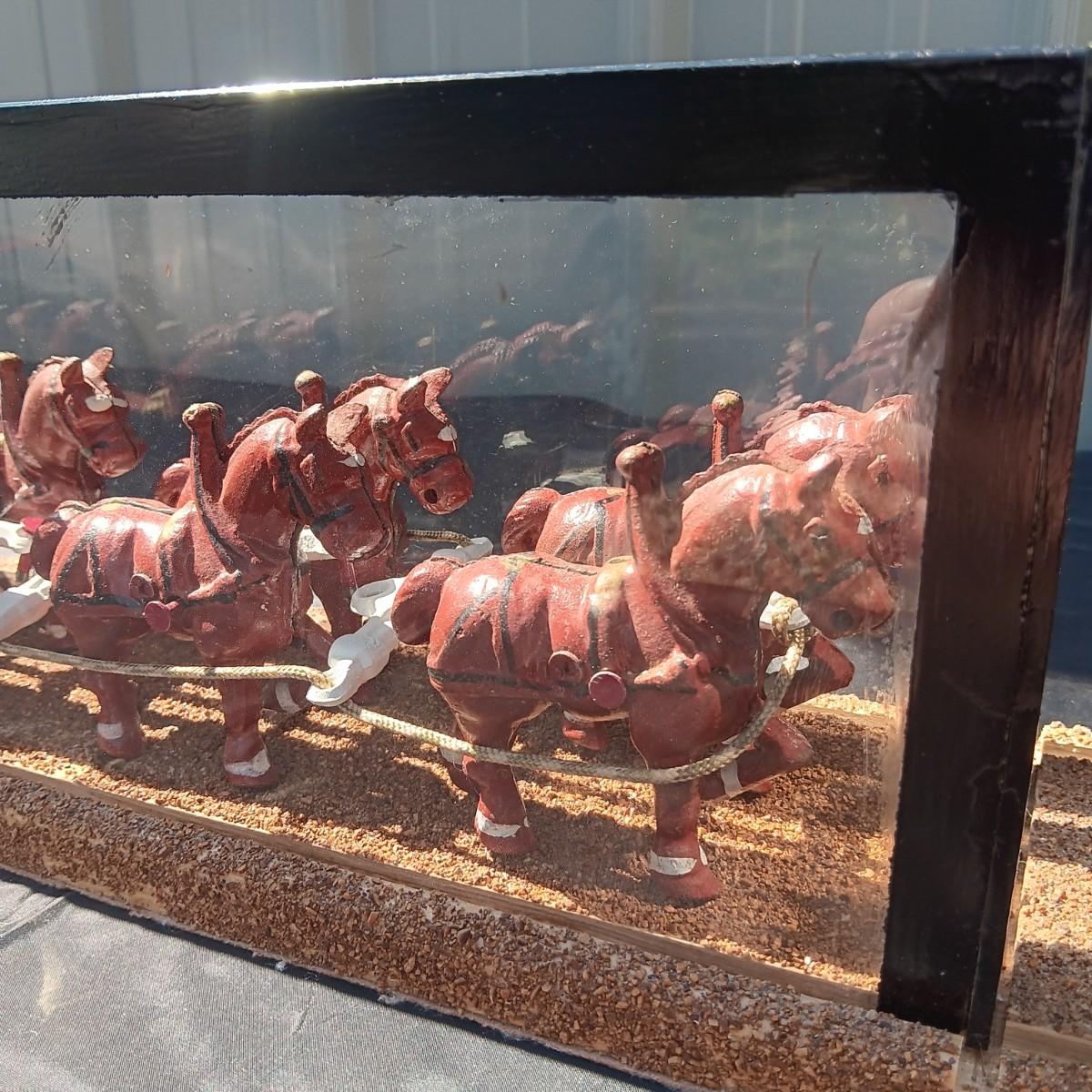 CAST IRON HORSE DRAWN WAGON IN DISPLAY CASE