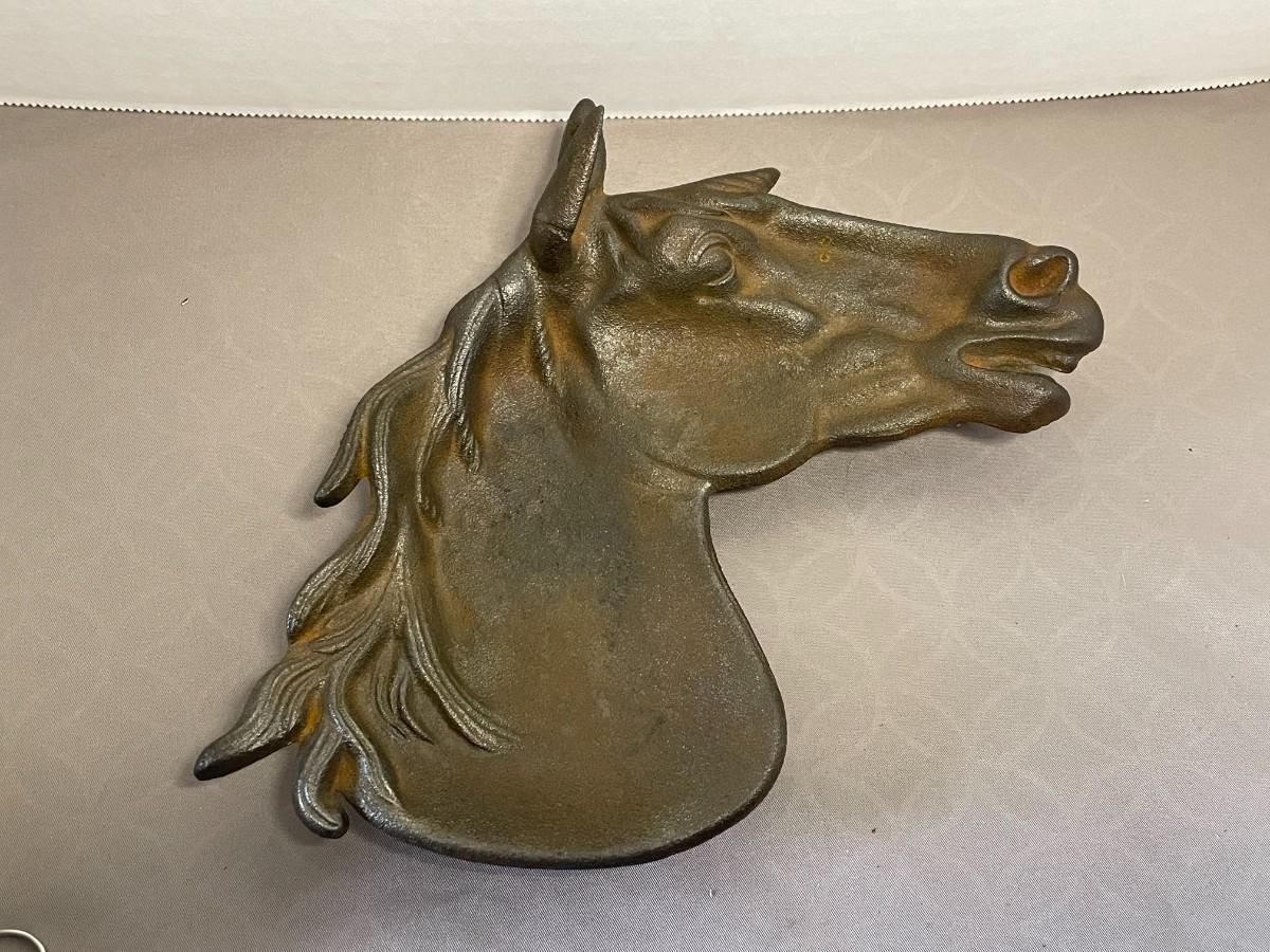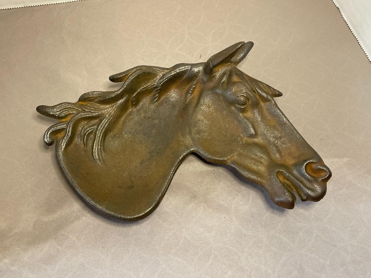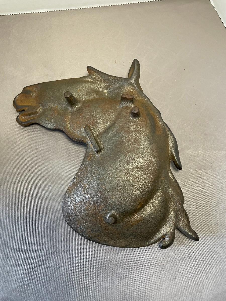 This is a lovely representation of a horse head and is in excellent condition. It would be an excellent gift for any horse lover or The Godfather movie (IYKYK). It is about 9 inches wide and 7 inches long.