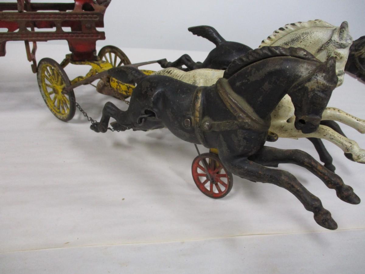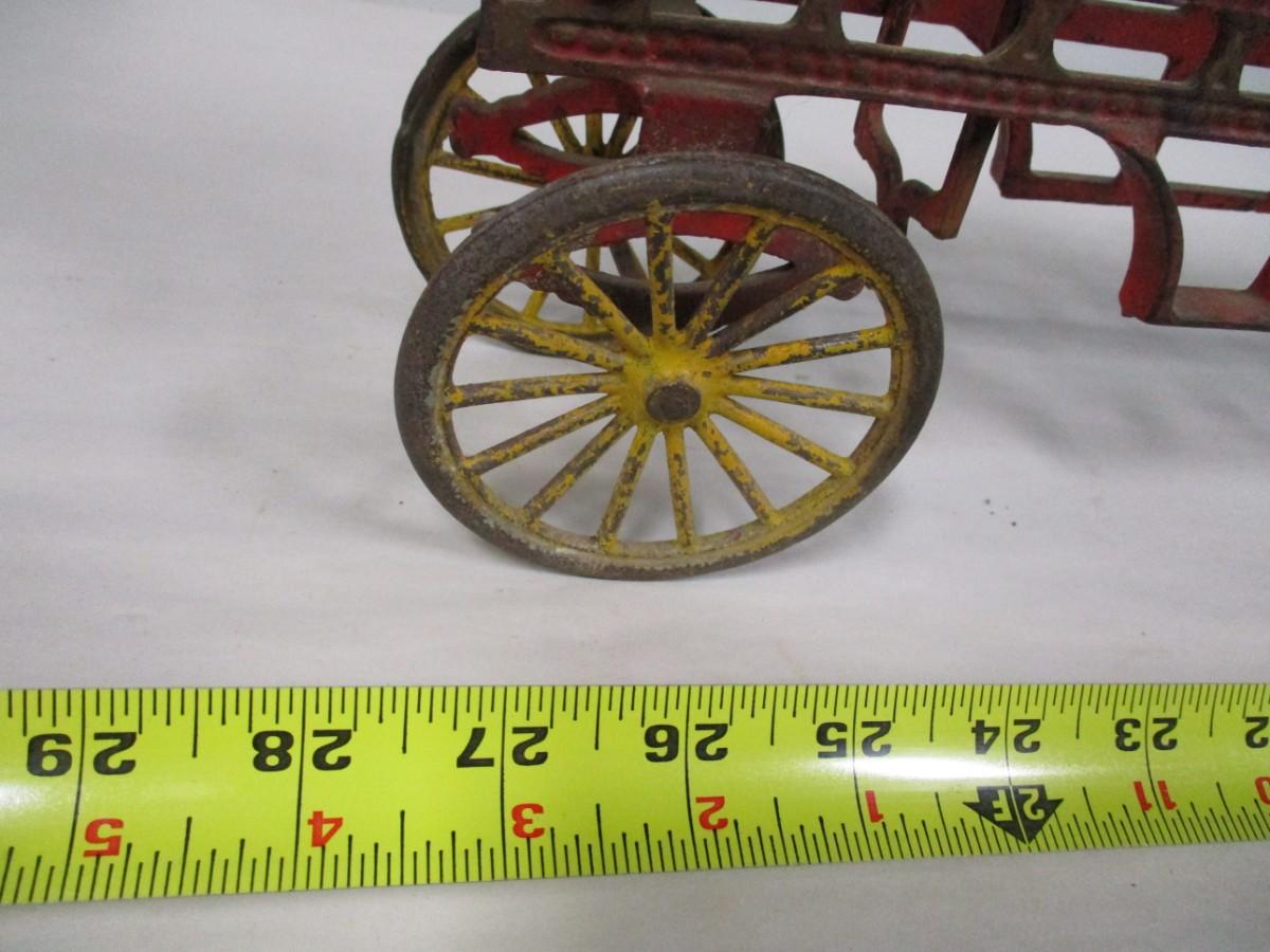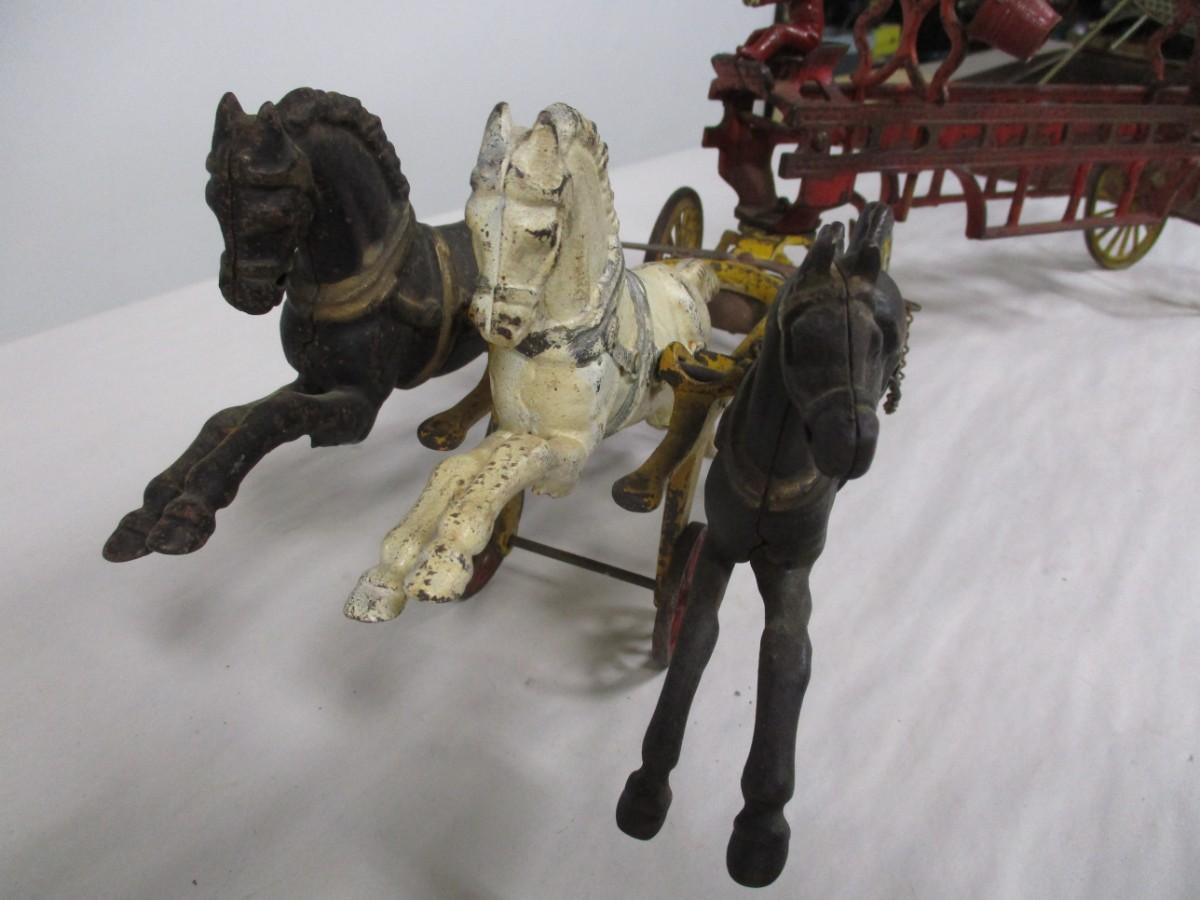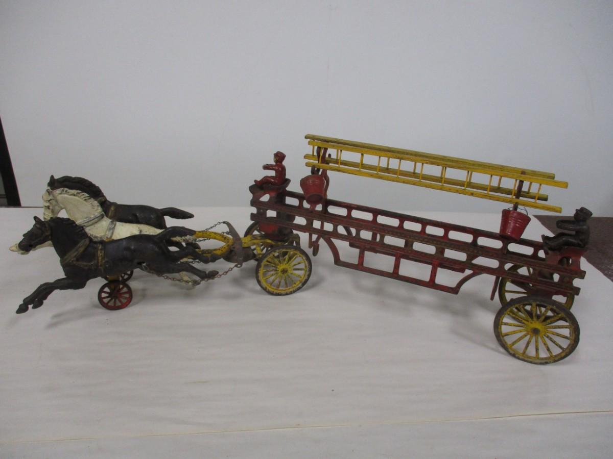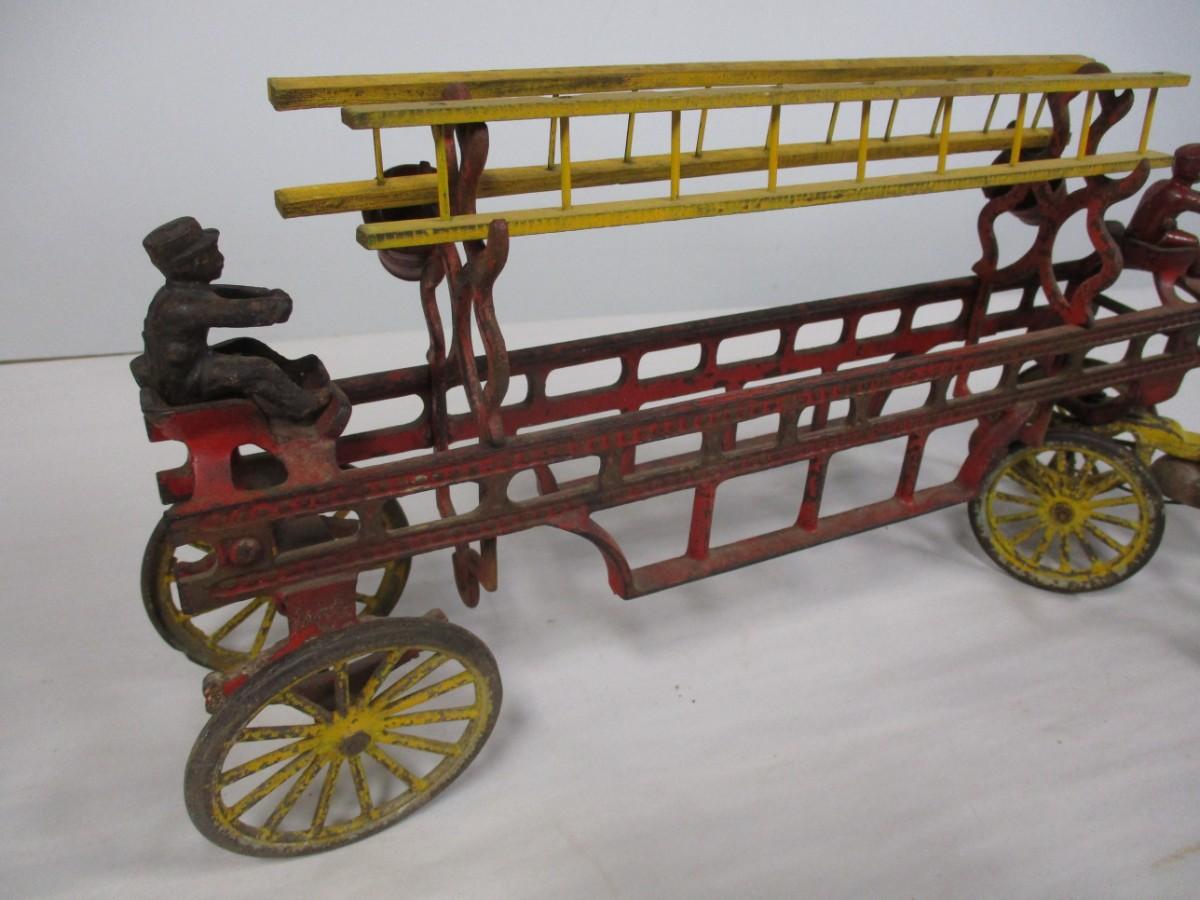 Vintage Cast Iron Ives Triple Horse Team Fire Ladder Wagon 28"