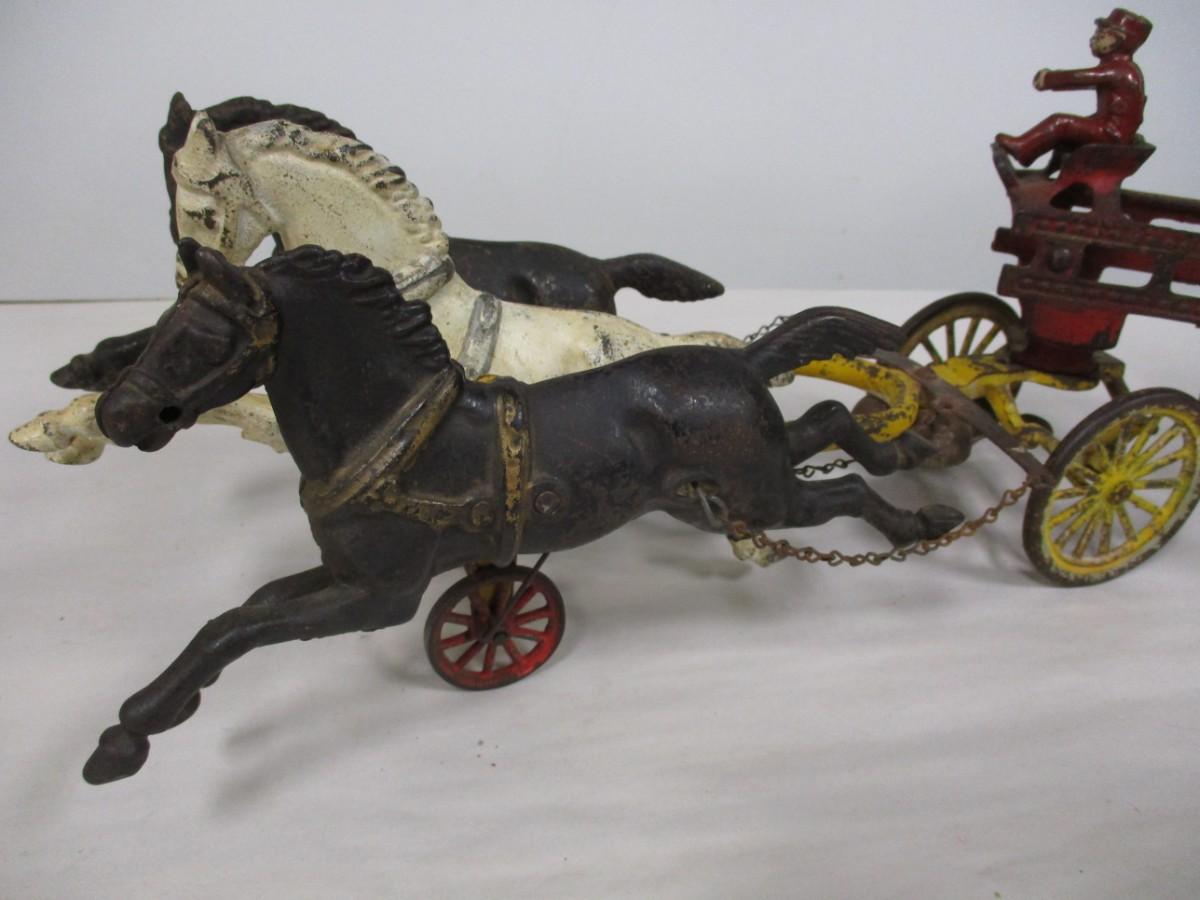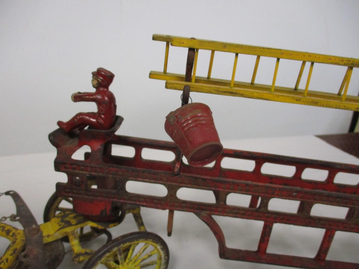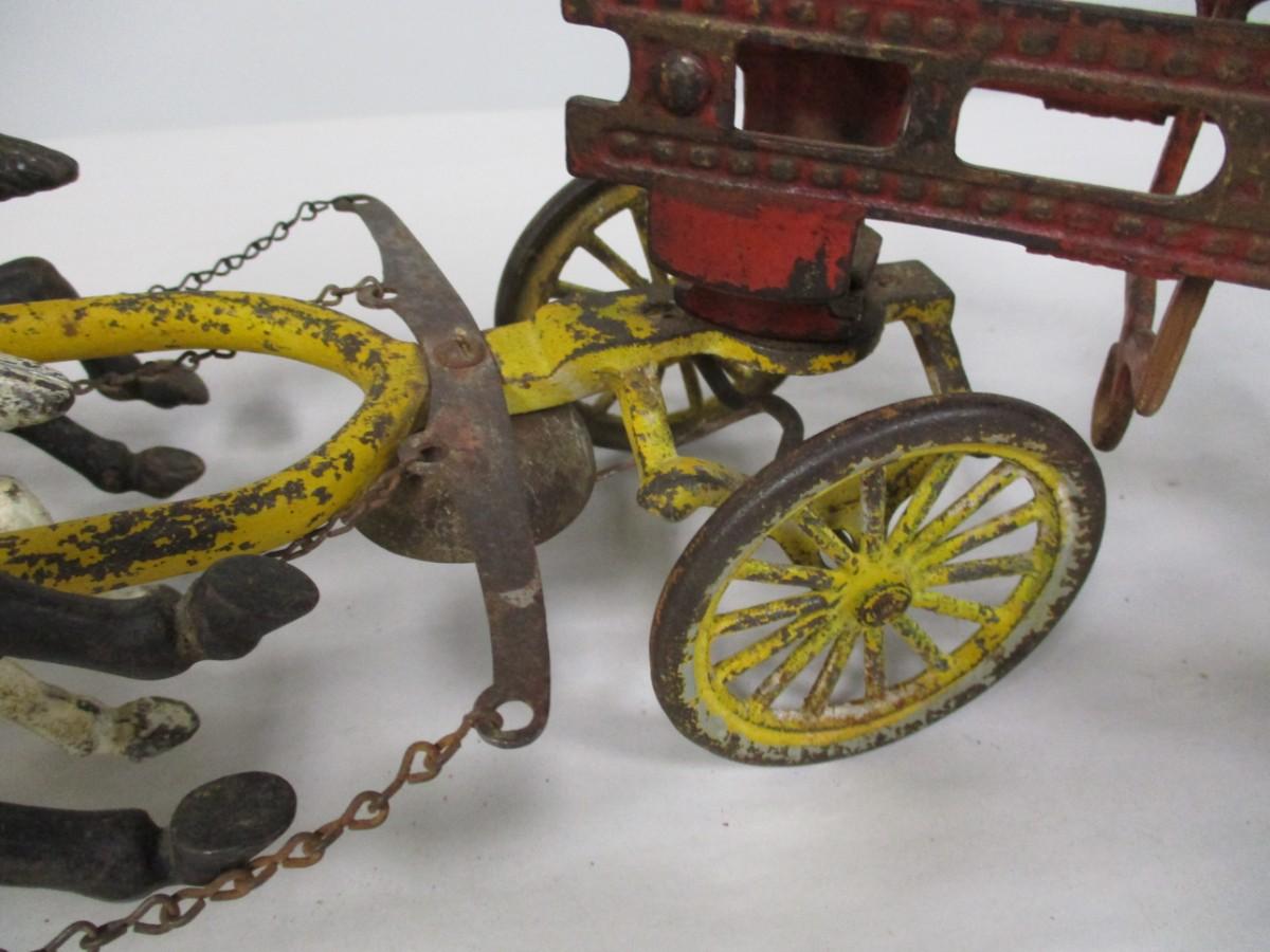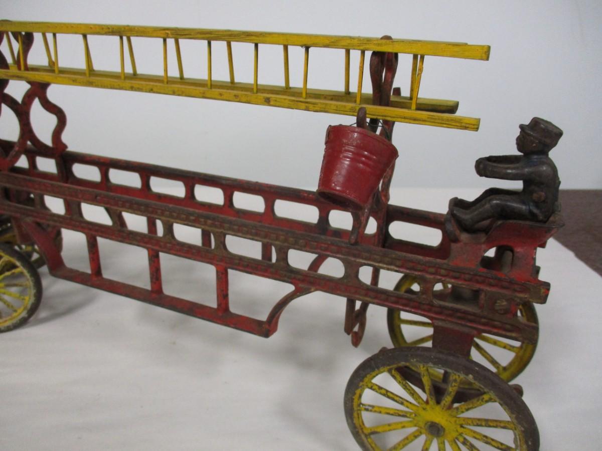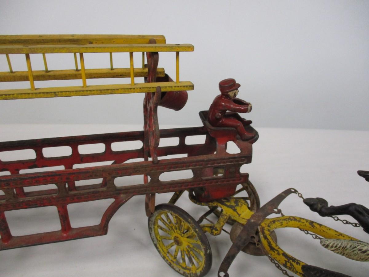 Vintage Cast Iron Ives Triple Horse Team Fire Ladder Wagon 28"