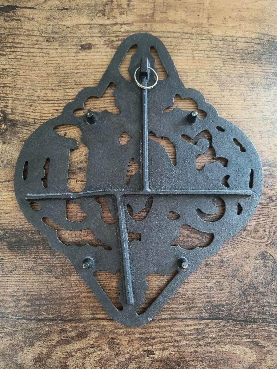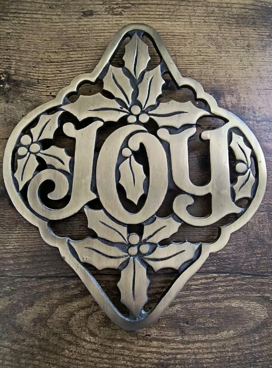 Vintage cast iron Joy wall hanging christmas holly themed trivet/plaque