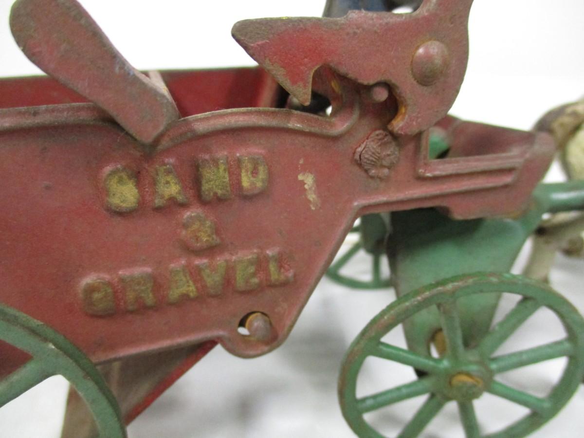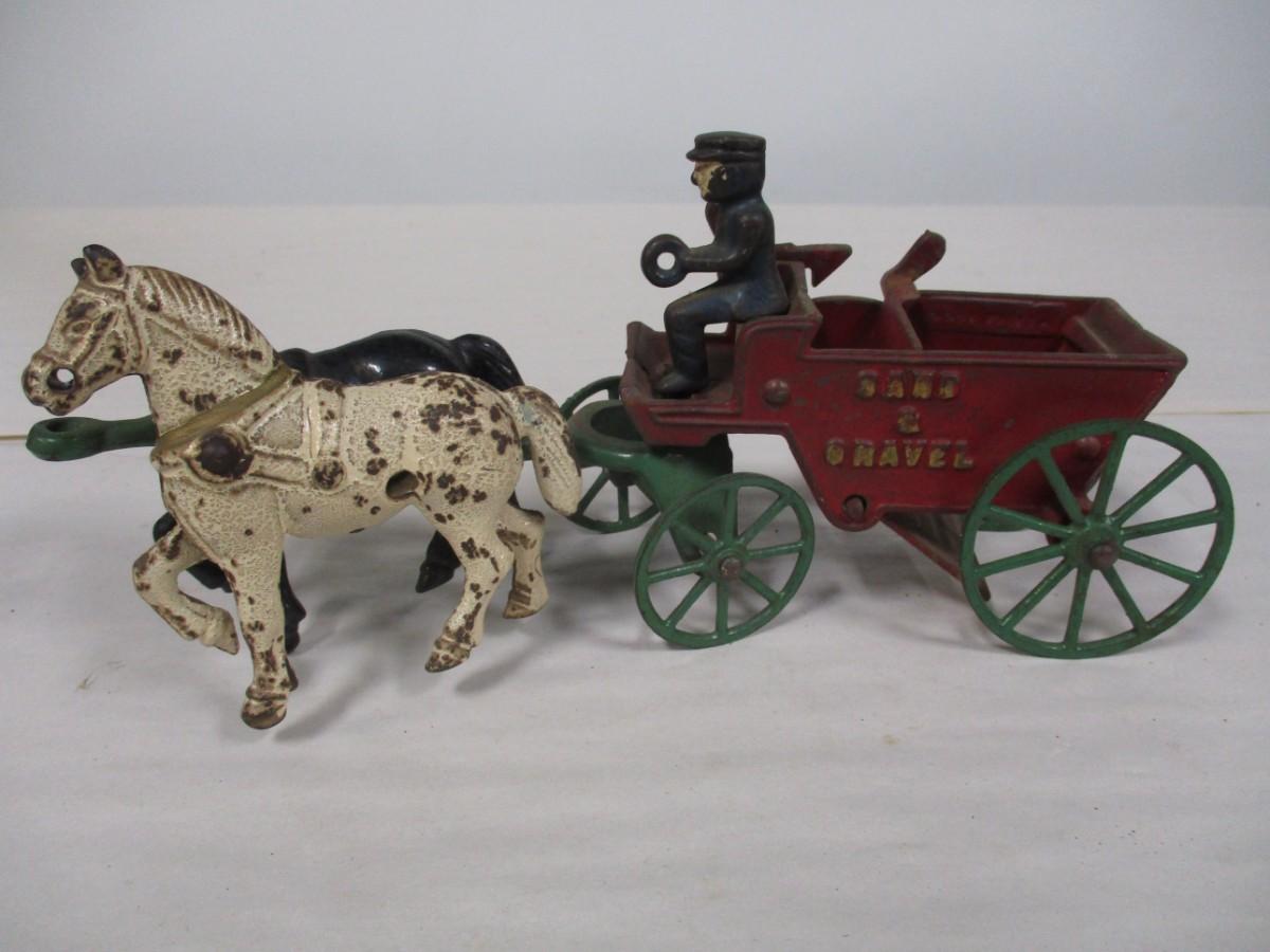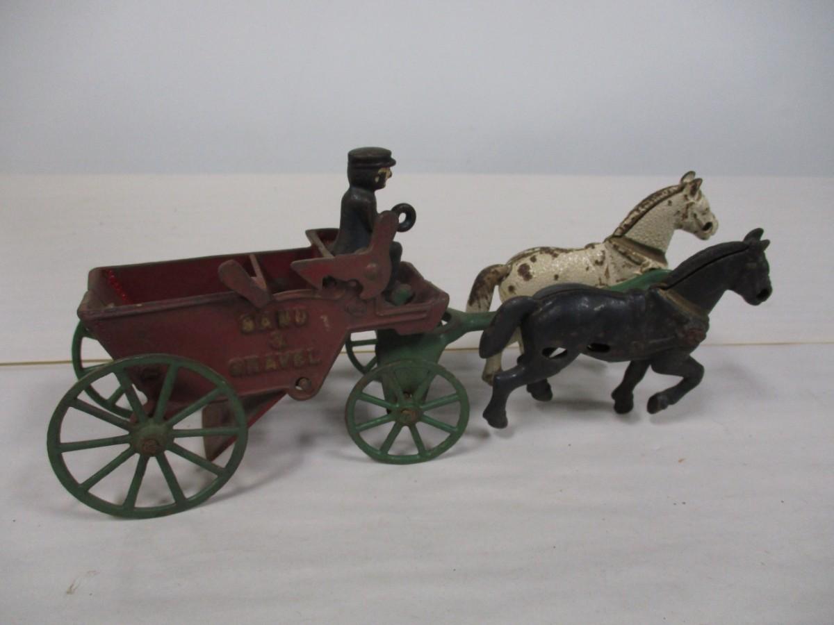 Vintage Cast Iron Kenton Horse Drawn Sand & Gravel Wagon with Driver