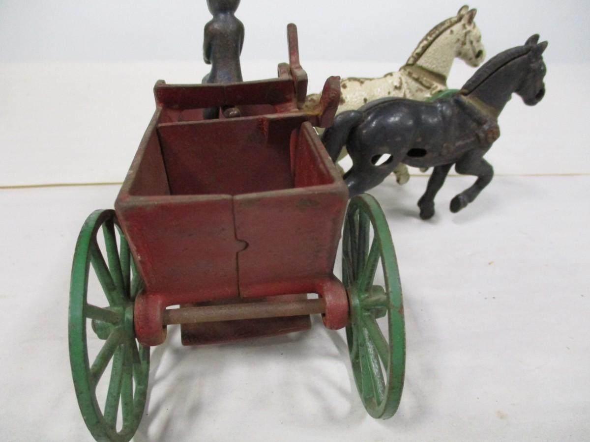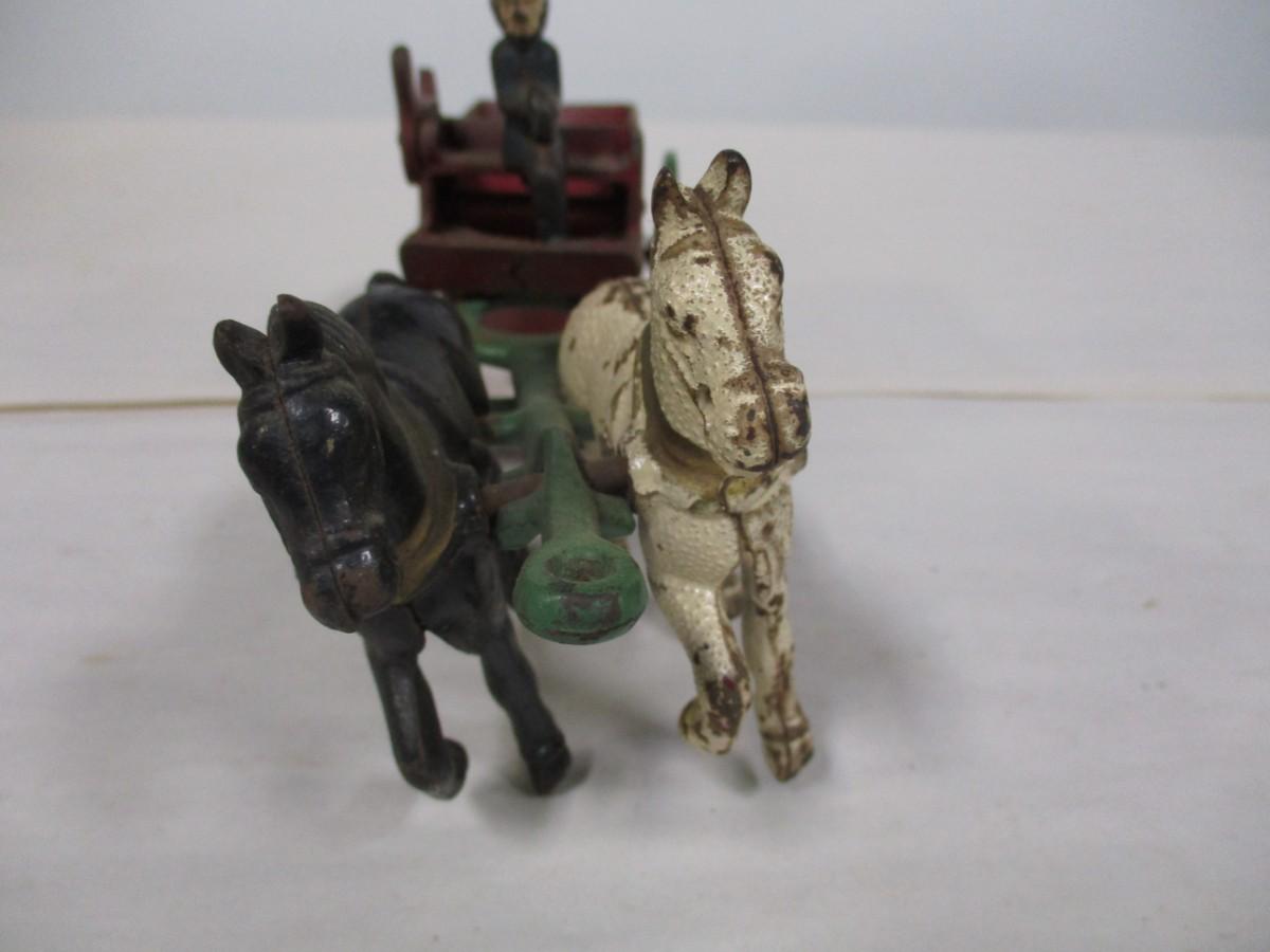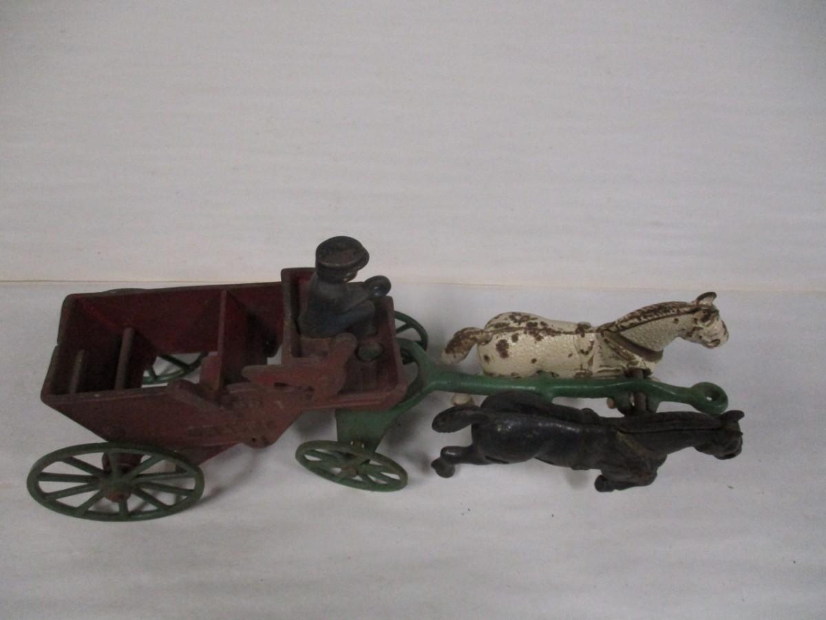 Vintage Cast Iron Kenton Horse Drawn Sand & Gravel Wagon with Driver