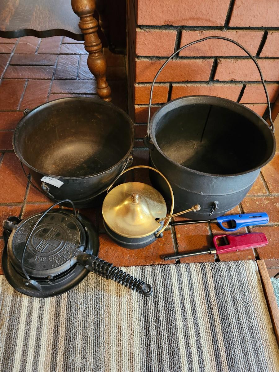 Cast iron kettle lot See pics for all that's included and condition