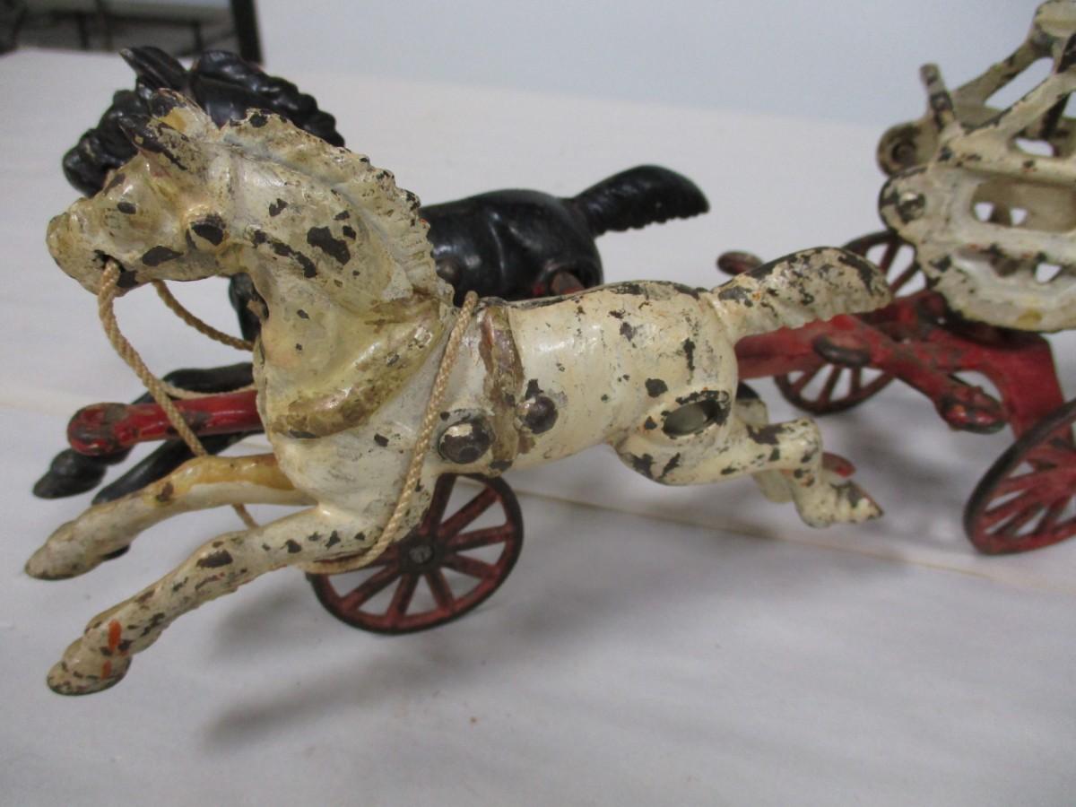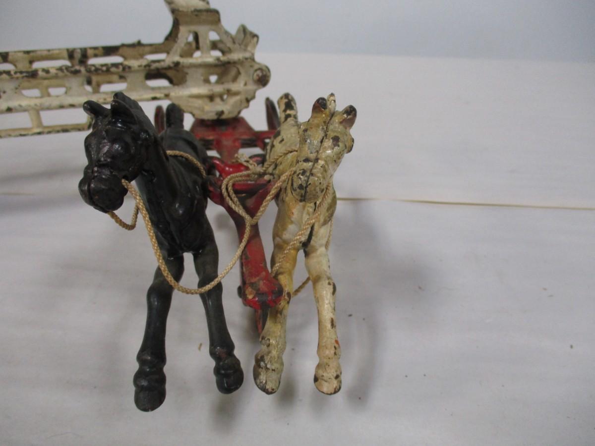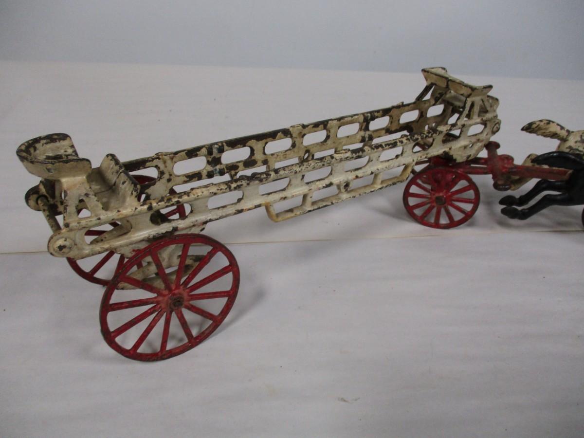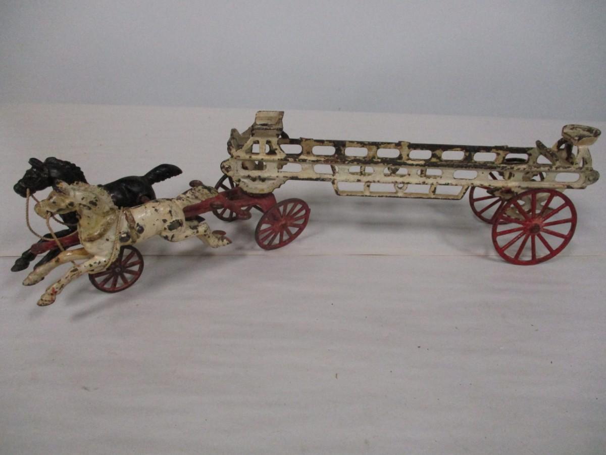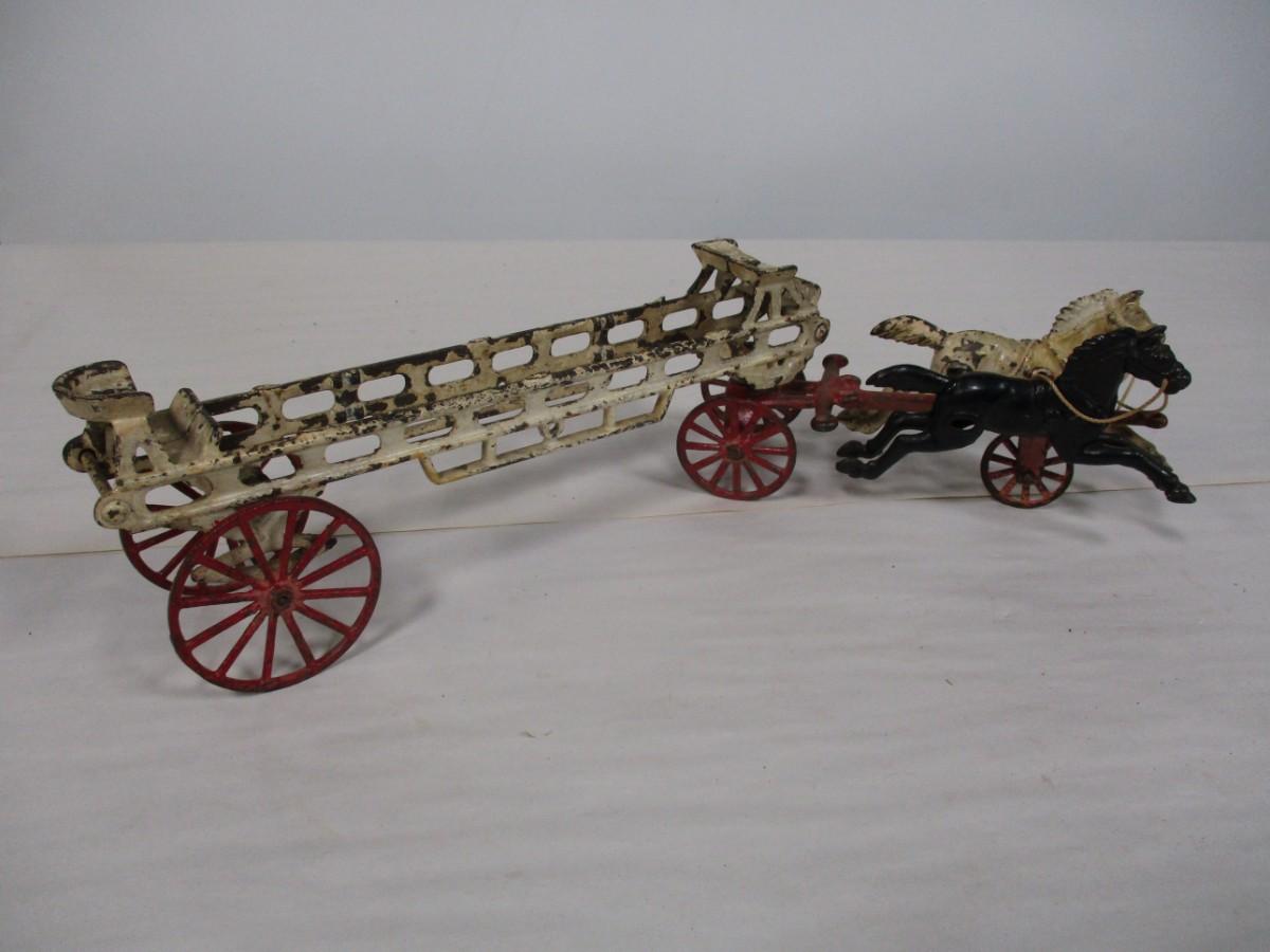 Vintage Cast Iron Hubley Horse Drawn Ladder Wagon
