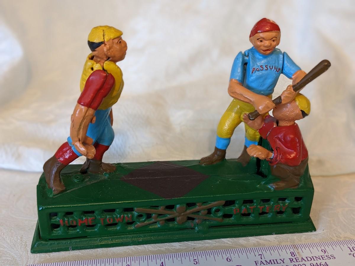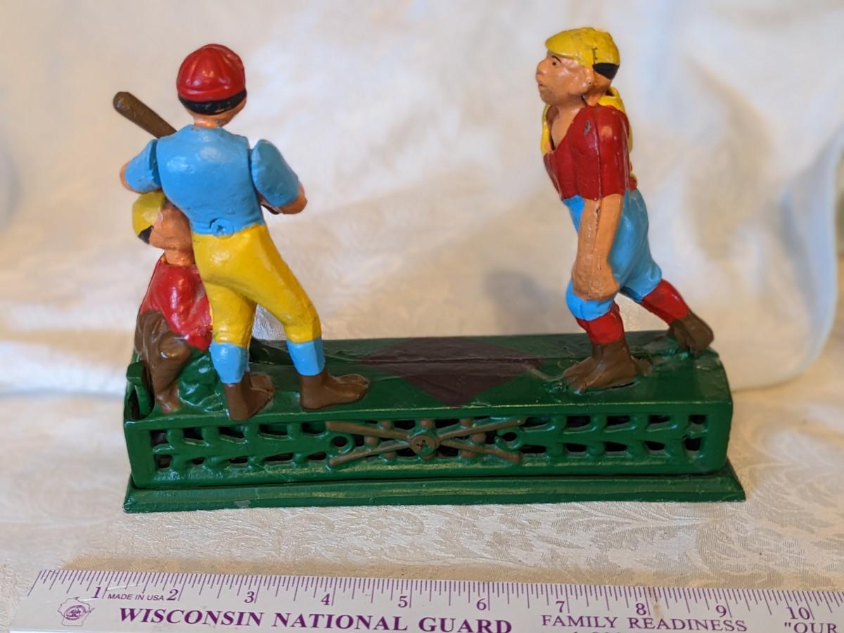 Cast Iron Mechanical Bank Baseball Vintage Antique Americana Toy