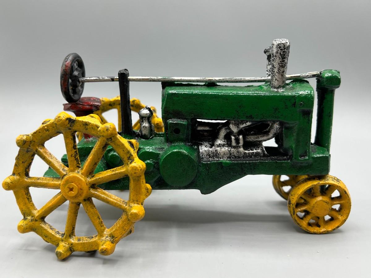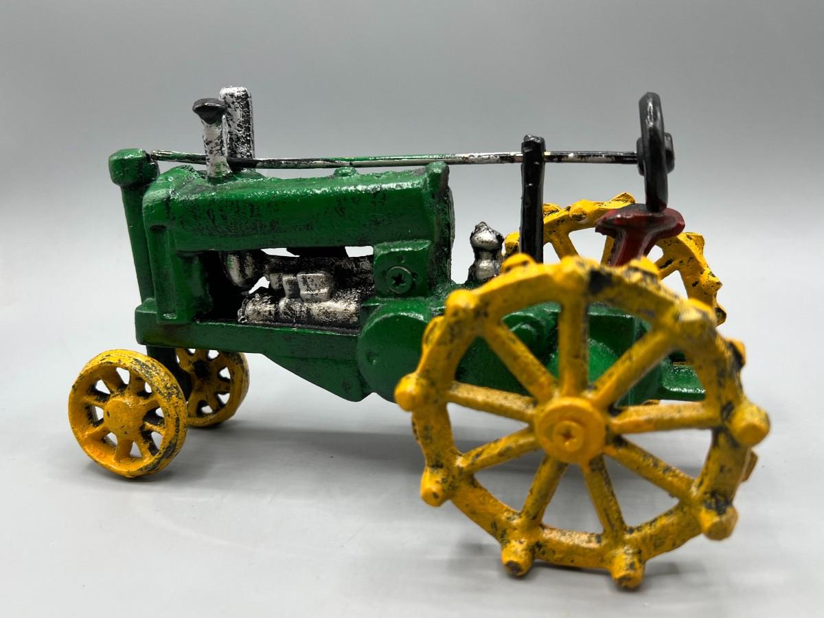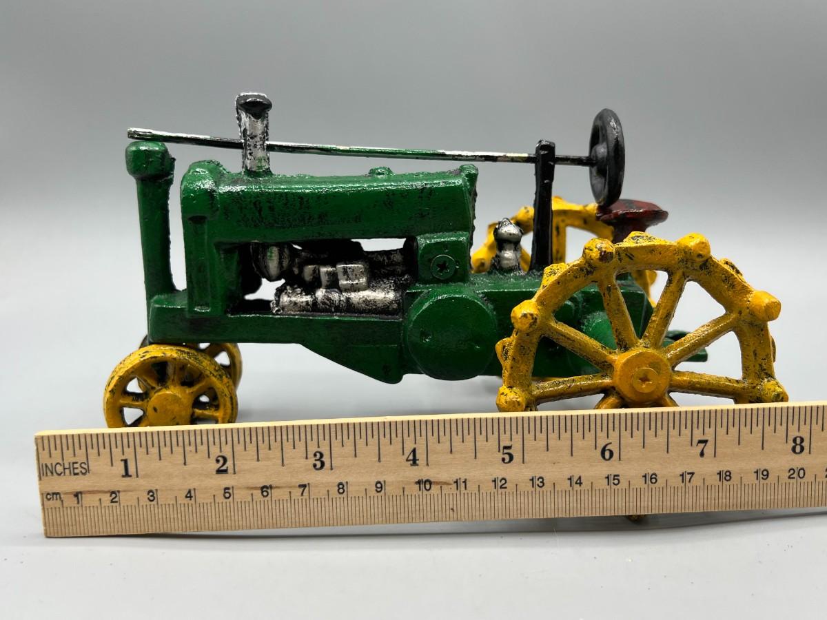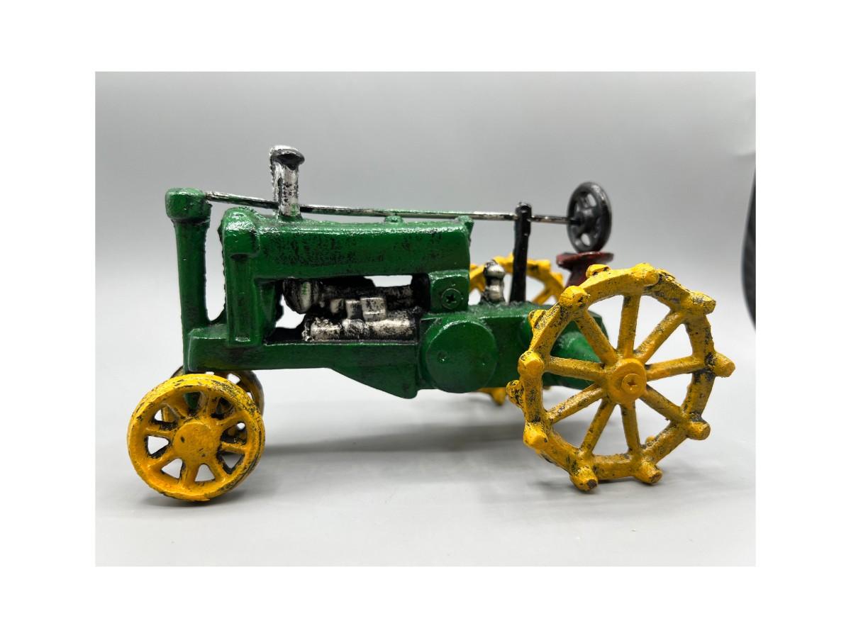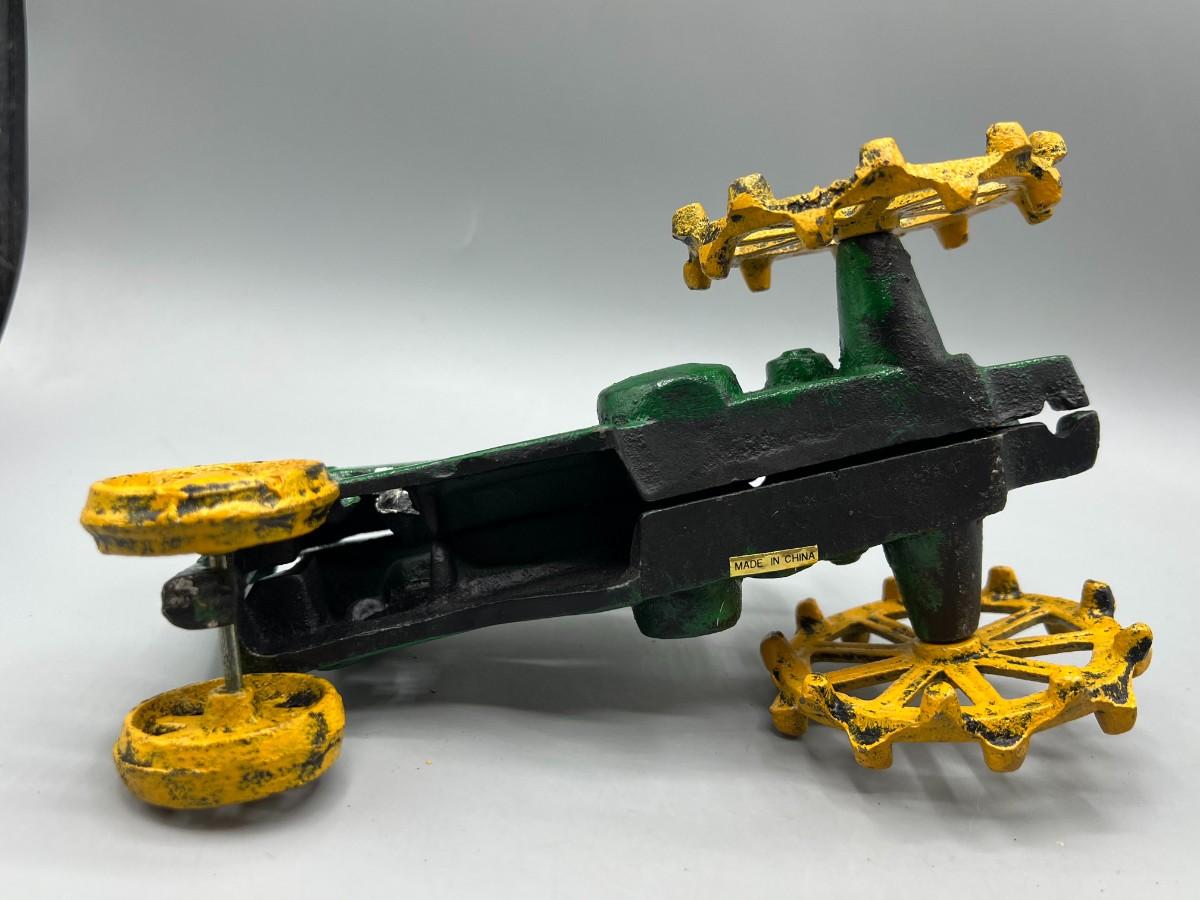 Vintage Style Cast Iron Metal Hand Painted John Deere Farm Tractor Display Toy