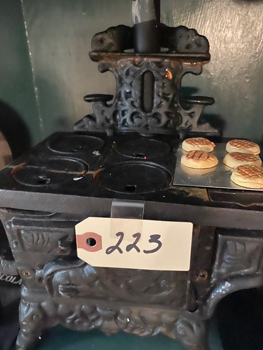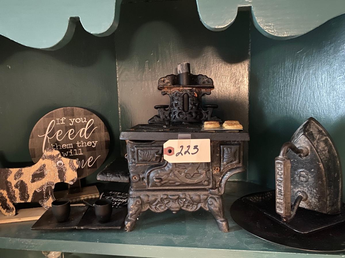 Cast Iron Miniature Stove Crescent, #8 Cast Iron Iron, and Misc Household As Pictured