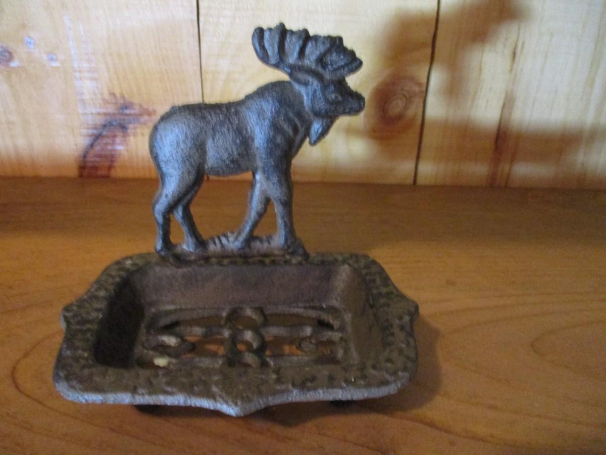 Cast Iron Moose Soap Dish PLEASE NOTE:. Due to no internet connection or wireless service, all invoices must be prepaid via PayPal, Stripe, or Zelle prior to arrival at pick up. Exact change cash onsite is acceptable but absolutely no debit or credit cards at time of pick up.
