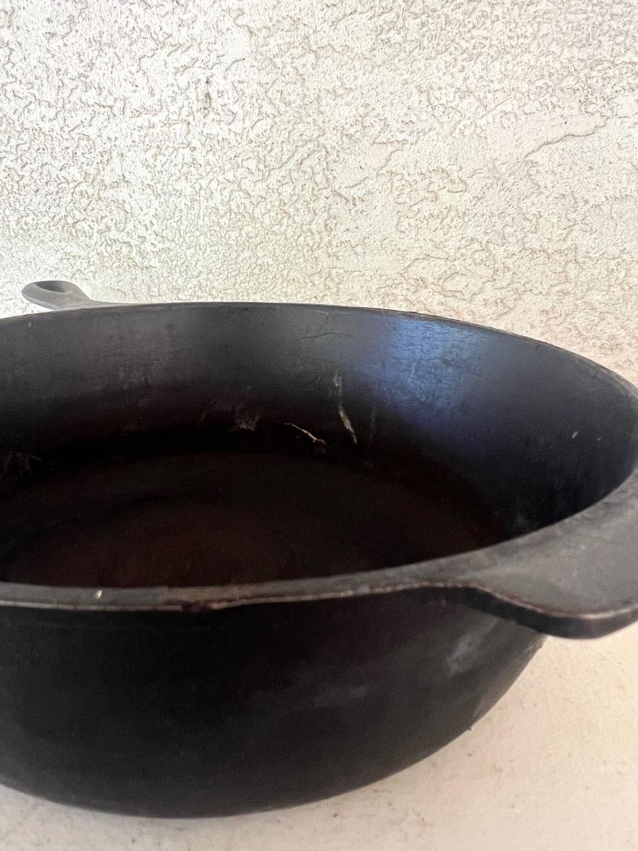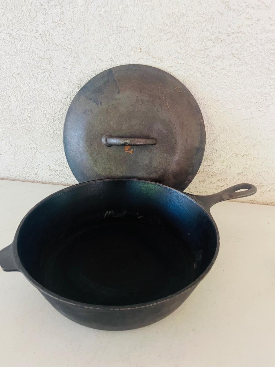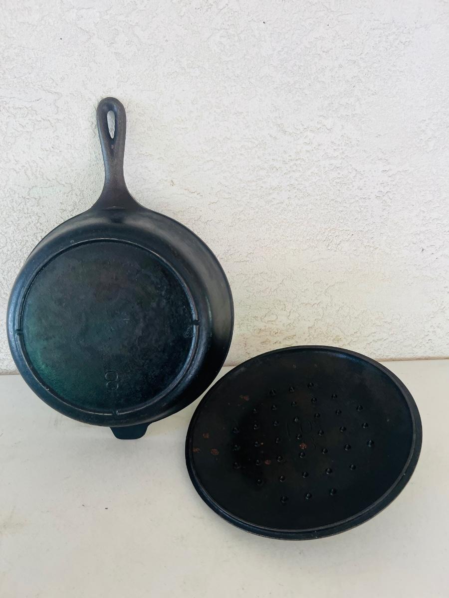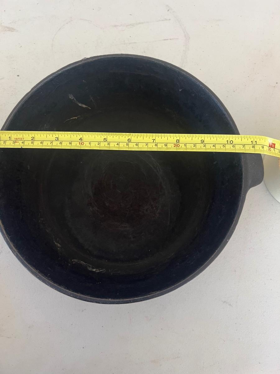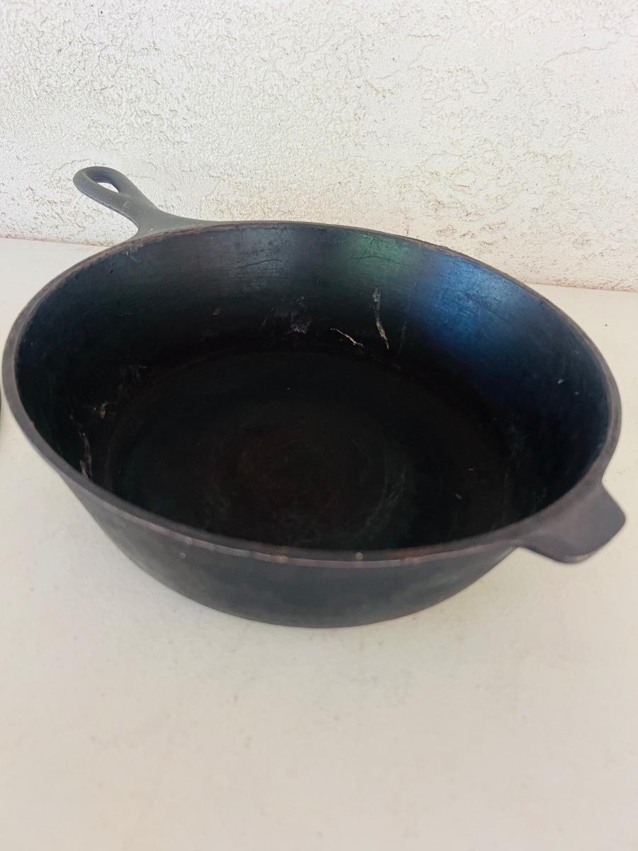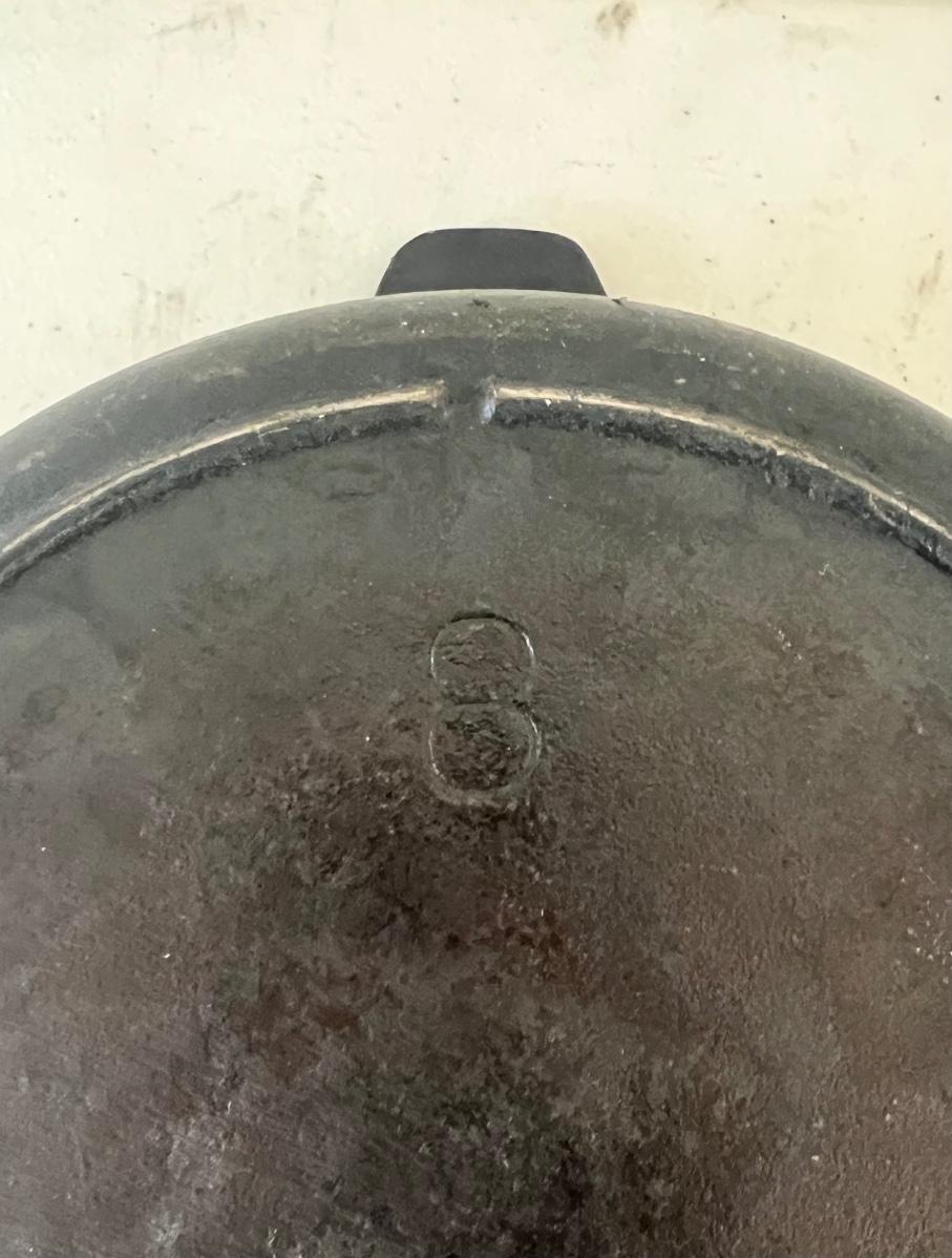 Unmarked #8 Notched Cast Iron Chicken Fryer Skillet Cast Iron. See pictures for measurements.