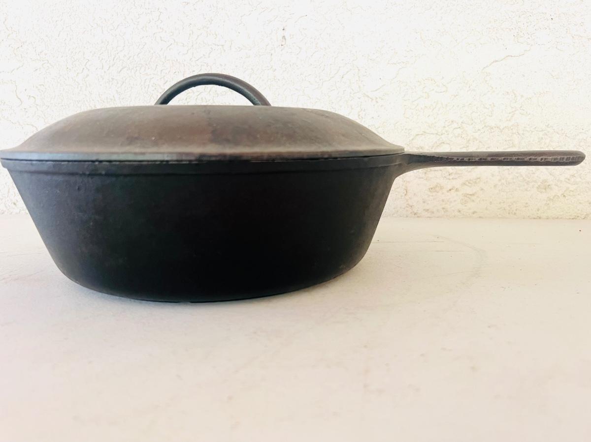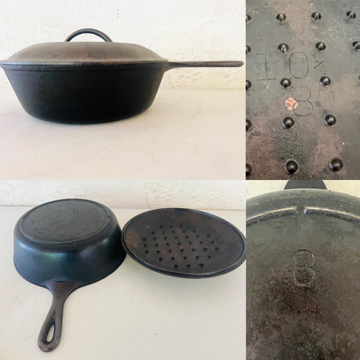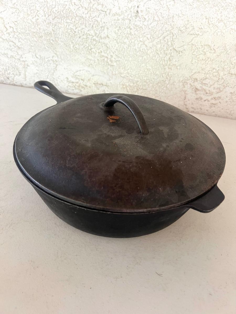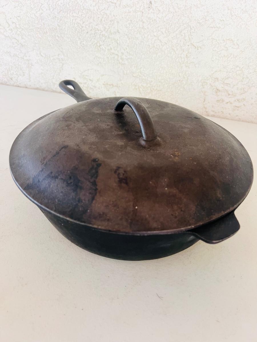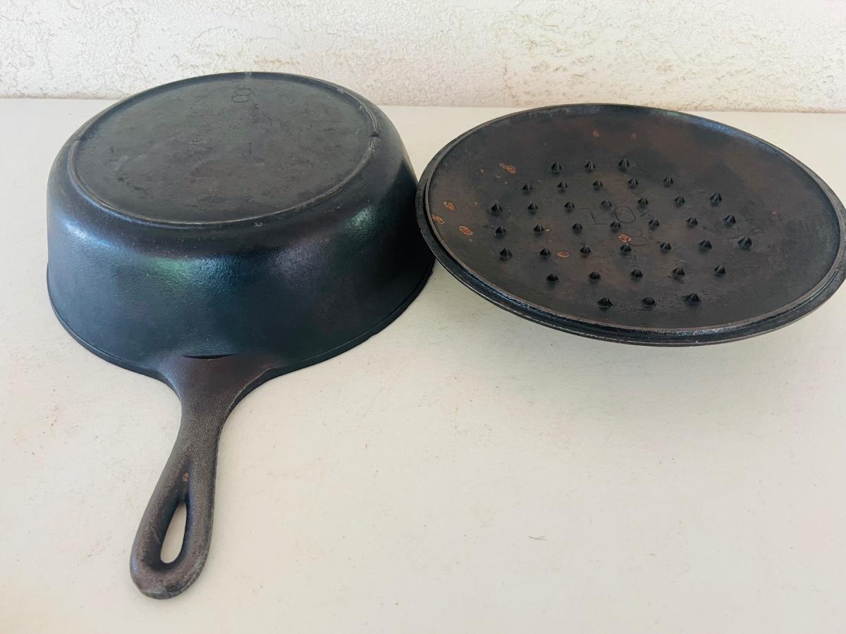 Unmarked #8 Notched Cast Iron Chicken Fryer Skillet Cast Iron. See pictures for measurements.