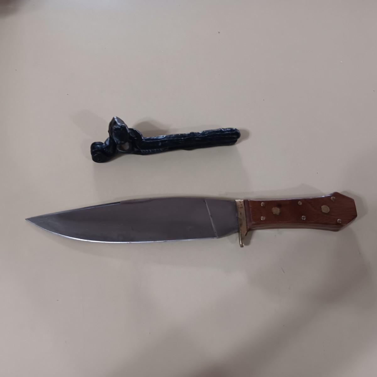 CAST IRON NUTCRACKER AND A HUNTING KNIFE