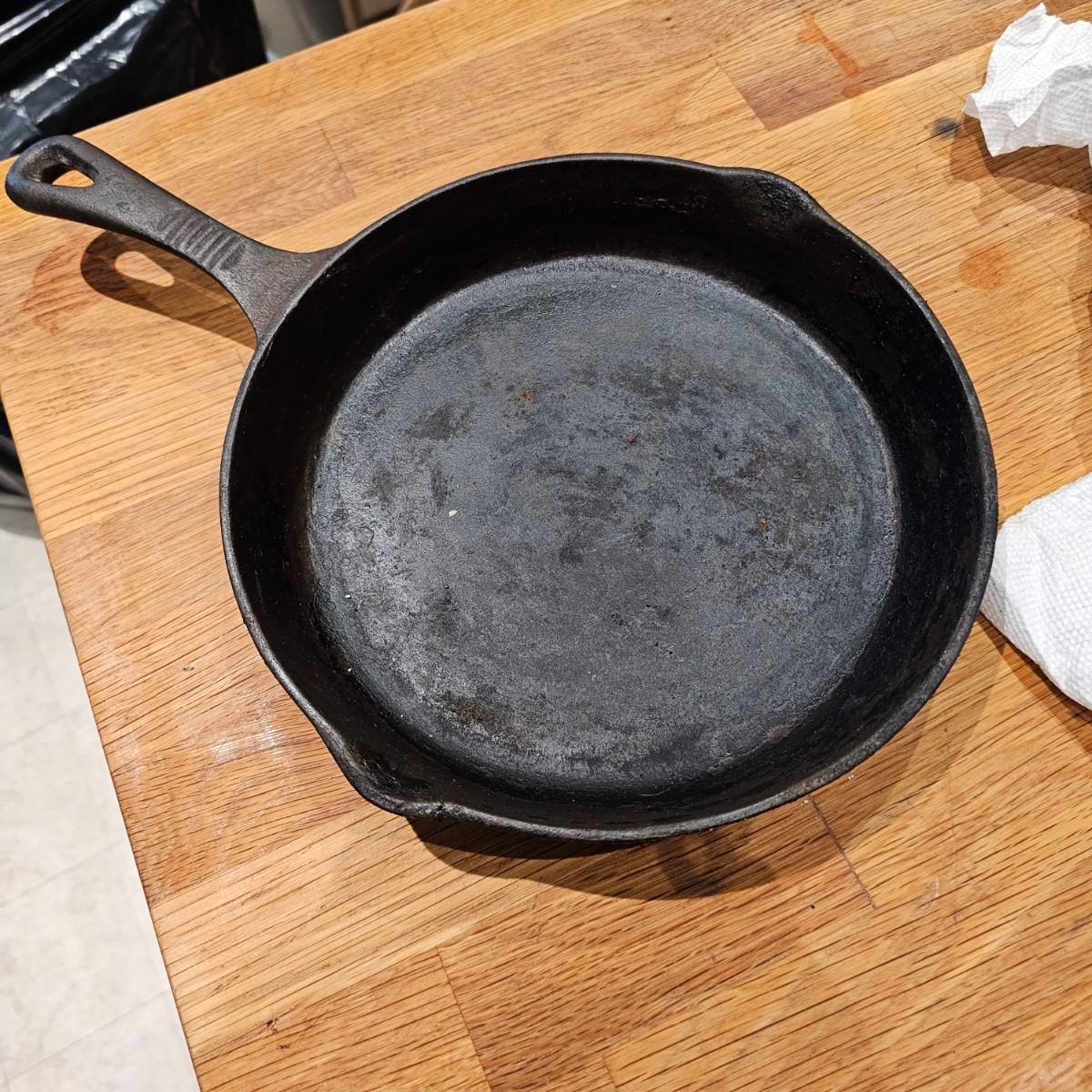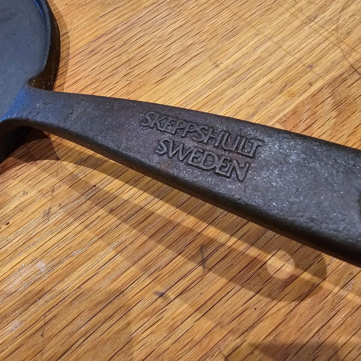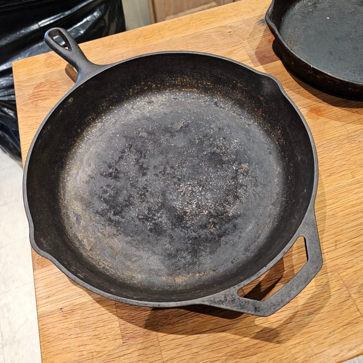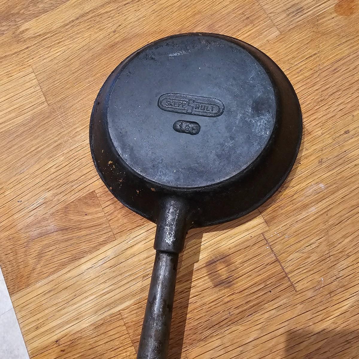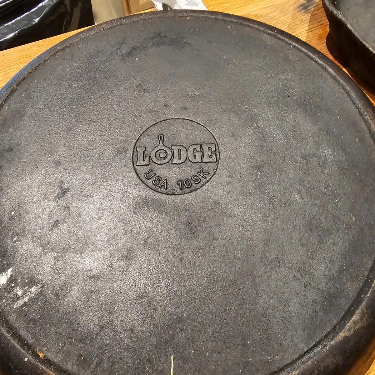 Cast iron skillets and small cook pans. One large Lodge 12" D fry pan. One medium 10"D pan. Smallest fry pan is 7"D, and flat griddle is 6.5"D. Two of the pans are made by Skeppshult. Many items are from Sweden and are stamped as such. See photos for details. Local pickup only.