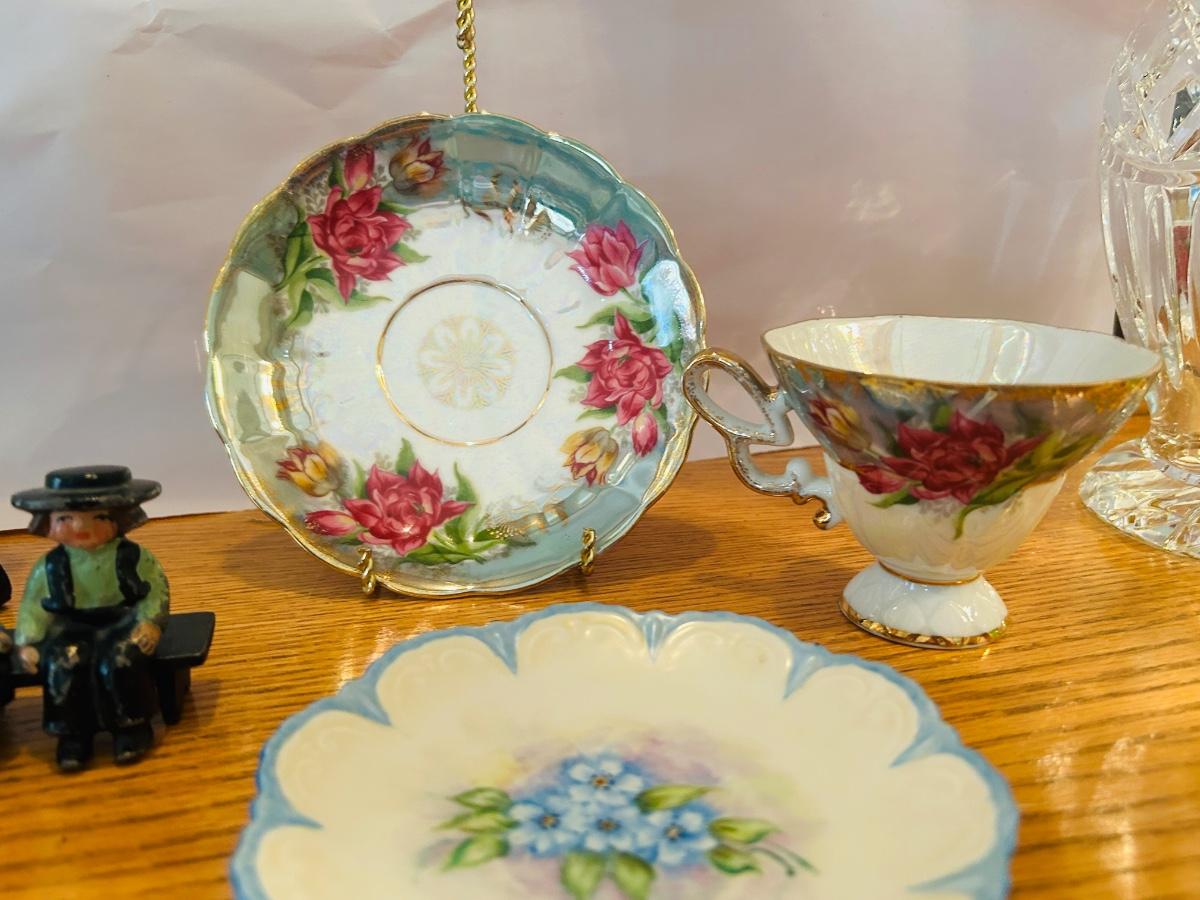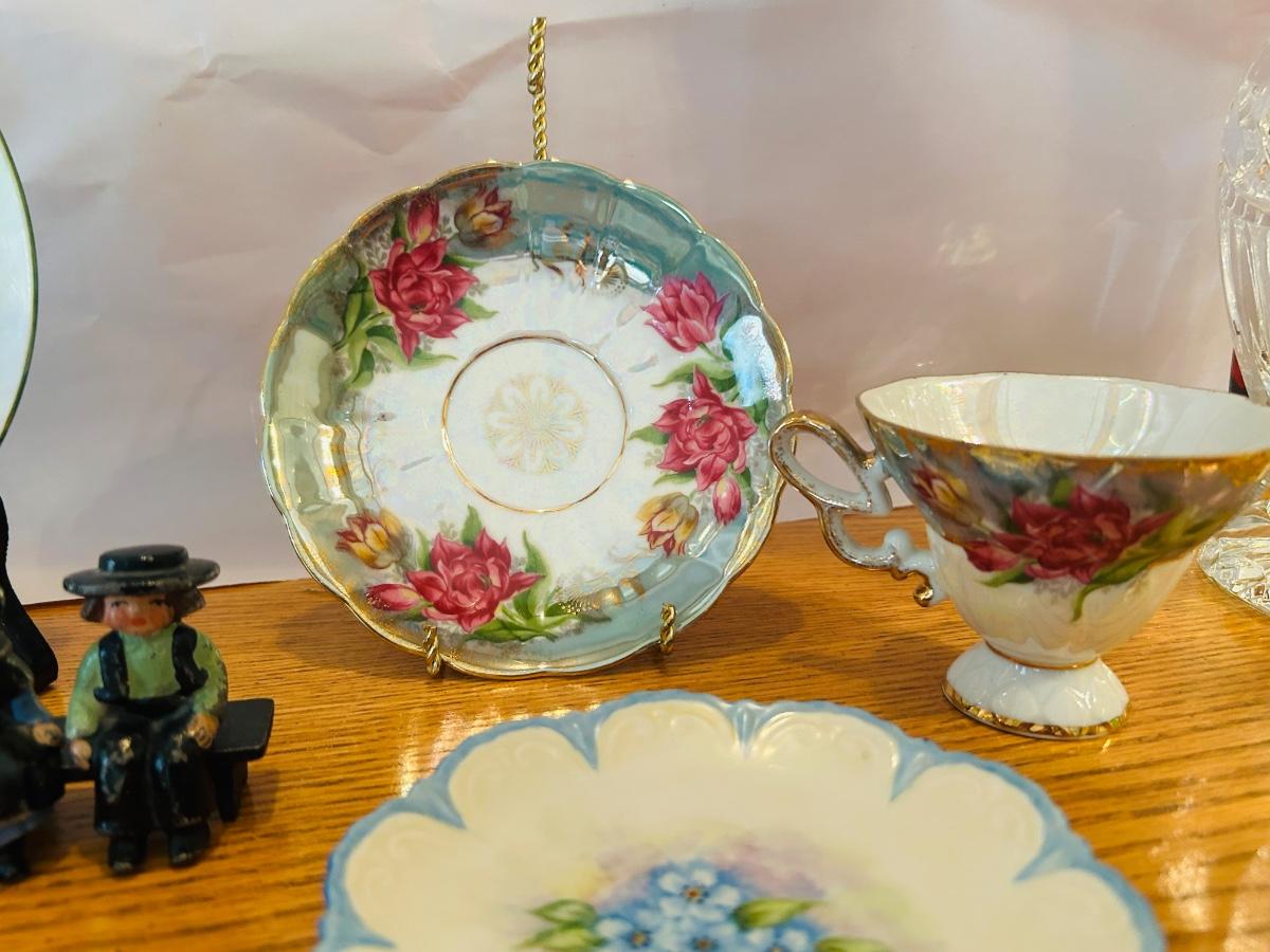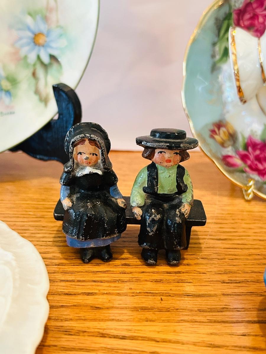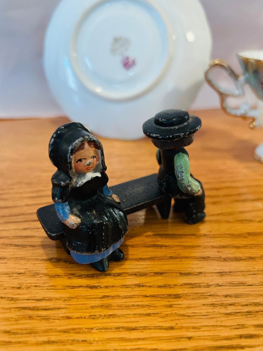 CAST IRON PILGRIM FIGURES AND ANTIQUE CHINA