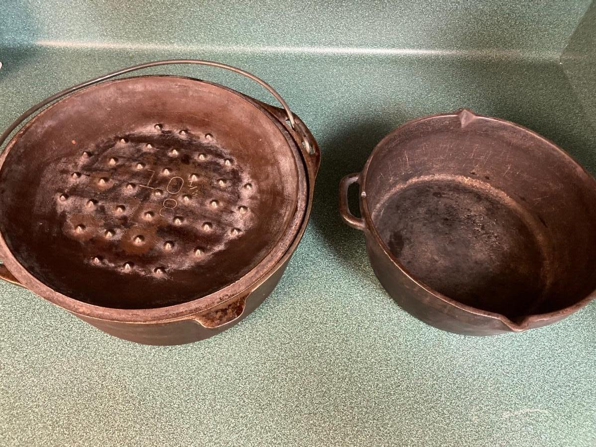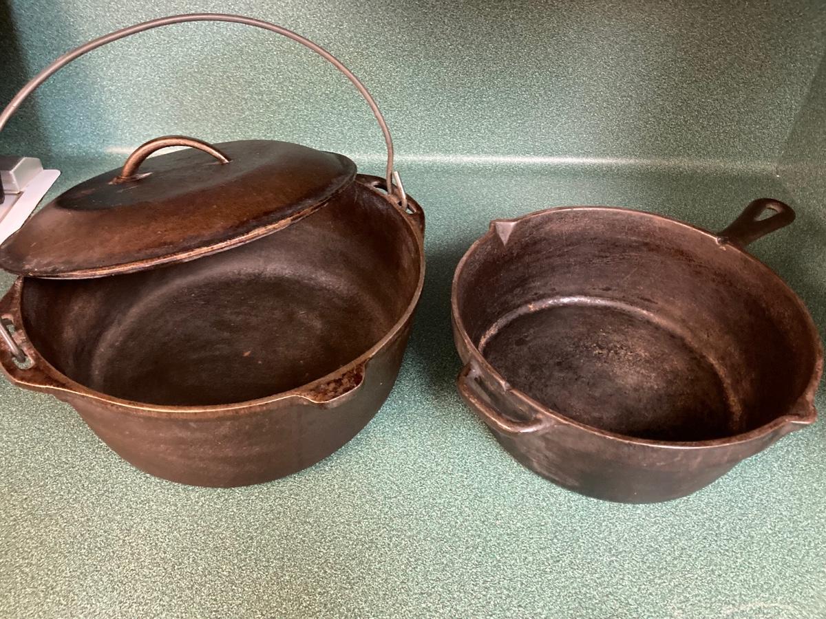 Two cast iron pots. Good condition.