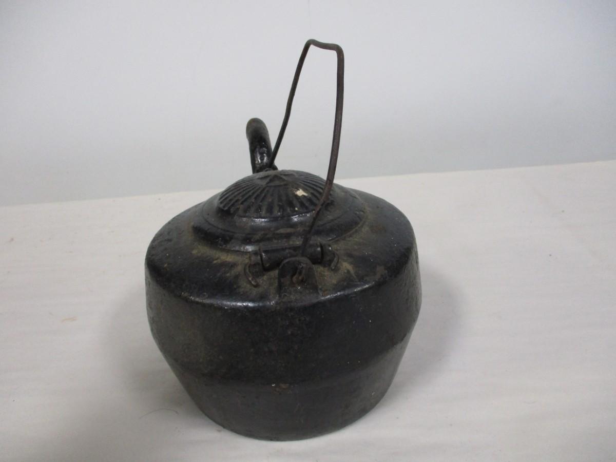 Cast Iron Kettle or Stove Pot with Ribbed Lid