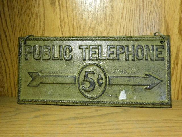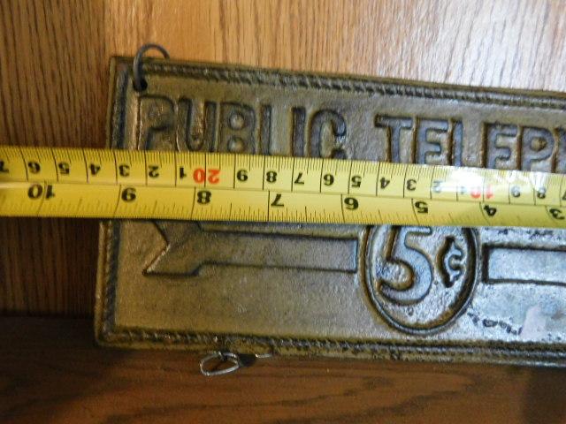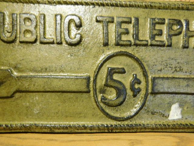 Cast Iron Public Telephone Five-Cent Sign 9"x4"