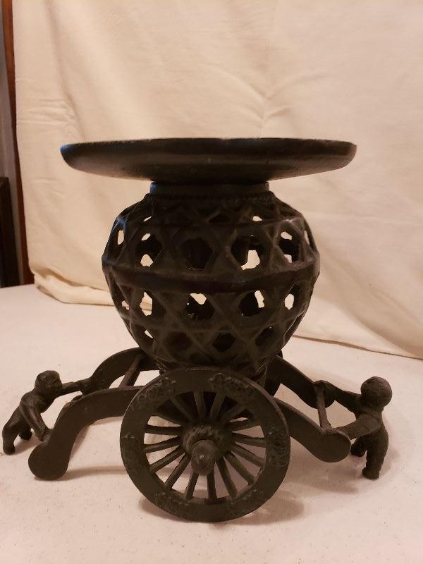 Cast Iron RIckshaw Candleholder, Made in Japan