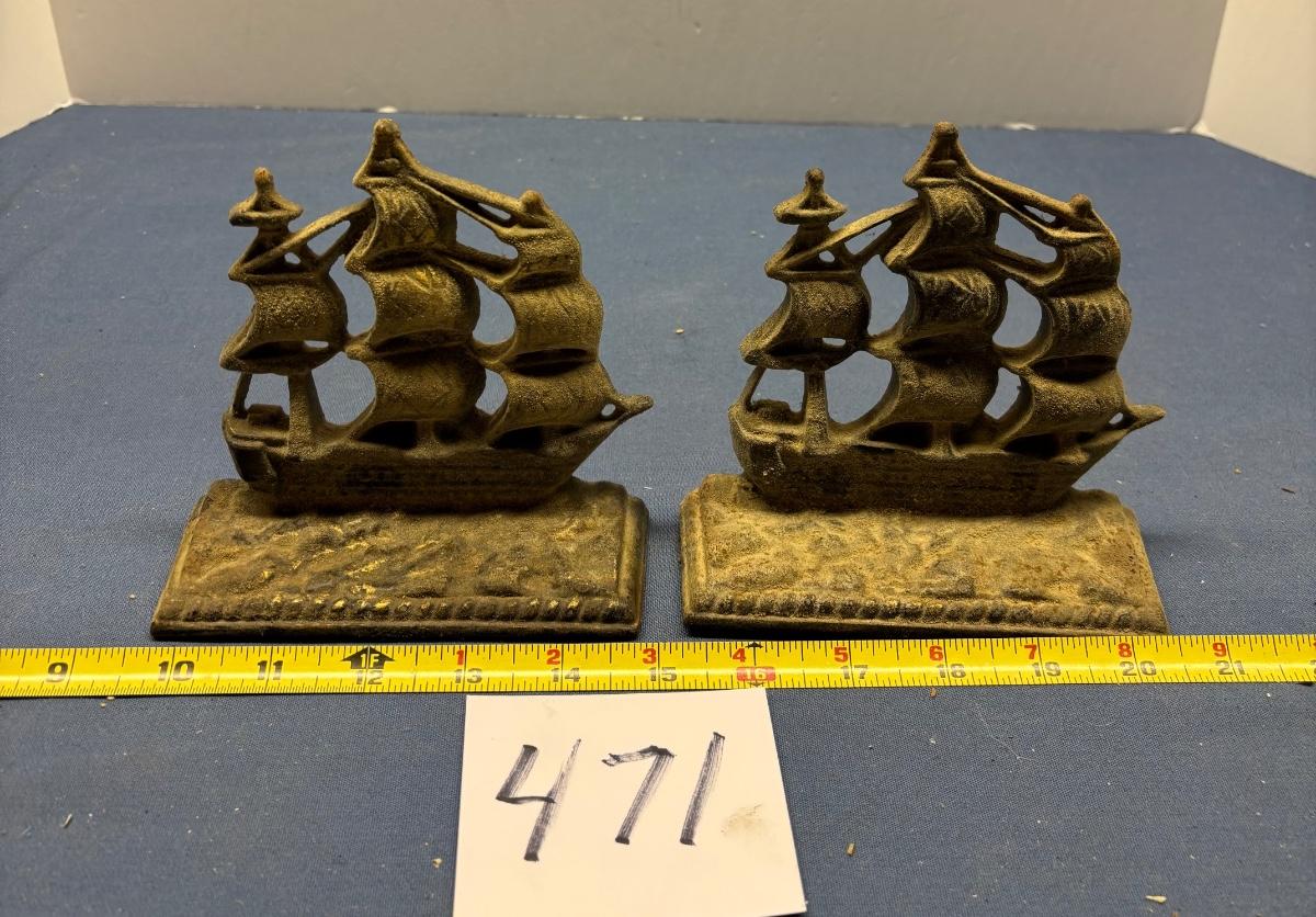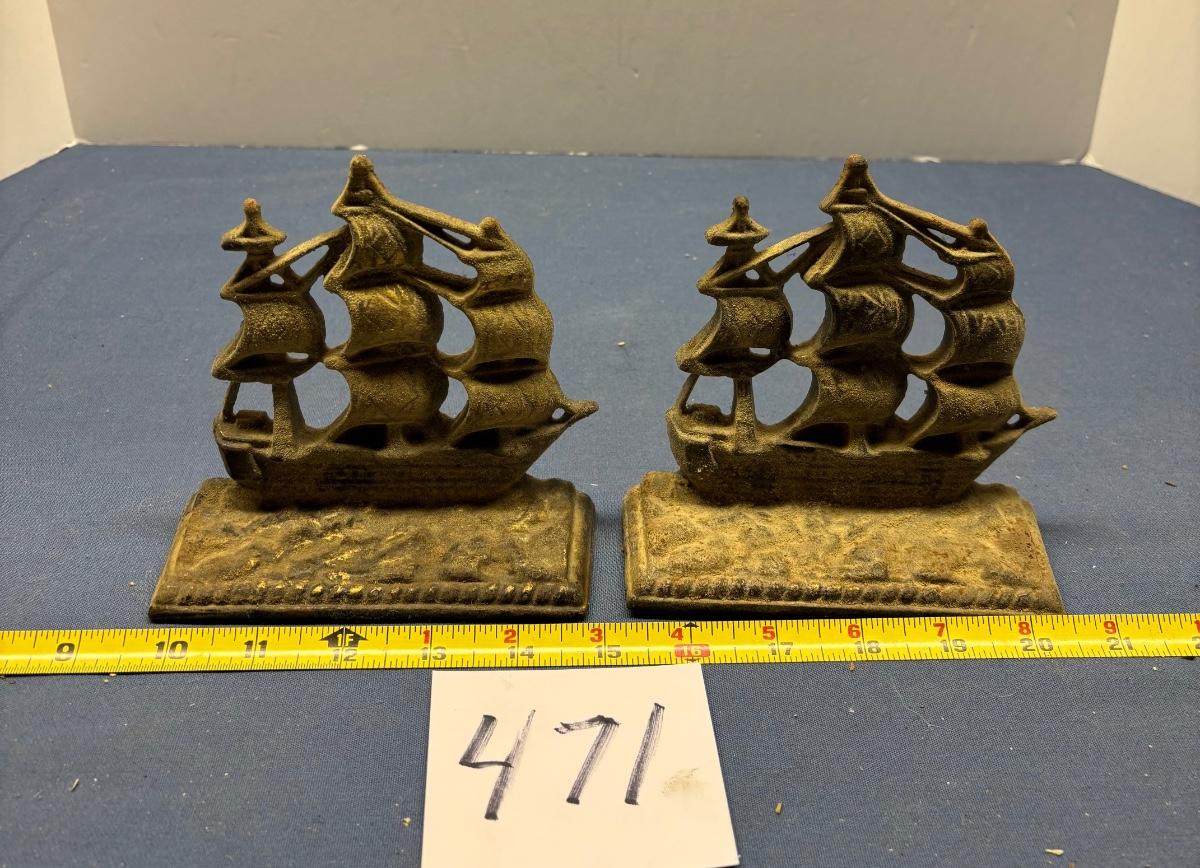 Cast Iron Ship Bookend Set