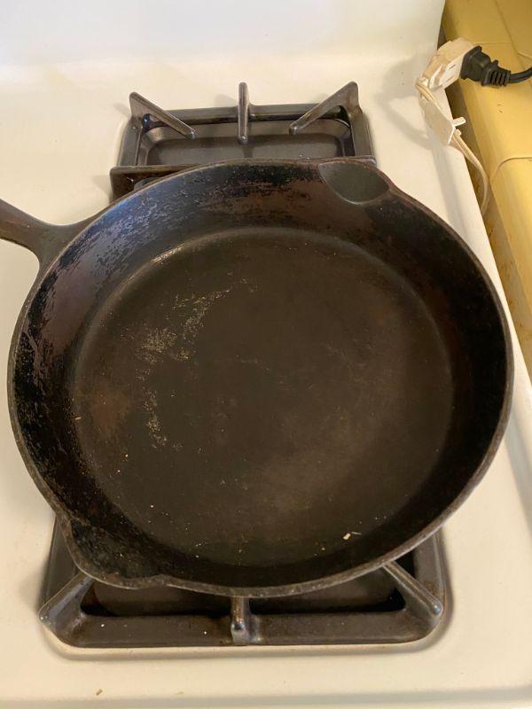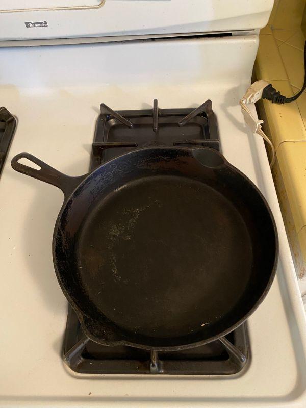 Cast iron skillet. Looks like it is a #8, cant make out the brand in the center. In good used condition.