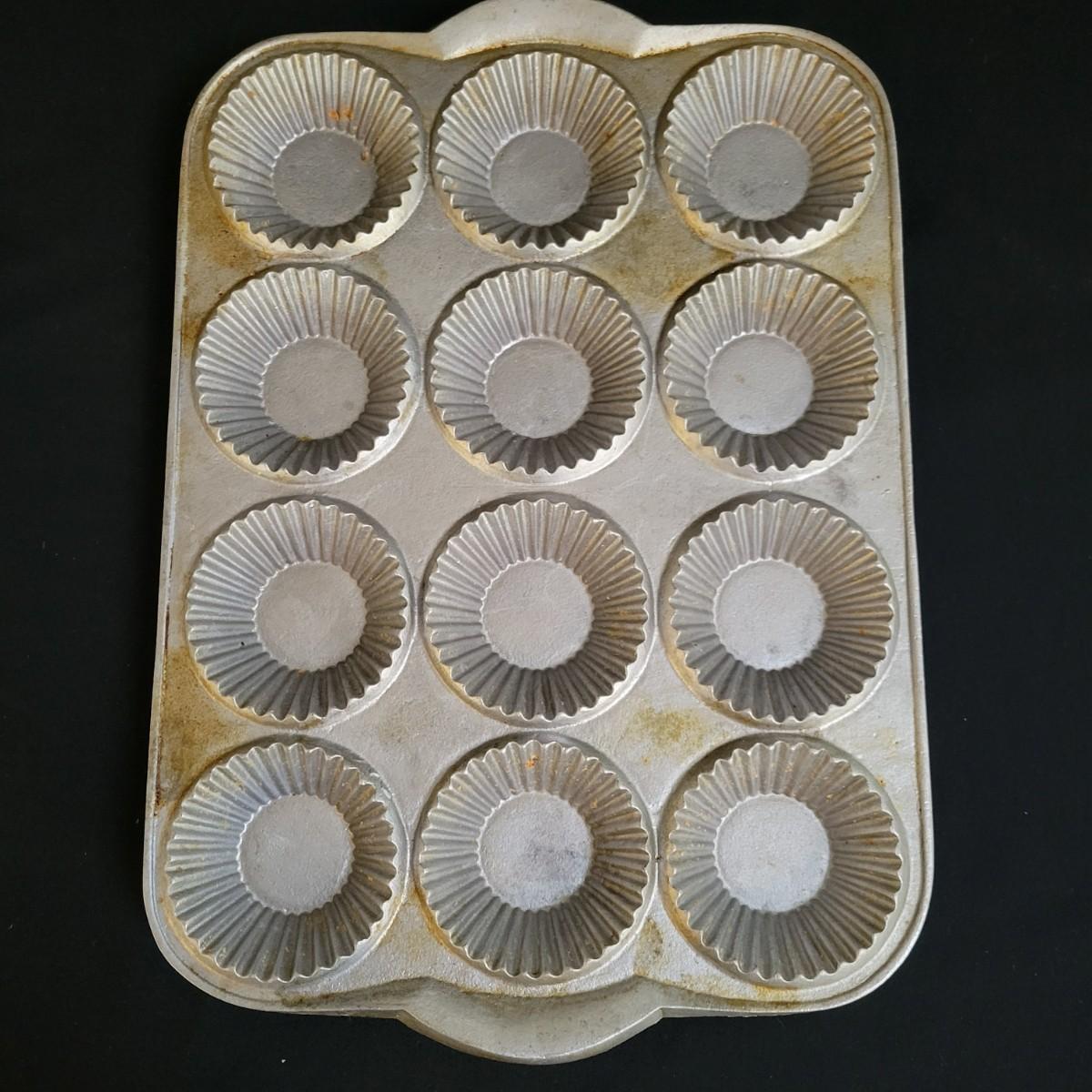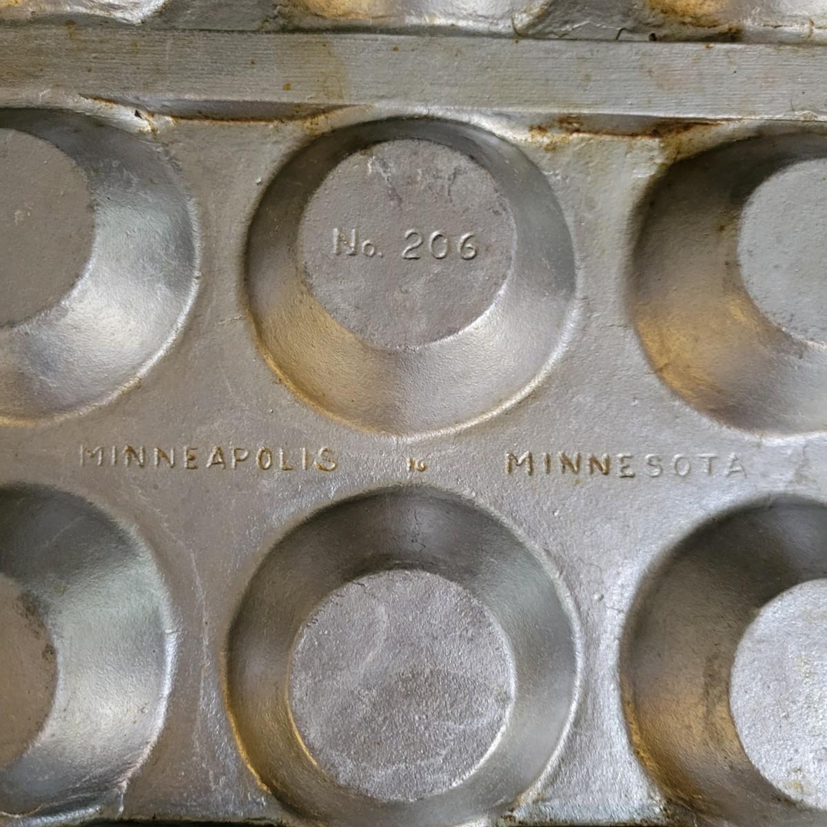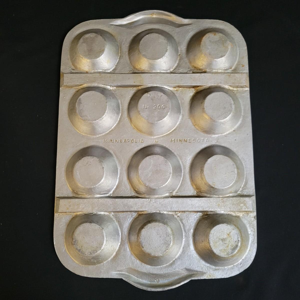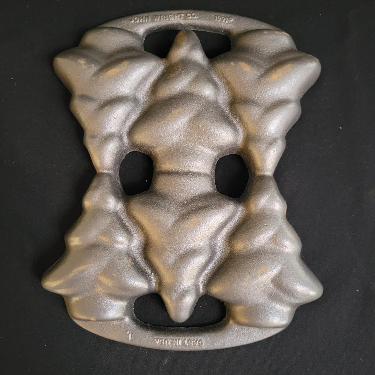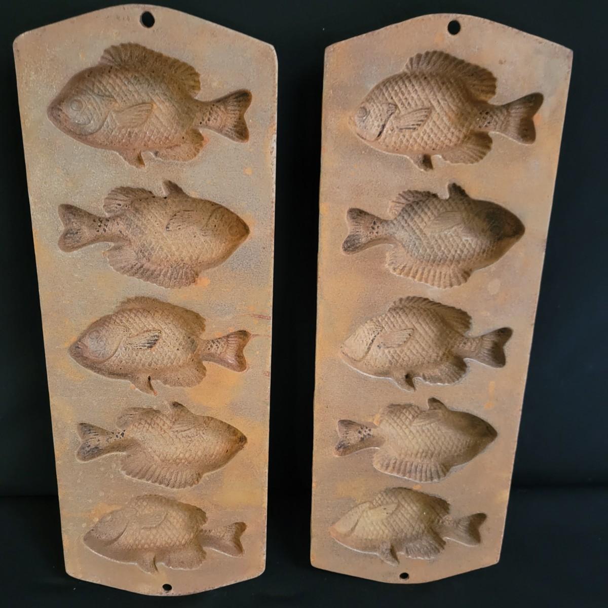 An assortment of cast iron kitchen items that includes a #10 skillet and five cast iron baking molds. The stars and fish were manufactured by Lodge and the Christmas trees by John Wright Co. The muffin pan measures approximately 10" x 14.5". Shipping available. Shipping can be costly. We suggest contacting our preferred local shipping provider, Postage Express, with dimensions and getting an estimate before bidding: (828) 670-5501 or postageexpress@yahoo.com.