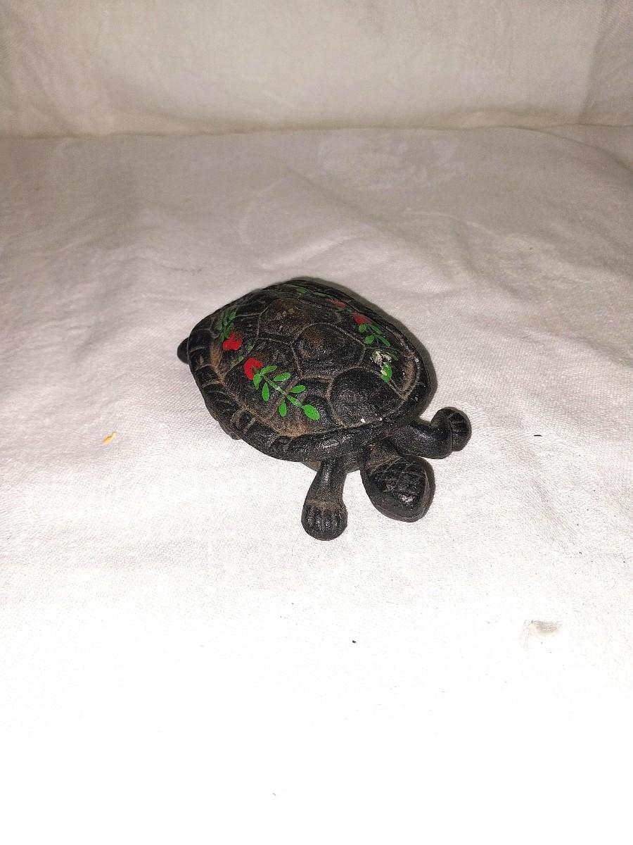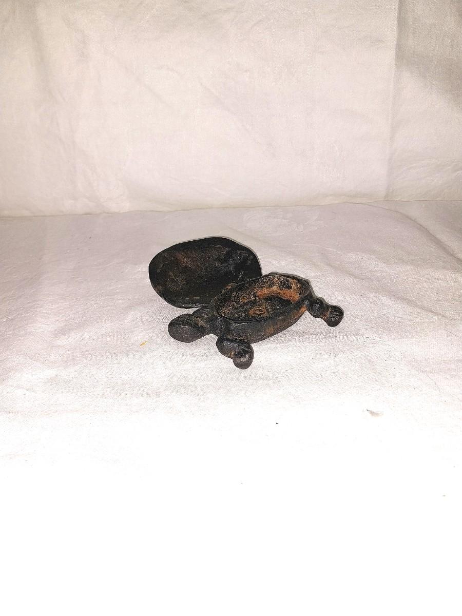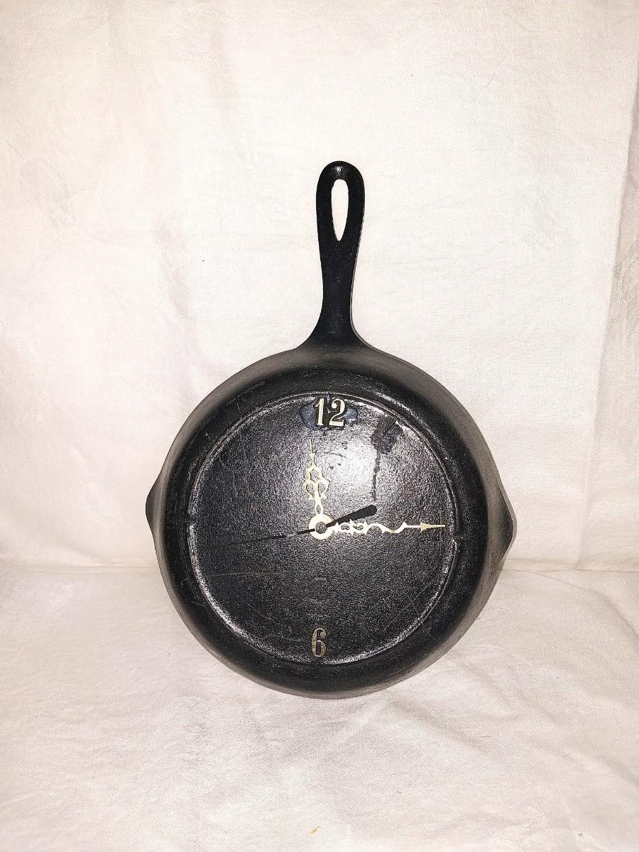 CAST IRON SKILLET CLOCK AND TURTLE TRINKET BOX