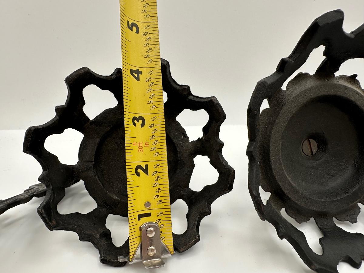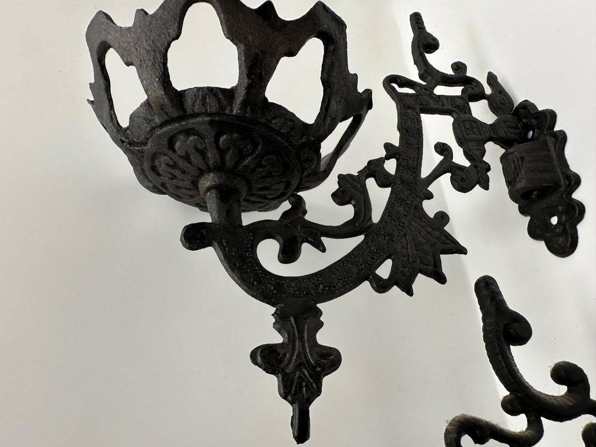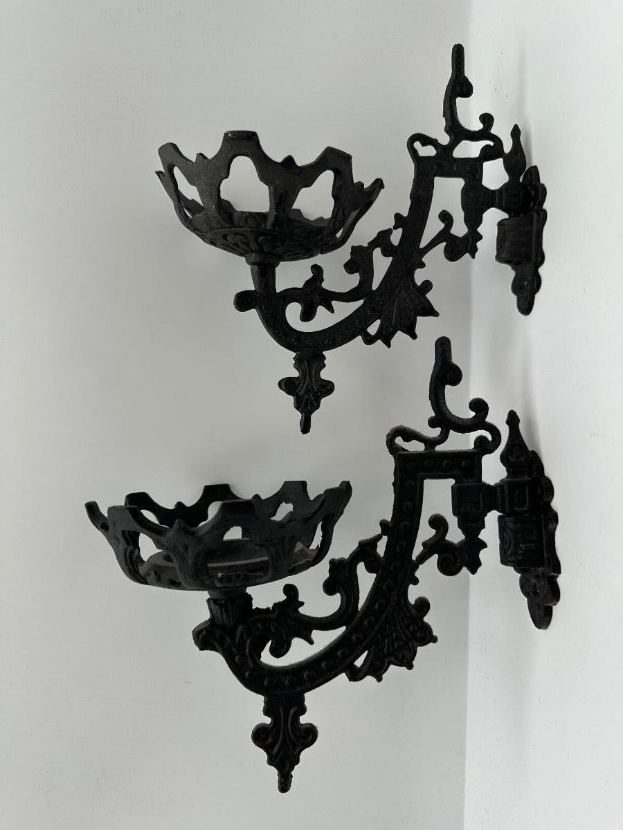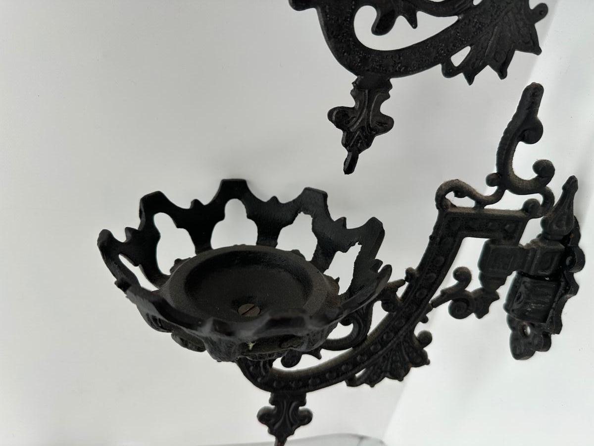 Pair of Cast Iron Swing Arm Oil Lamp Holder Wall Sconce With Mounts.
