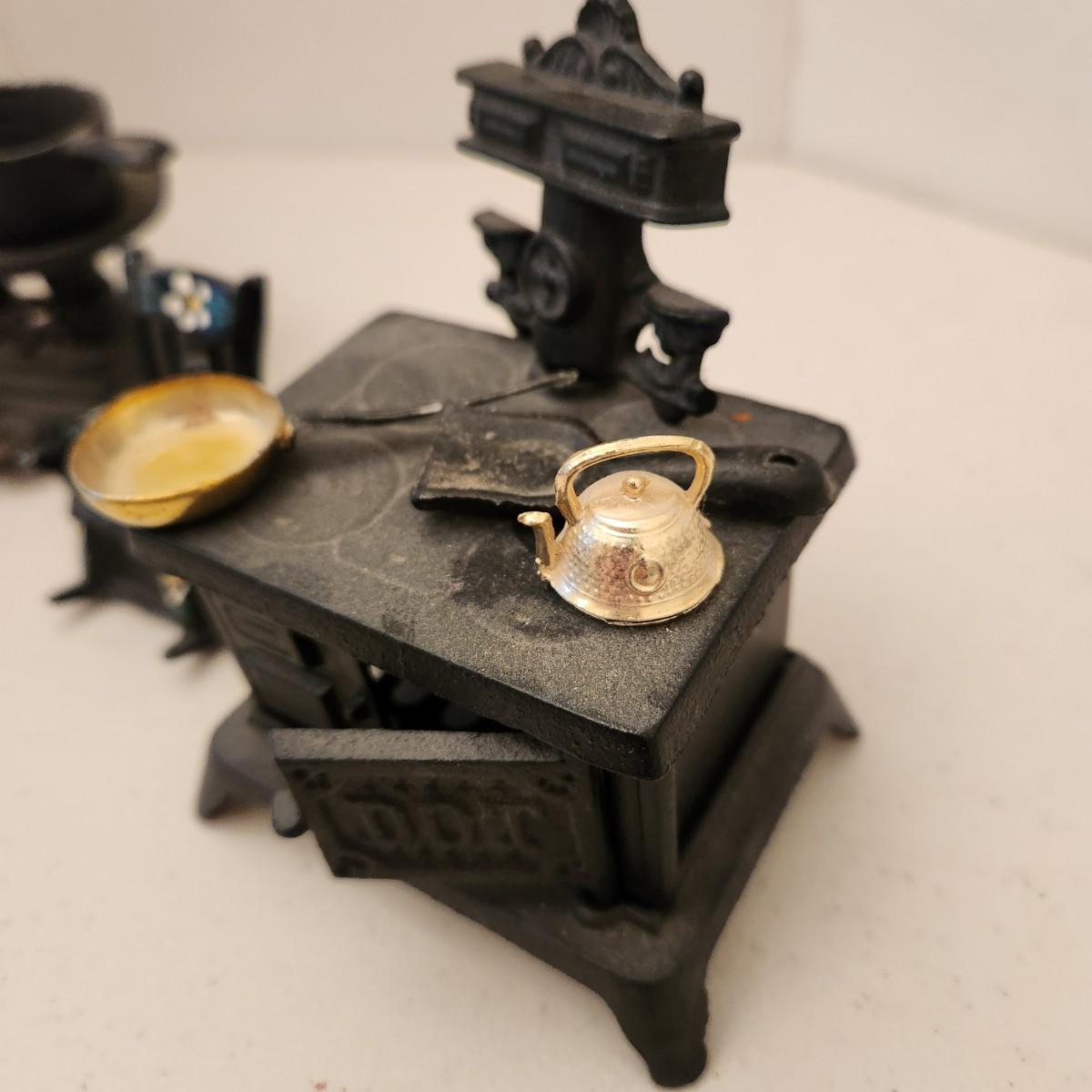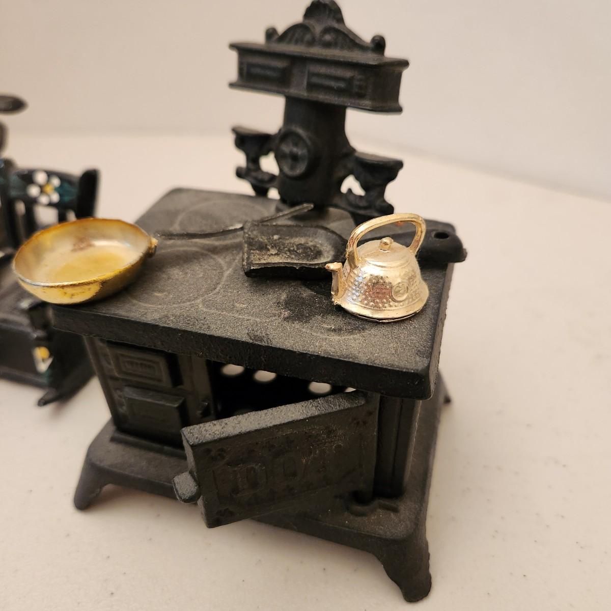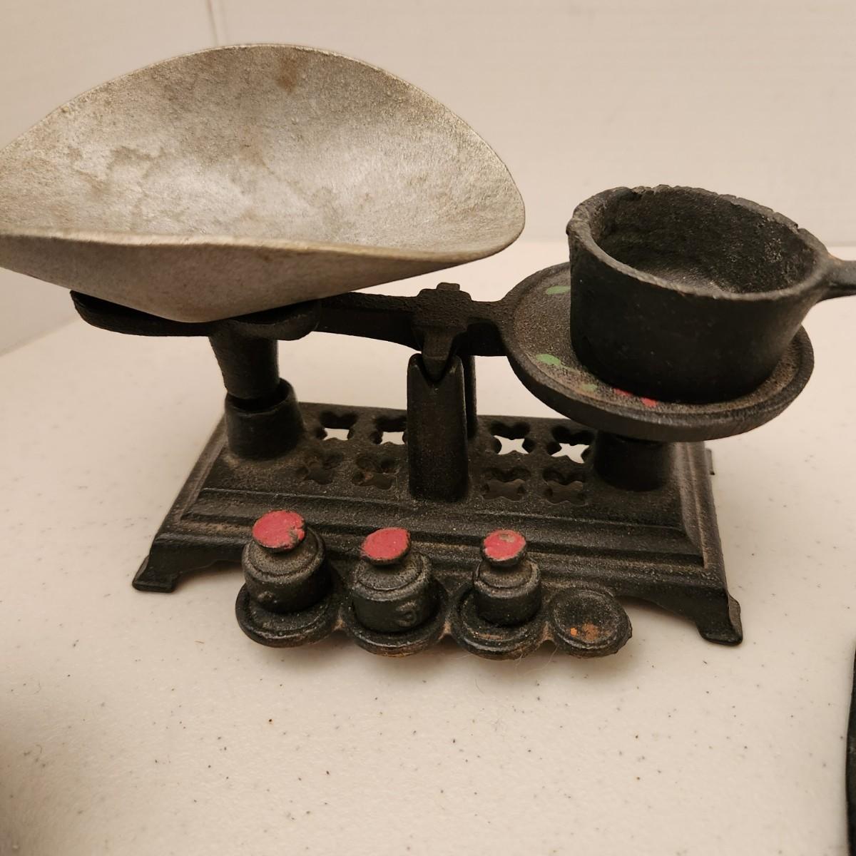 Cast Iron Toys Scale, Stove, Rocking Chair, Pot