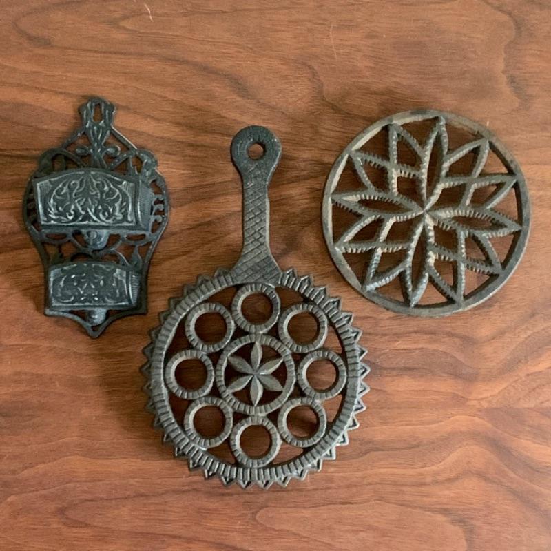 Lot 4 - Vintage Cast Iron Trivets & Match Holder