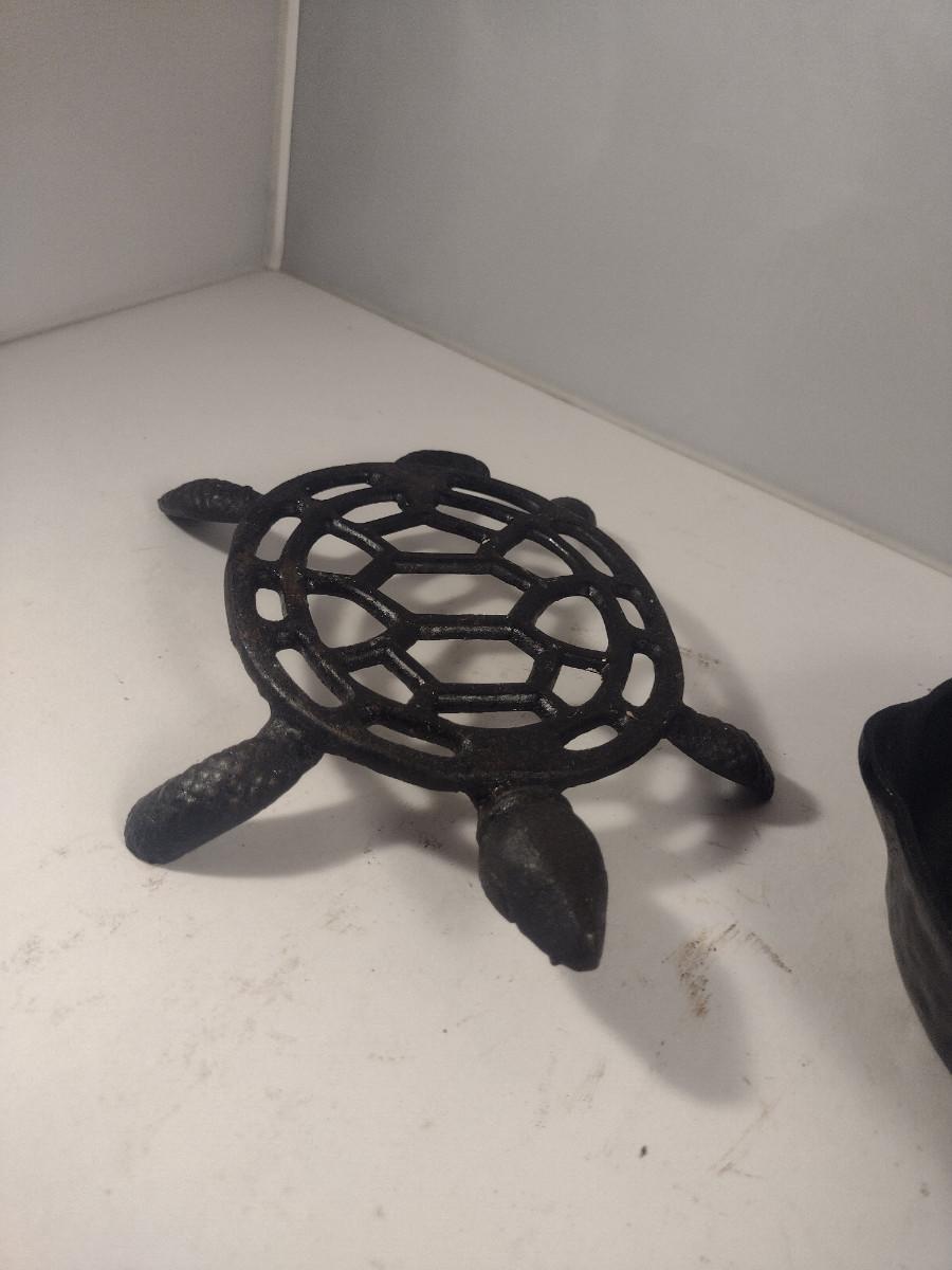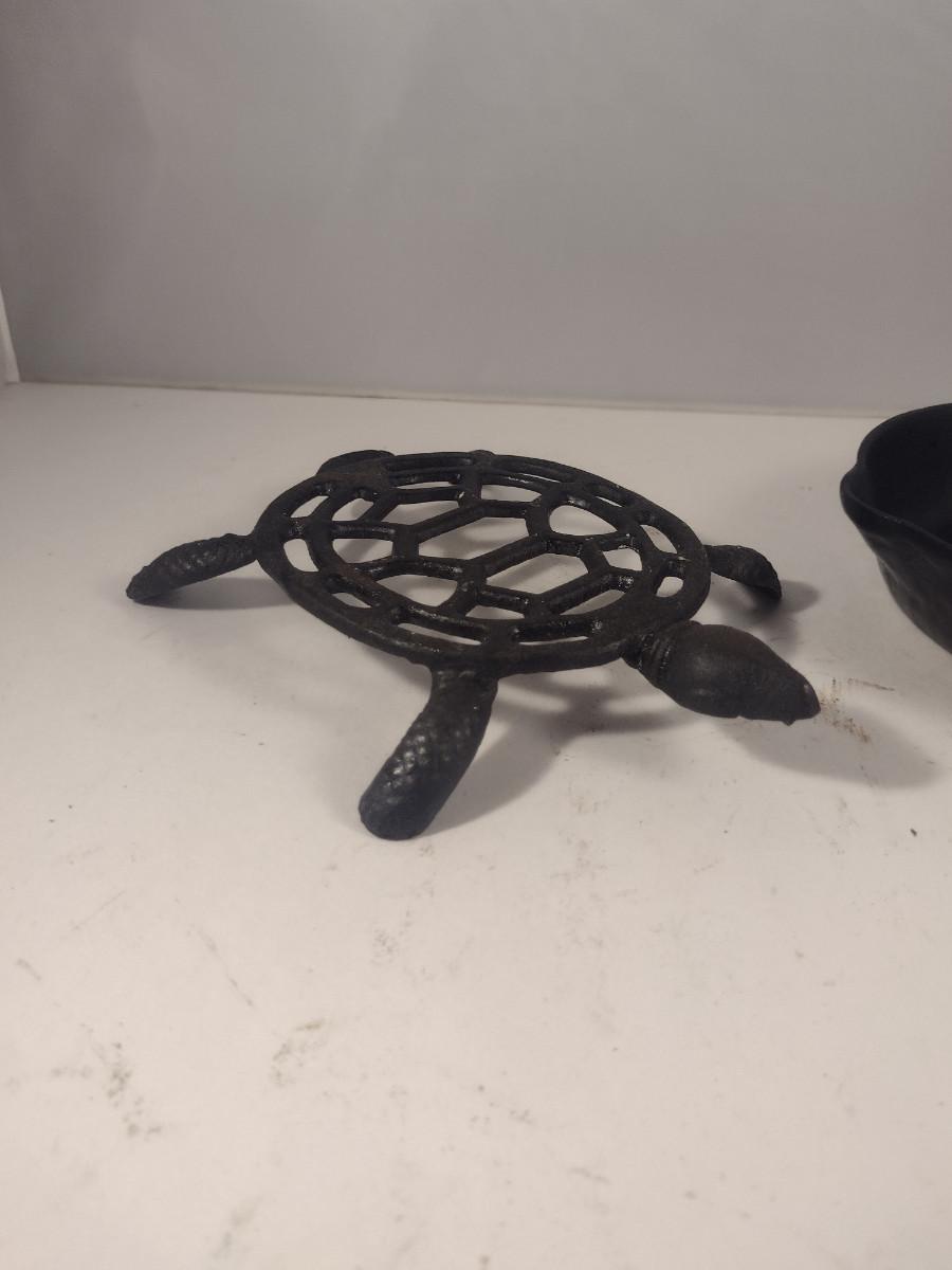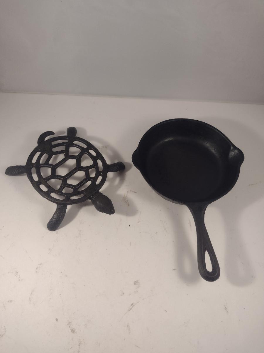 Cast Iron Turtle Design Trivet and Small Skillet