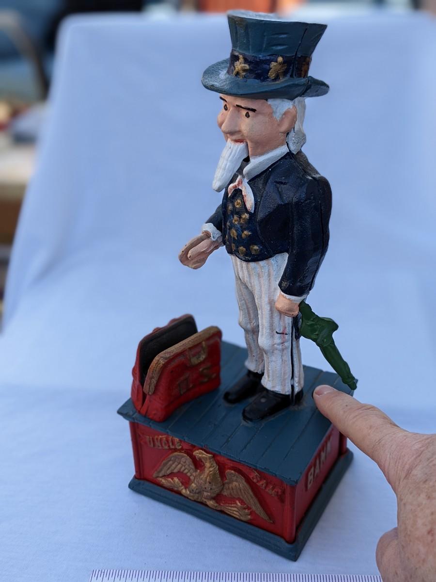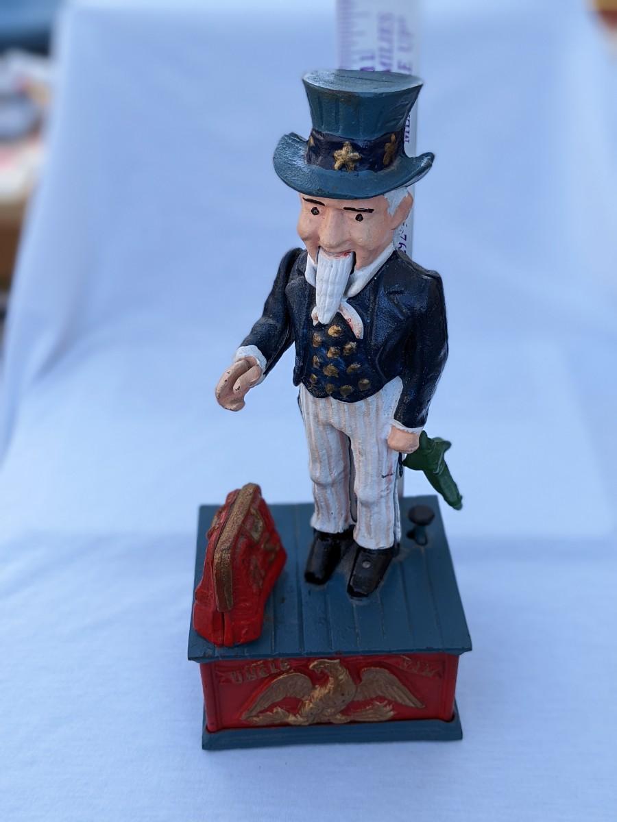 CAST IRON "UNCLE SAM" ANIMATED BANK, CIRCA APPROX. 1987