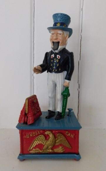 Cast Iron Uncle Sam Coin Bank Working Condition 11"