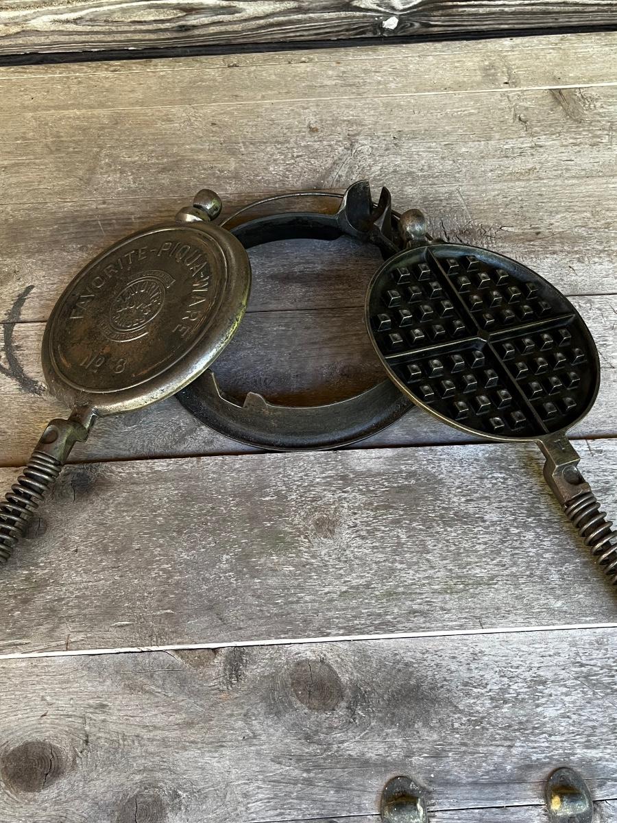 FAVORITE-PIQUA-WARE ~ Cast Iron ~ Waffle Iron Set & Stand