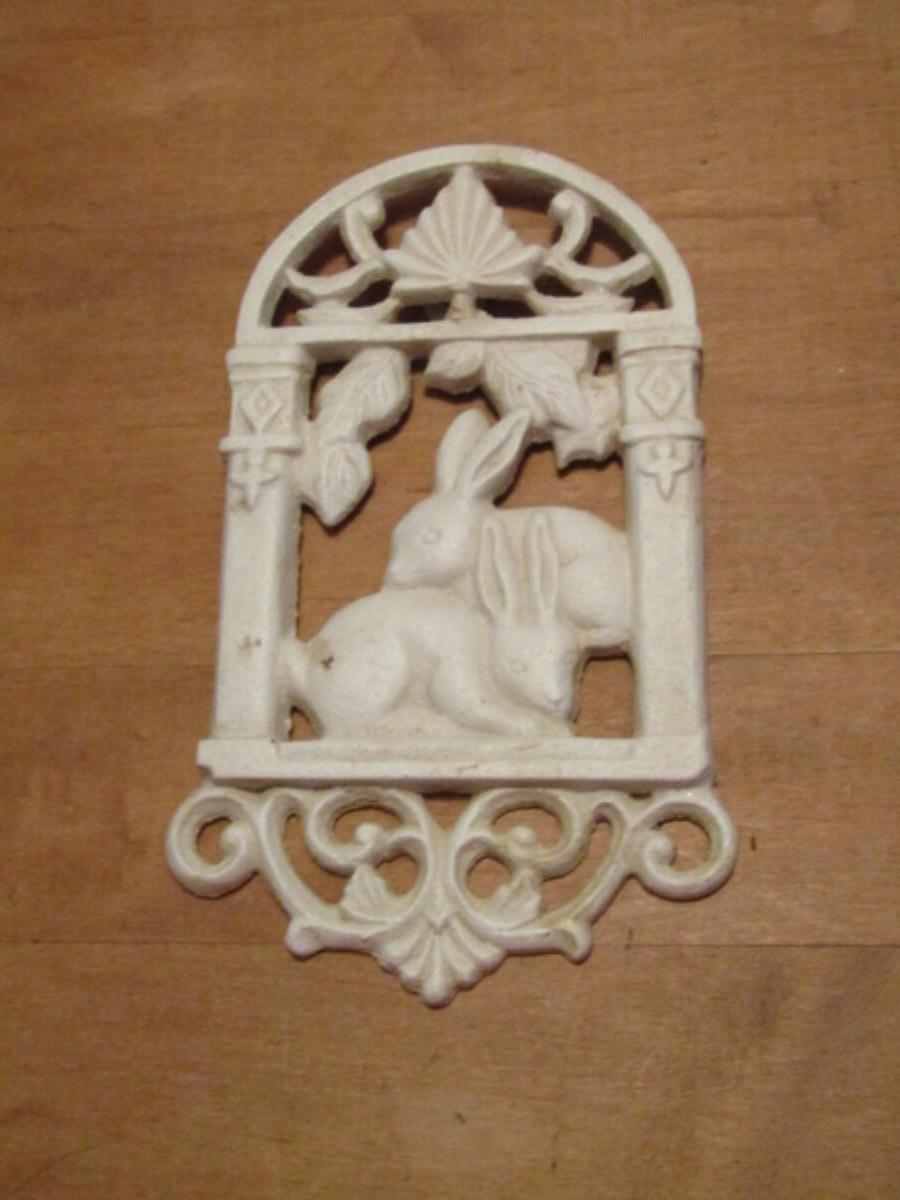 Cast Iron Wall Decor- Rabbits- Approx 5" x 9"