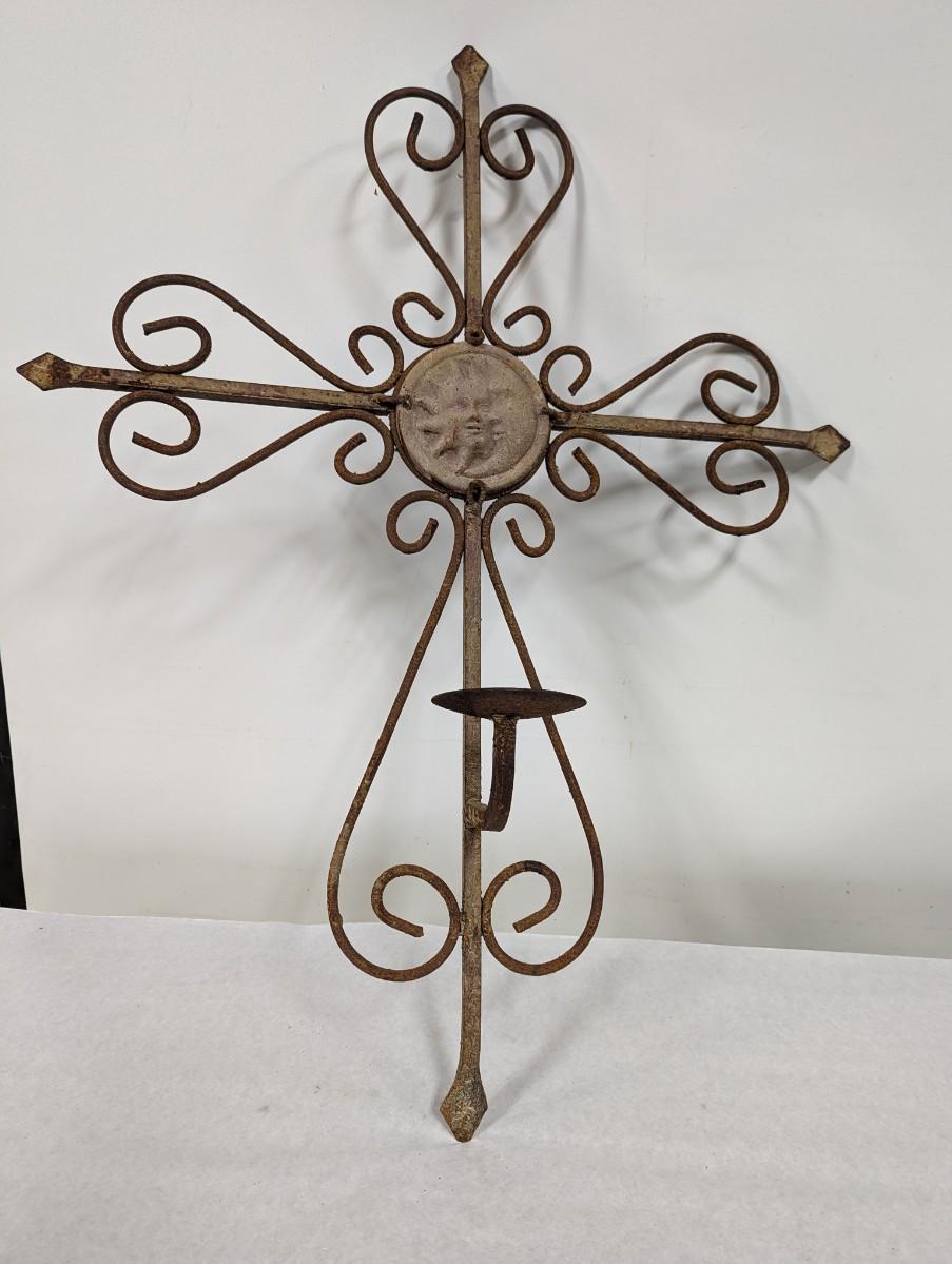 Cast Iron Wall Sun/Moon Candle Holder