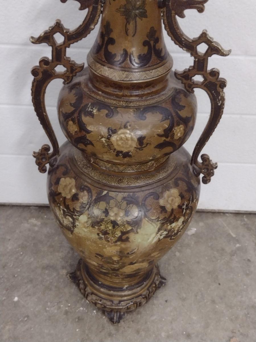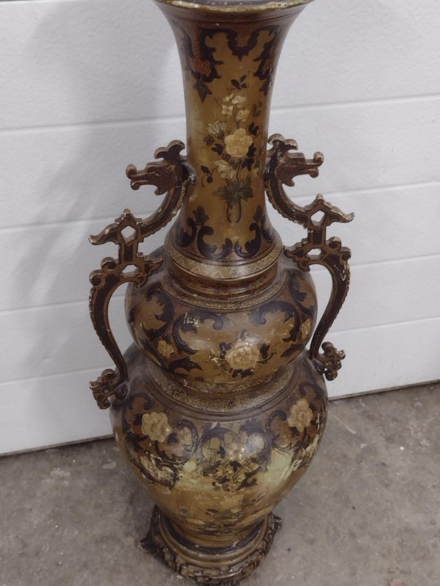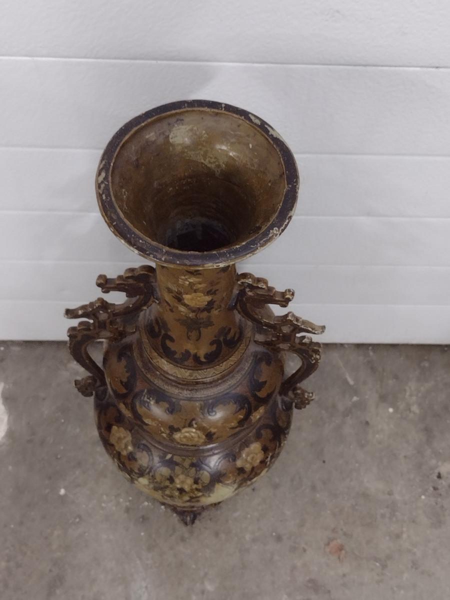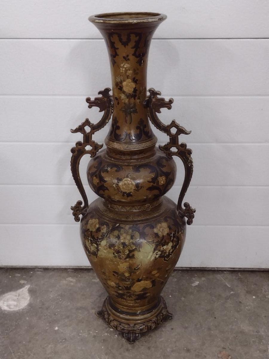 Cast Metal Asian Design Vase- Approx 25" Tall