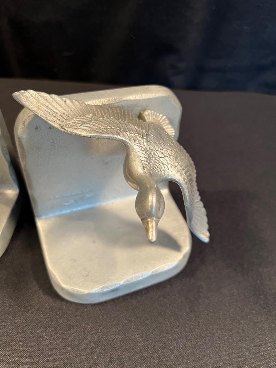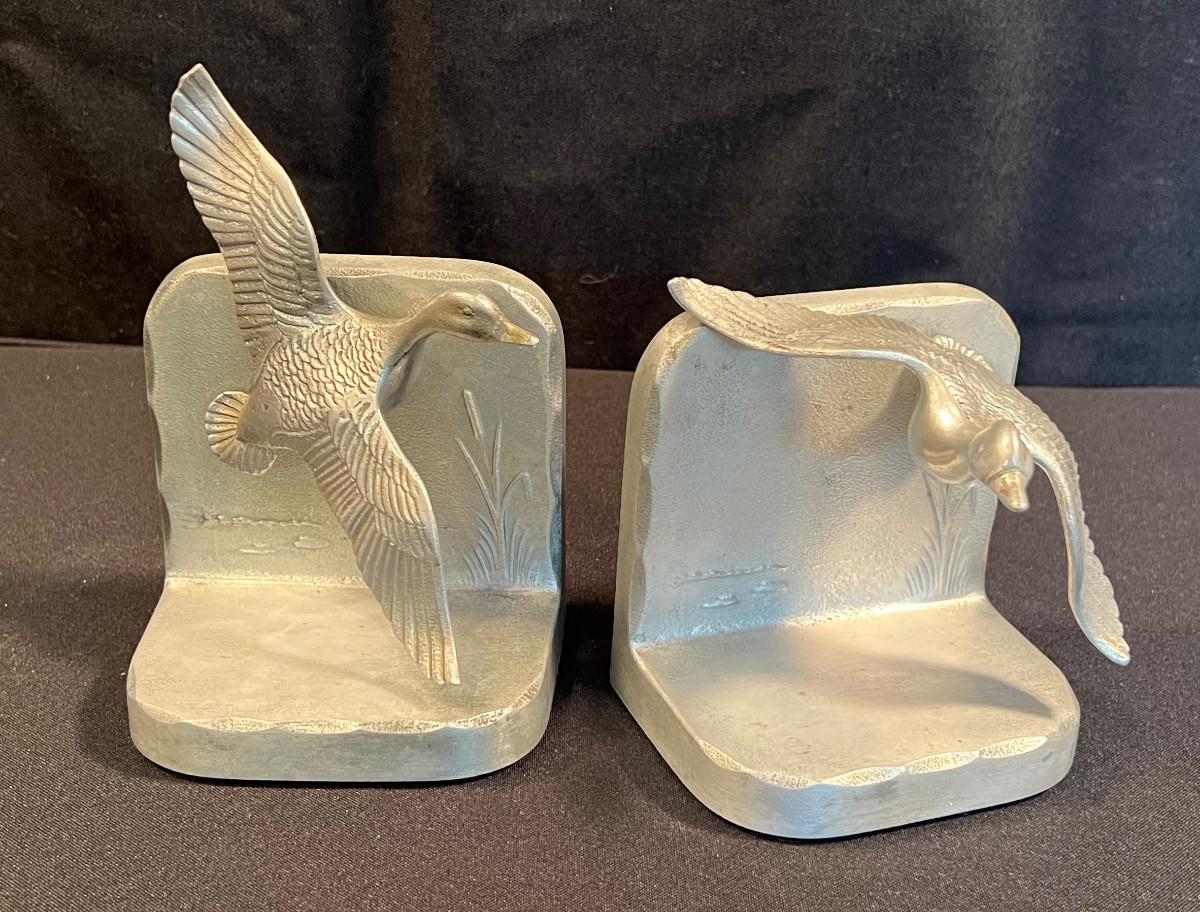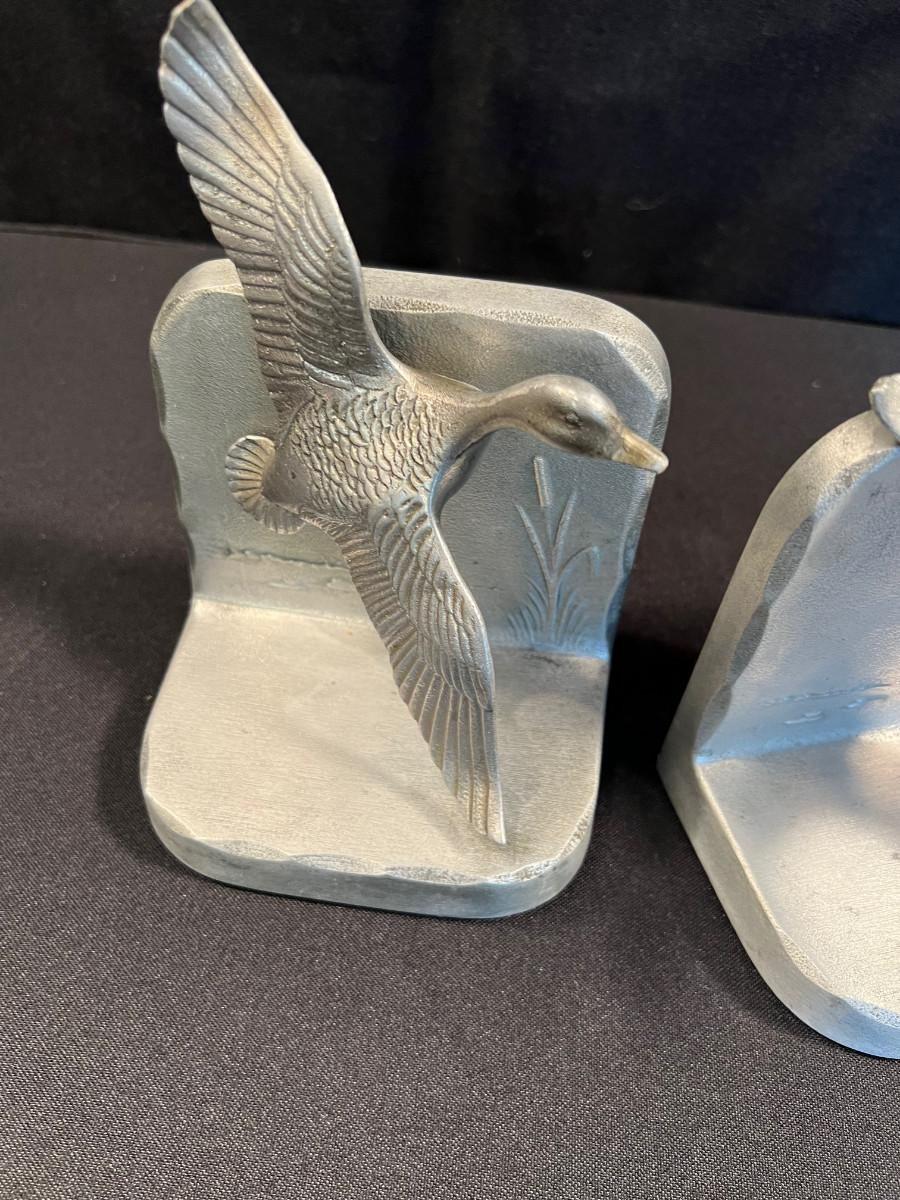Cast Metal Book Ends of Ducks in Flight