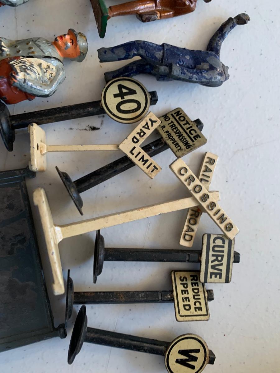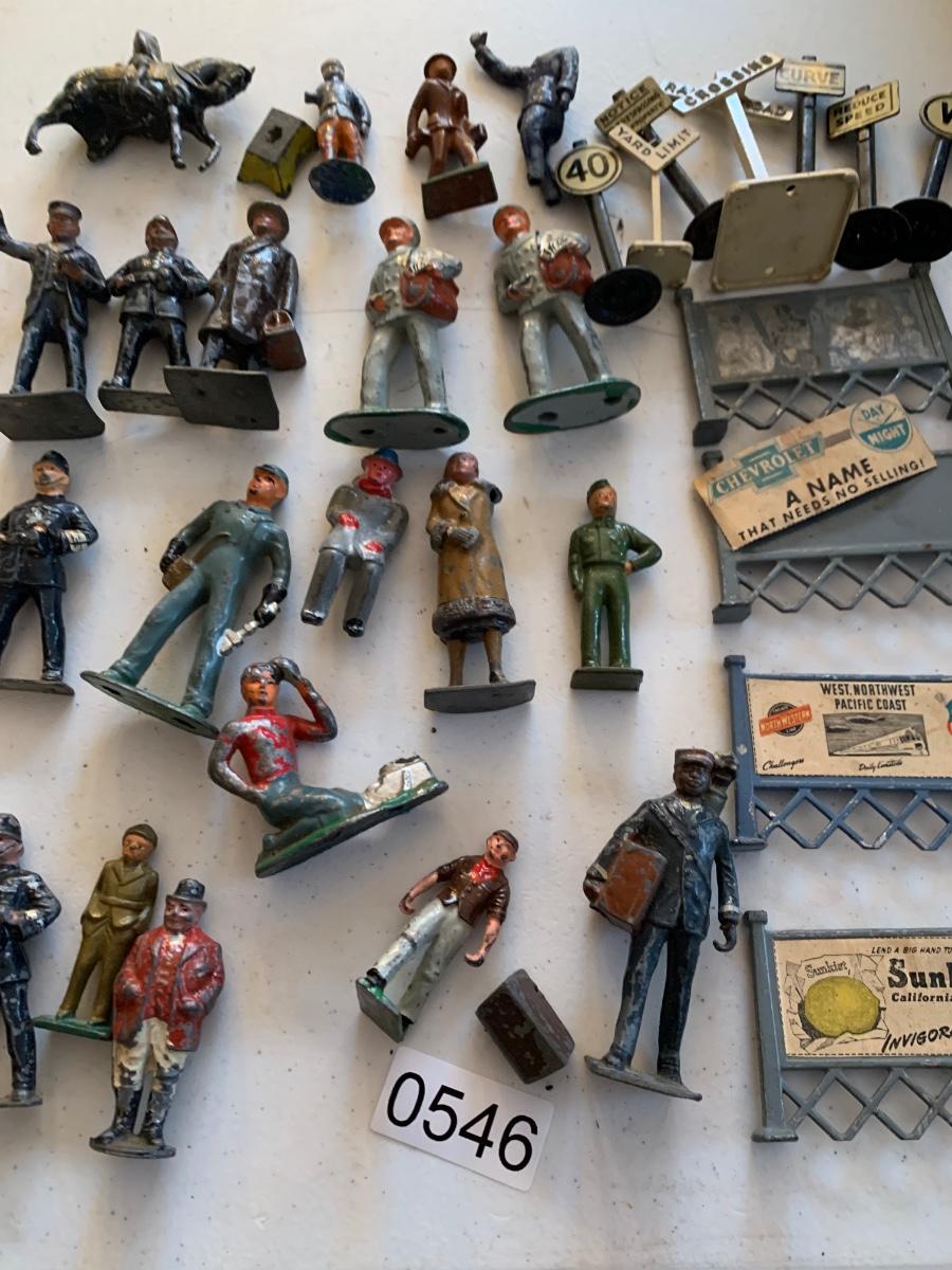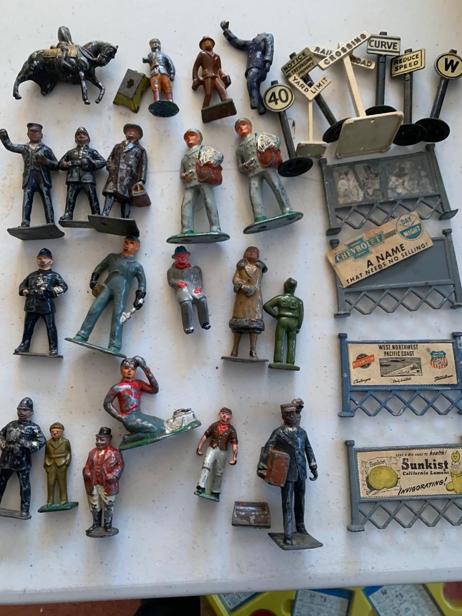 Lot 456 - Cast Metal Figures Lead Soldiers Model RR Layout Accessories & More