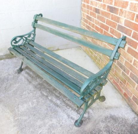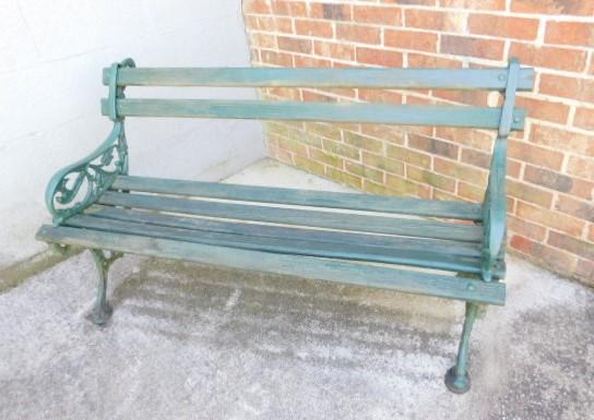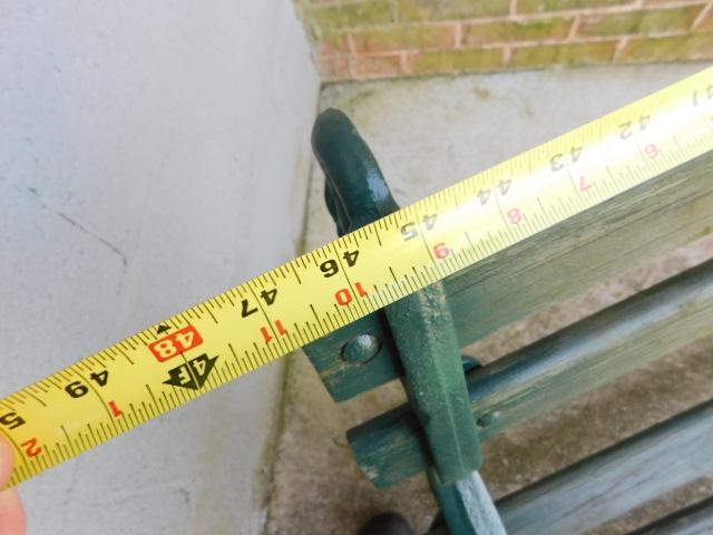 Cast Metal Frame Wood Slat Outdoor Bench 46" has some age and weathering wear