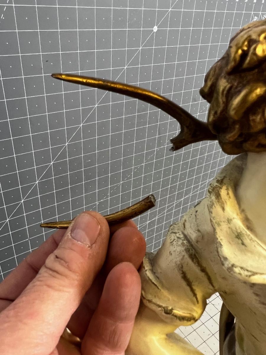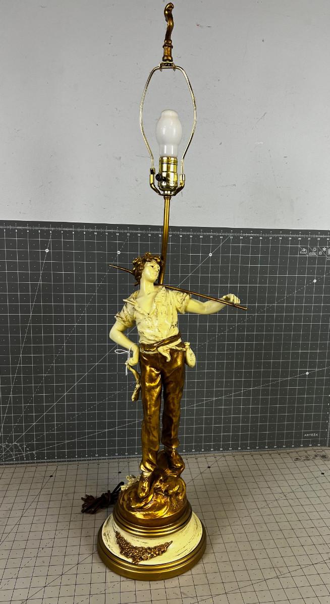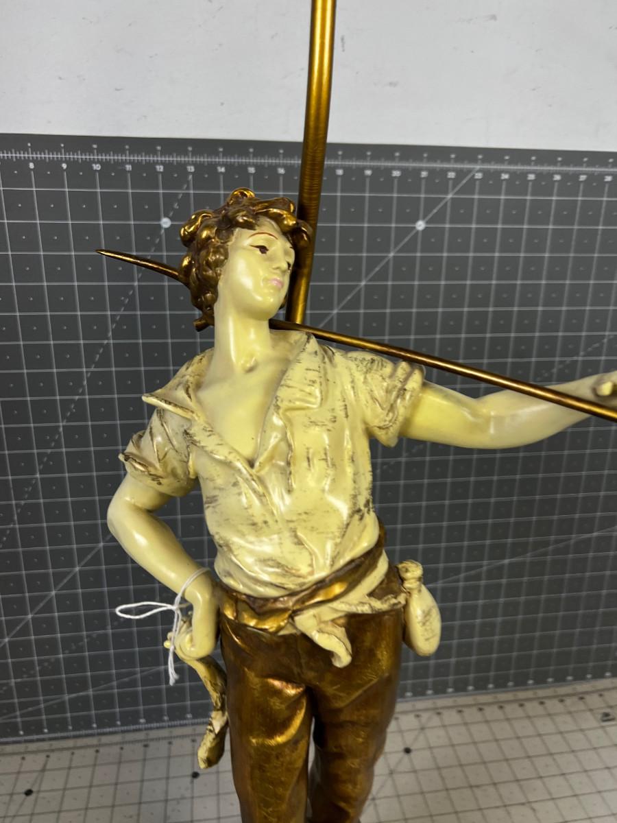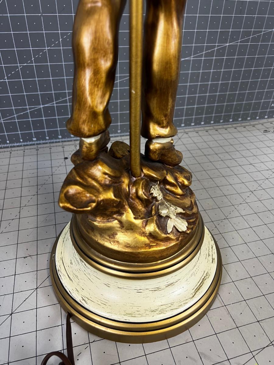 Has damage but can be repaired. AWESOME 39" Tall No Shade but it does have original Finial.