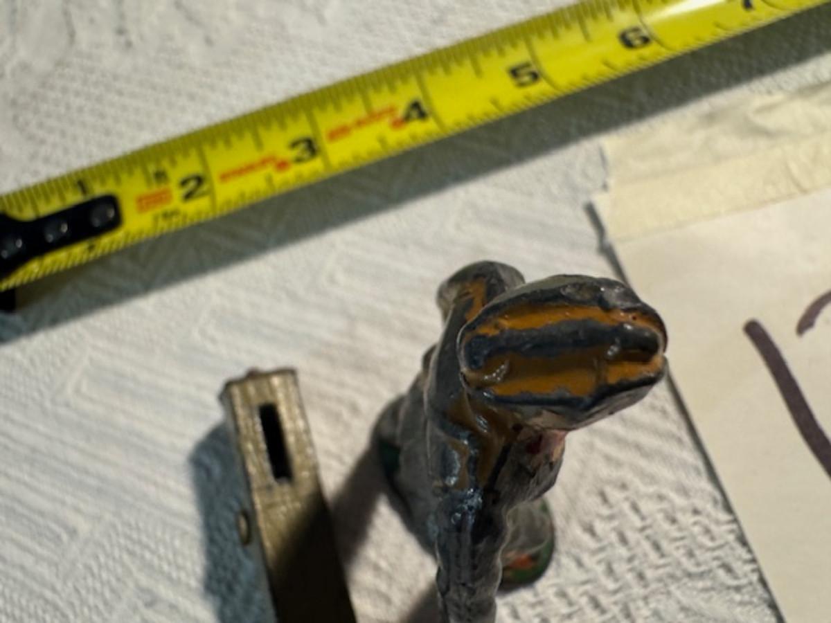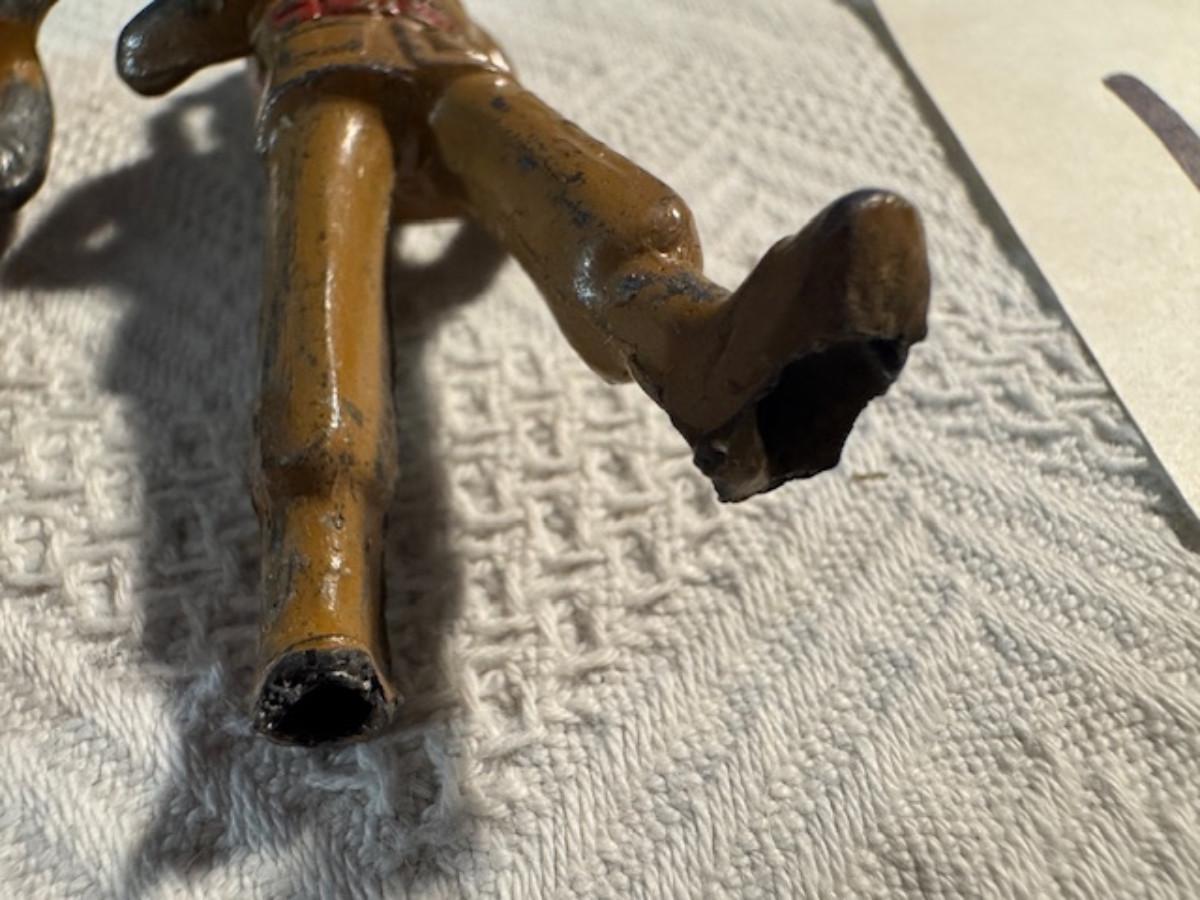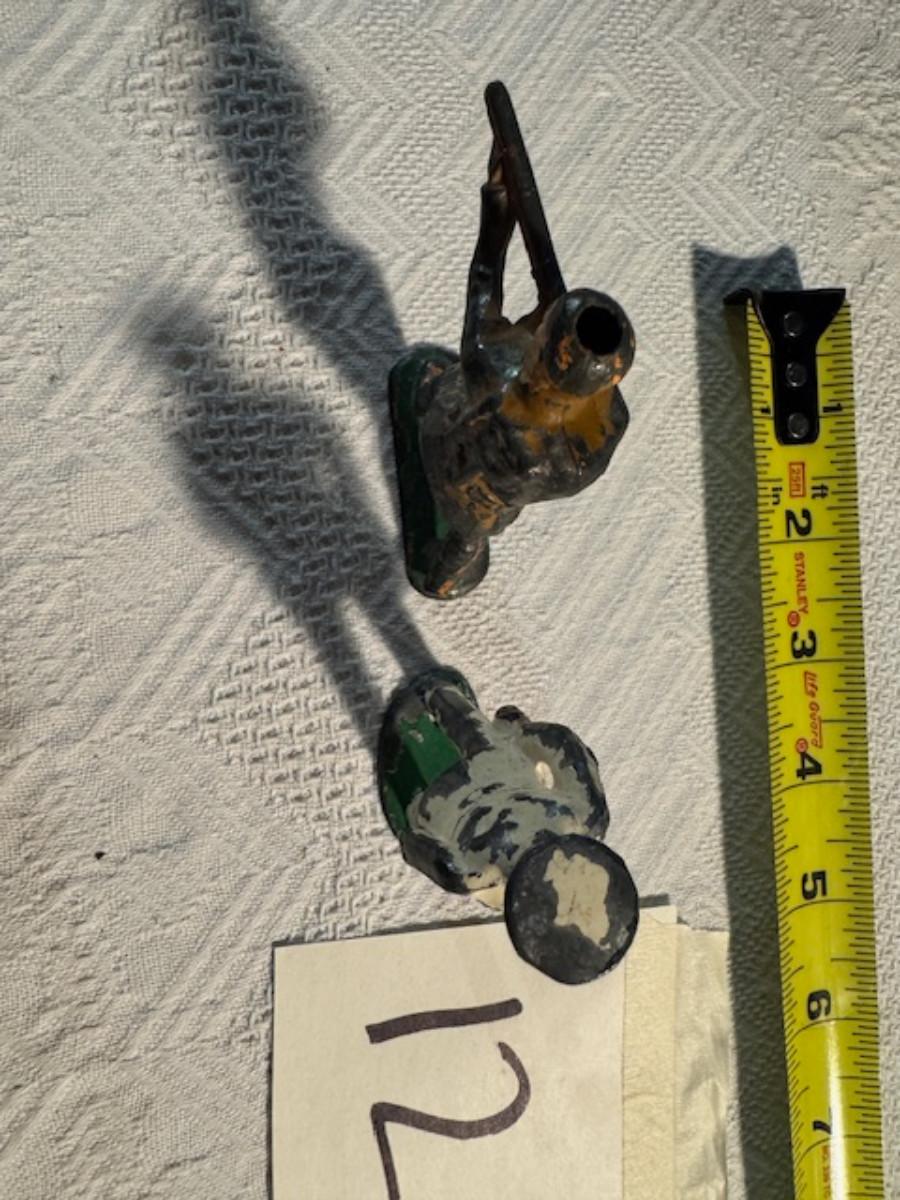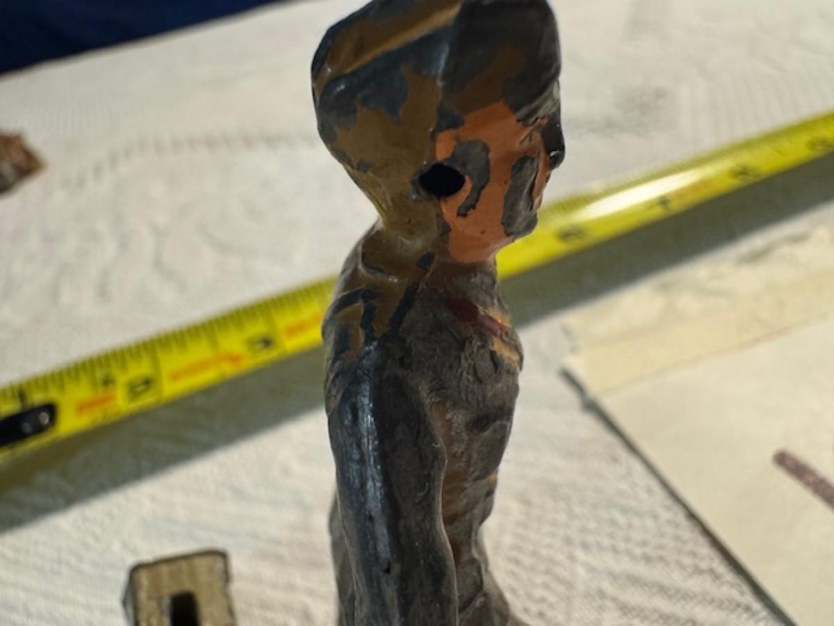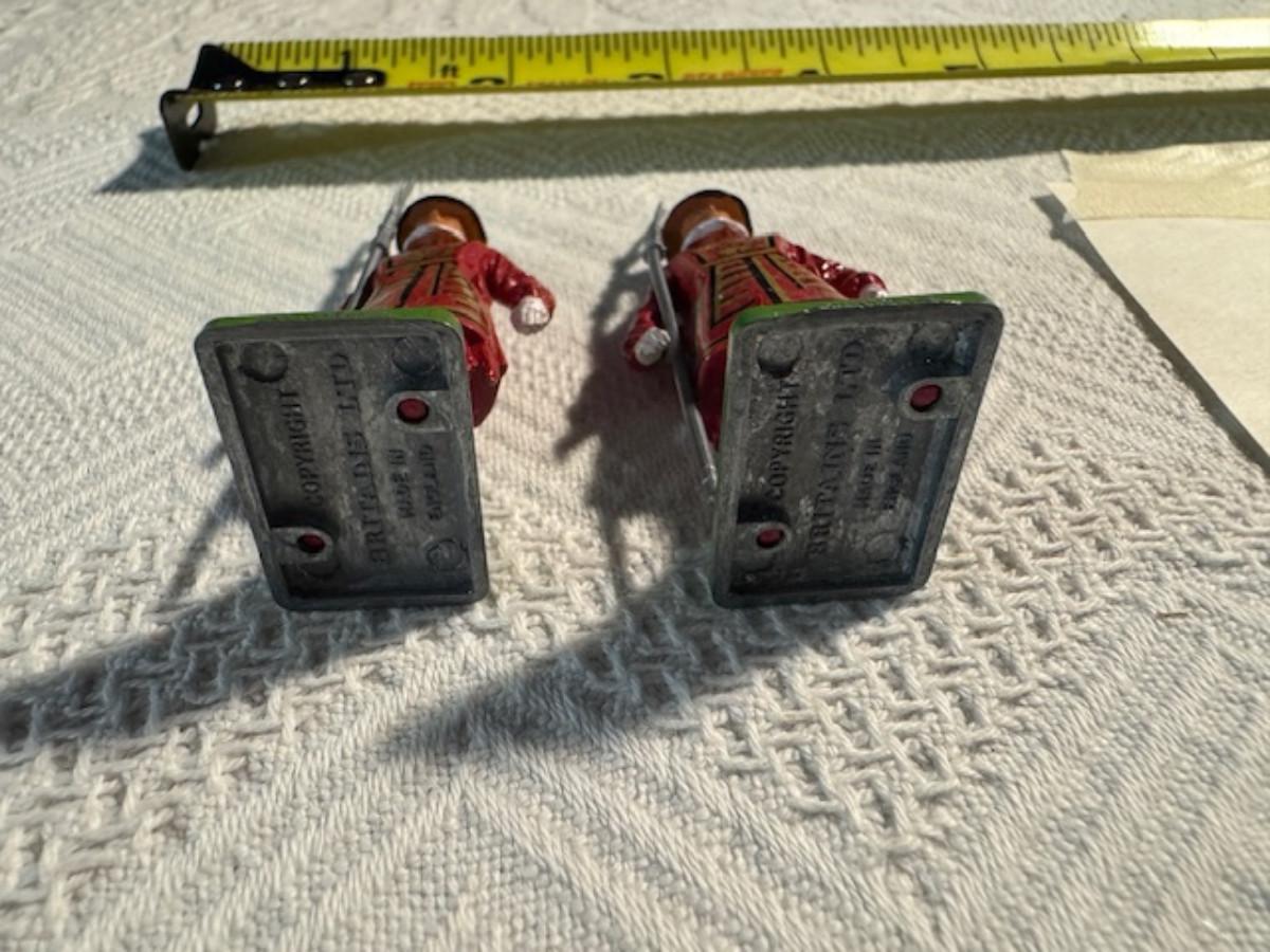 6 Britain's LTD 1973 England military, 7 Barclay vintage cast metal men made in USA (some have holes in the top of the head - missing hats. These are as is condition - one will not stand on his own, and one unknown piece is included. See pictures.