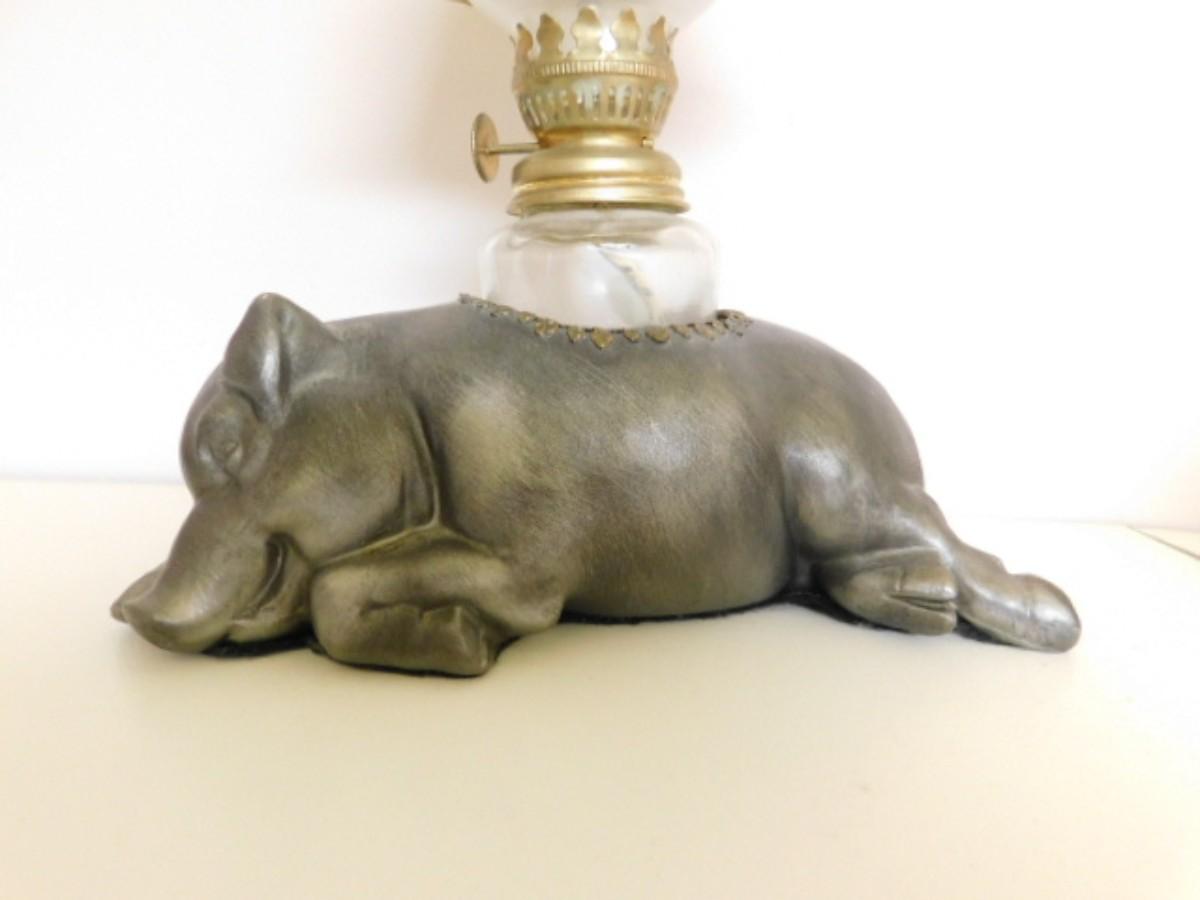 Cast Metal Sleeping Pig Oil Lamp Stand with Hong Kong Lamp Choice #2 of 2