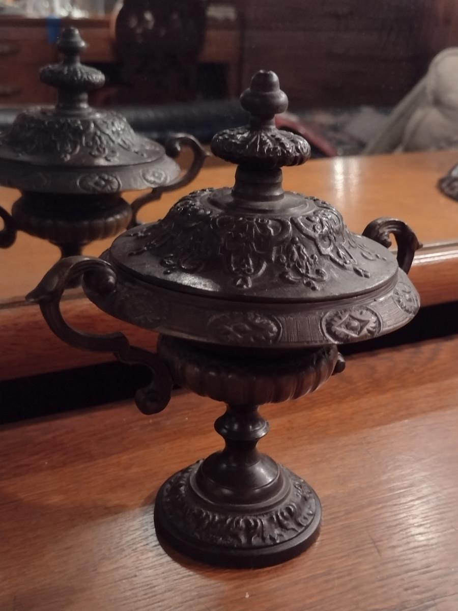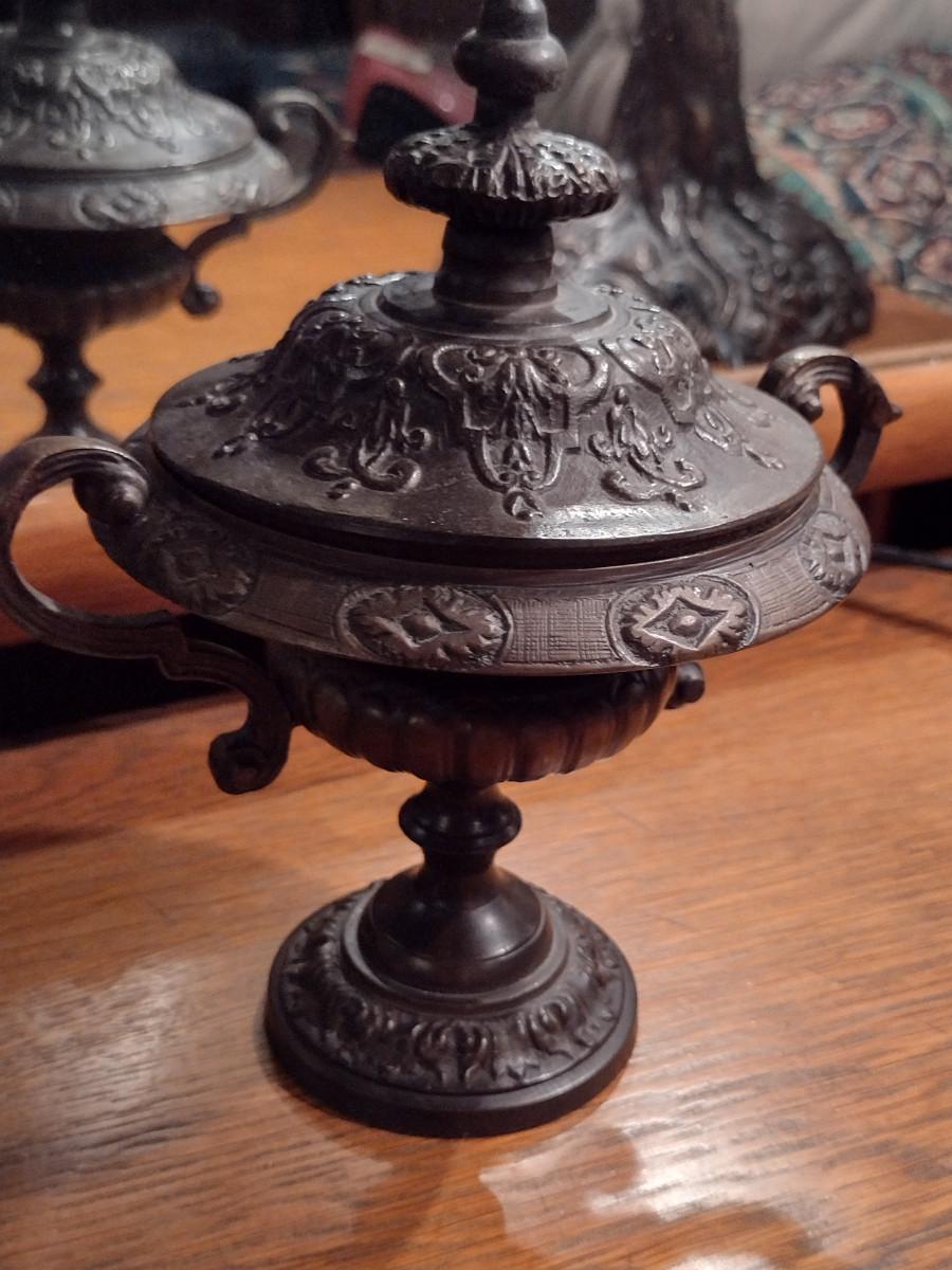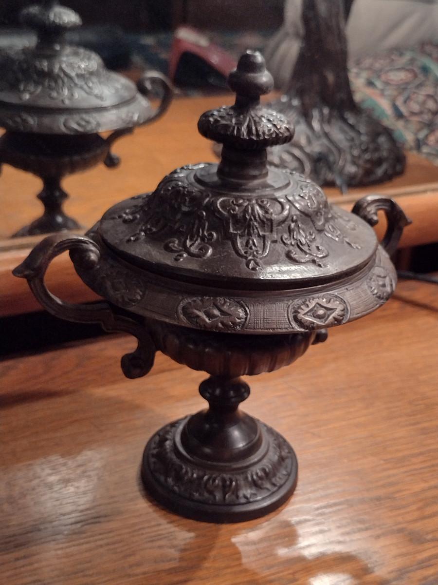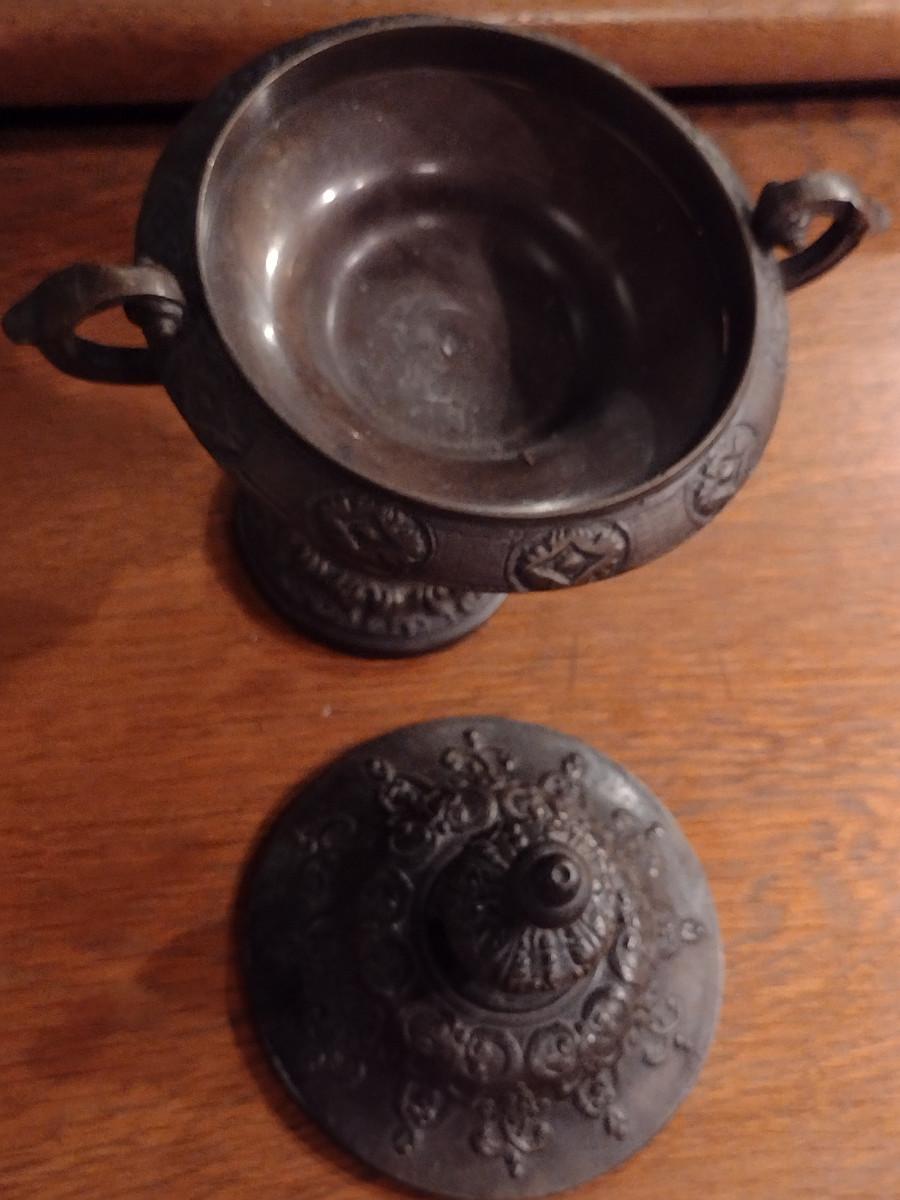 Cast Metal Small, Decorative Pedestal Bowl with Lid