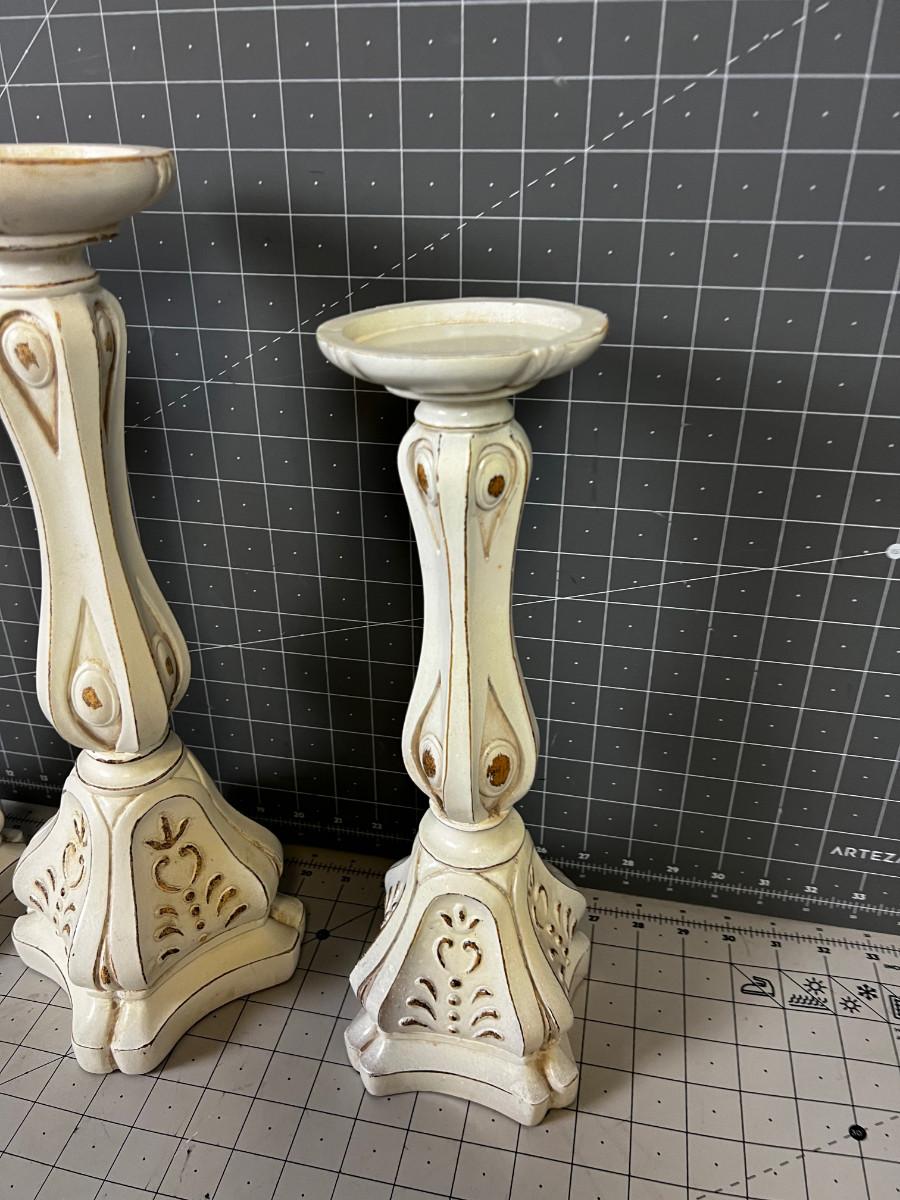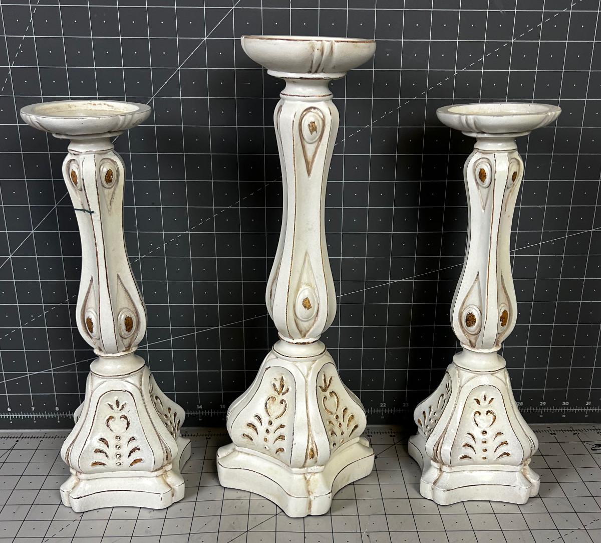 Cast Resin White Candle Sticks