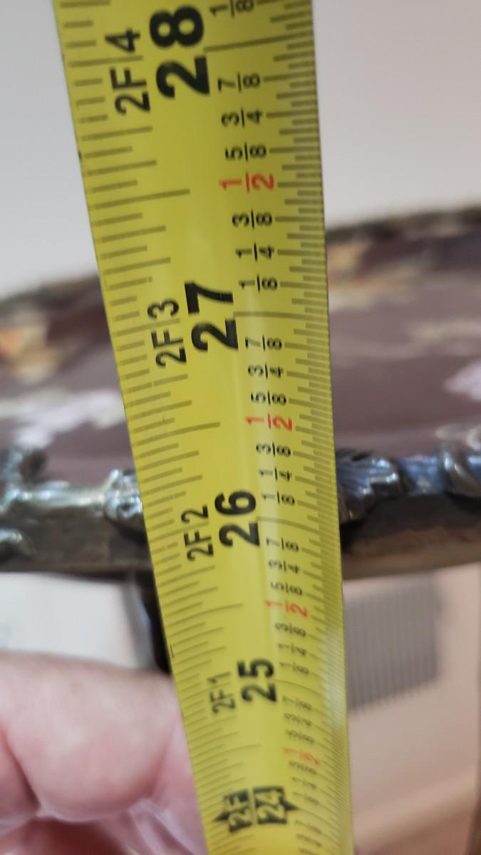 26 in tall 25 in Long 15 inches wide Tray is very heavy