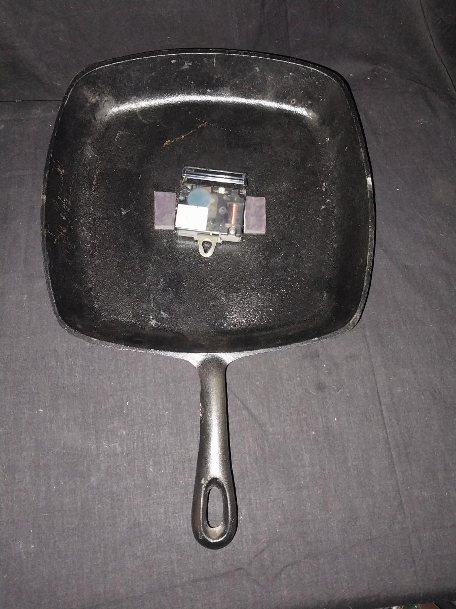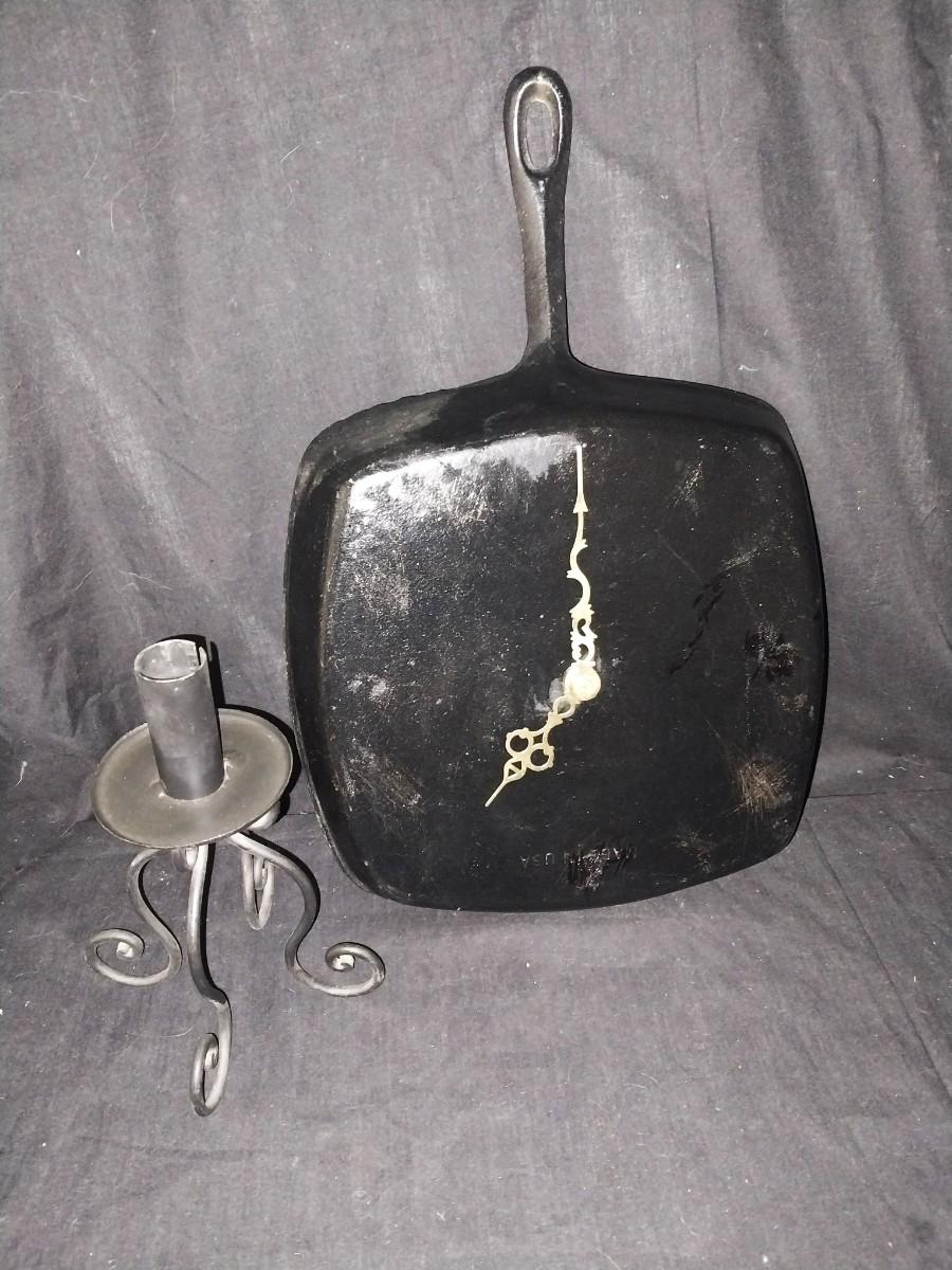 CASTIRON SKILLET CLOCK AND METAL CANDLE HOLDER
