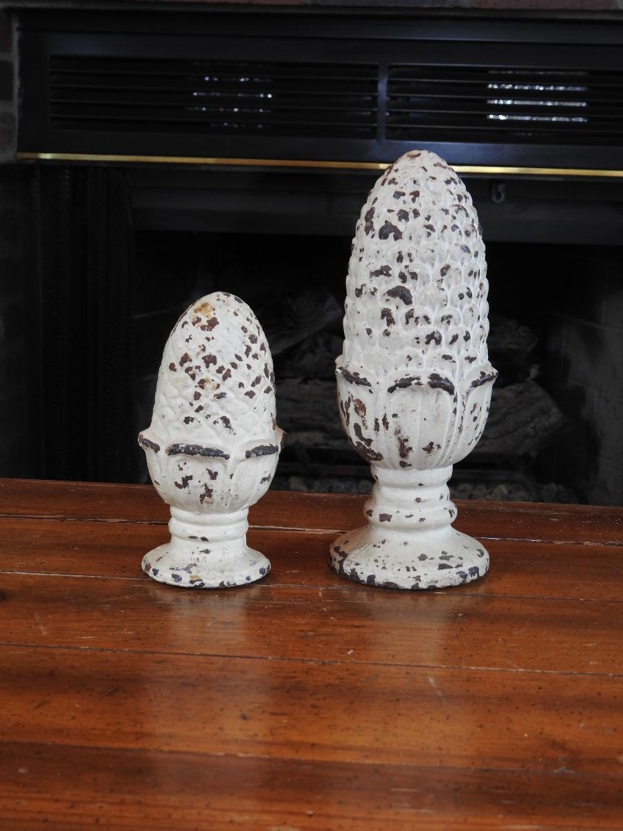Pair of vintage cast-iron pinecone finials. Very good used condition.