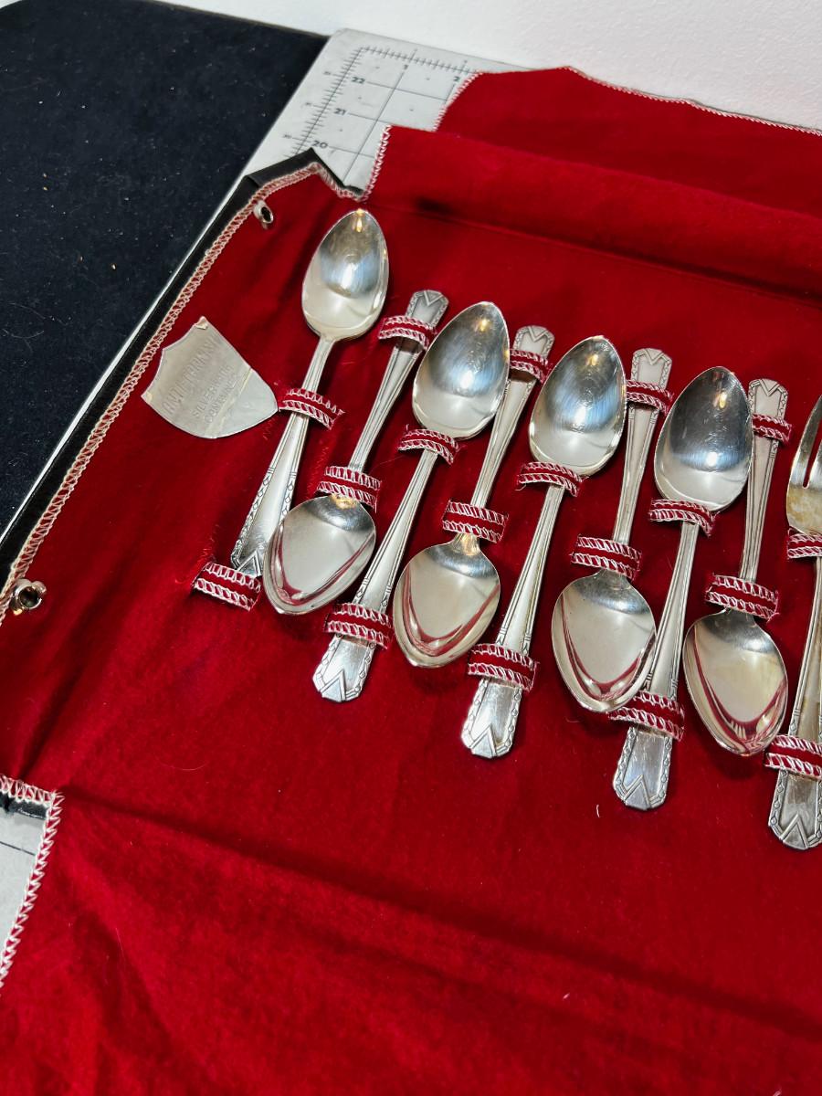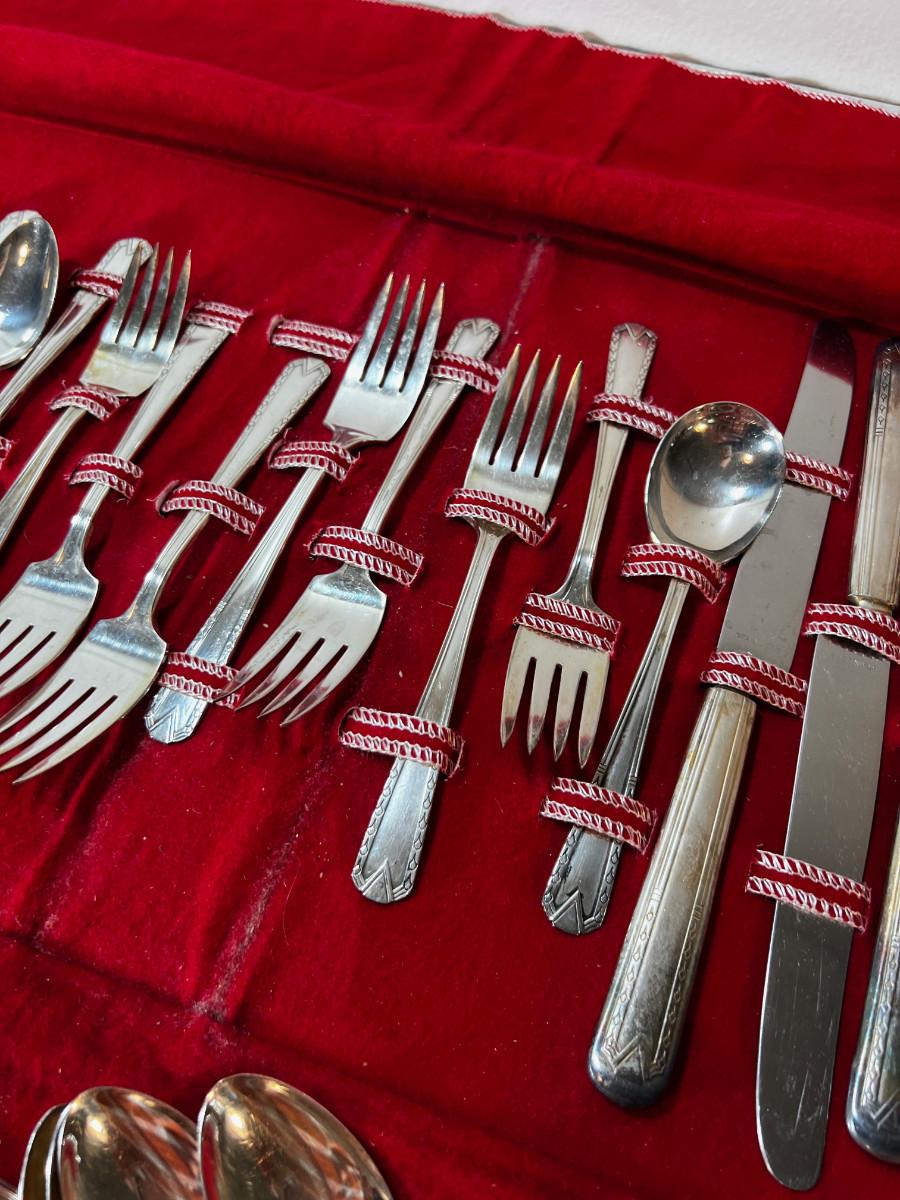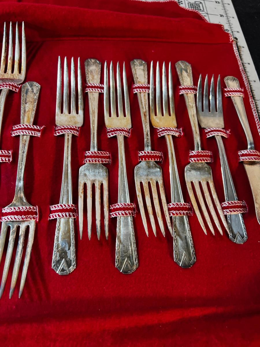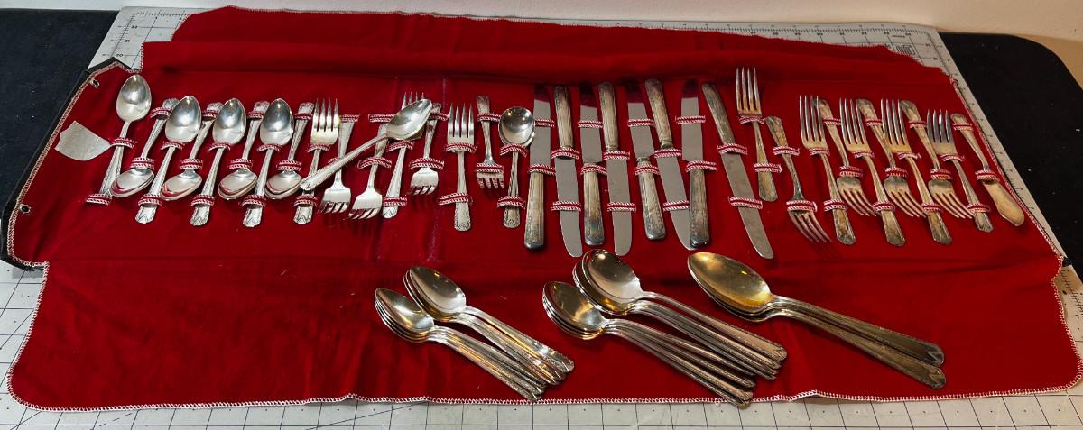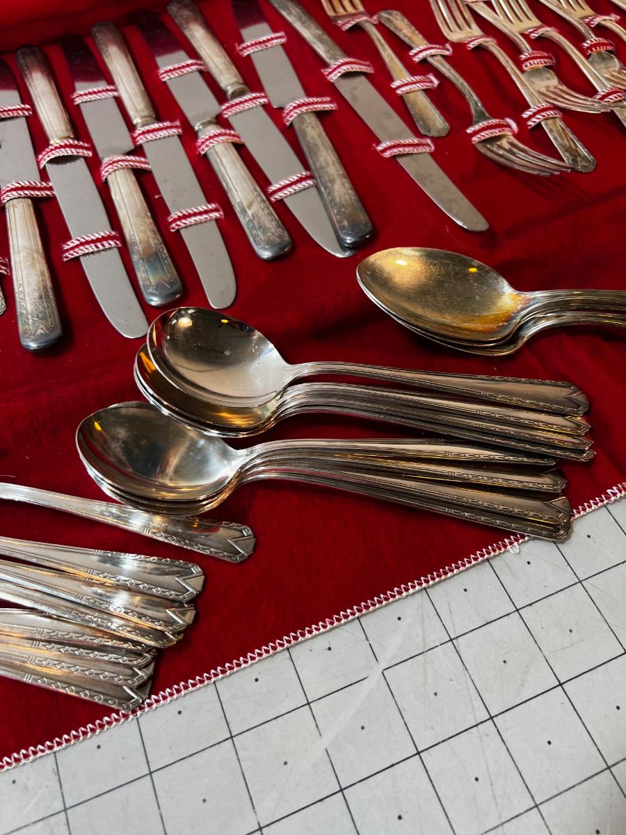 Castle Art Deco Silver Plate Silverware Set for 8 plus Serving Pieces
