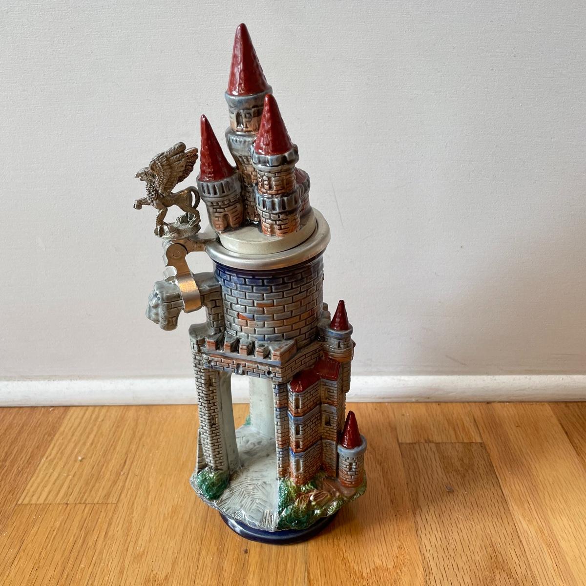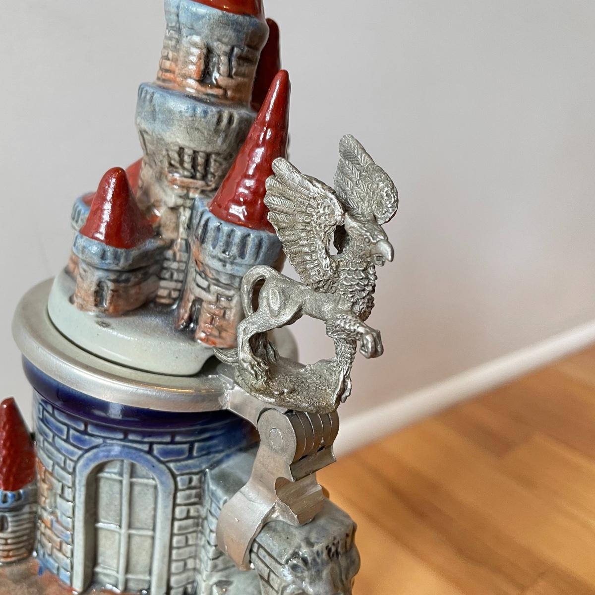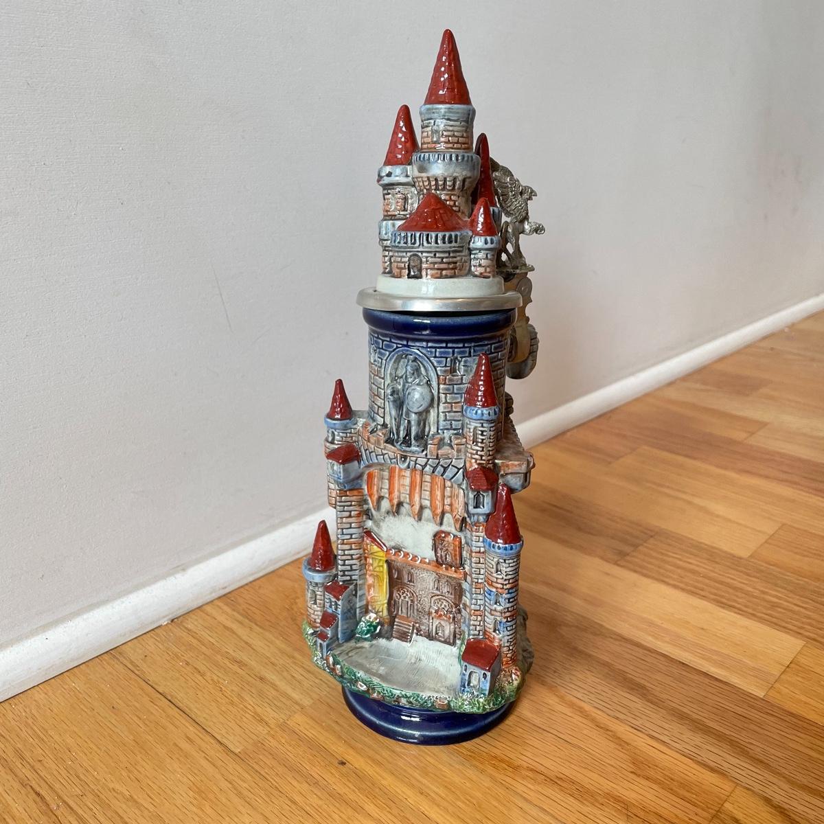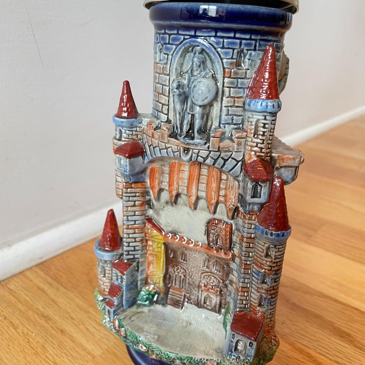 Decorative castle stein with Limited Edition markings by Thewalt. Both steins are made in Germany with pewter accents. The castle is 11.5” tall. Shipping available.